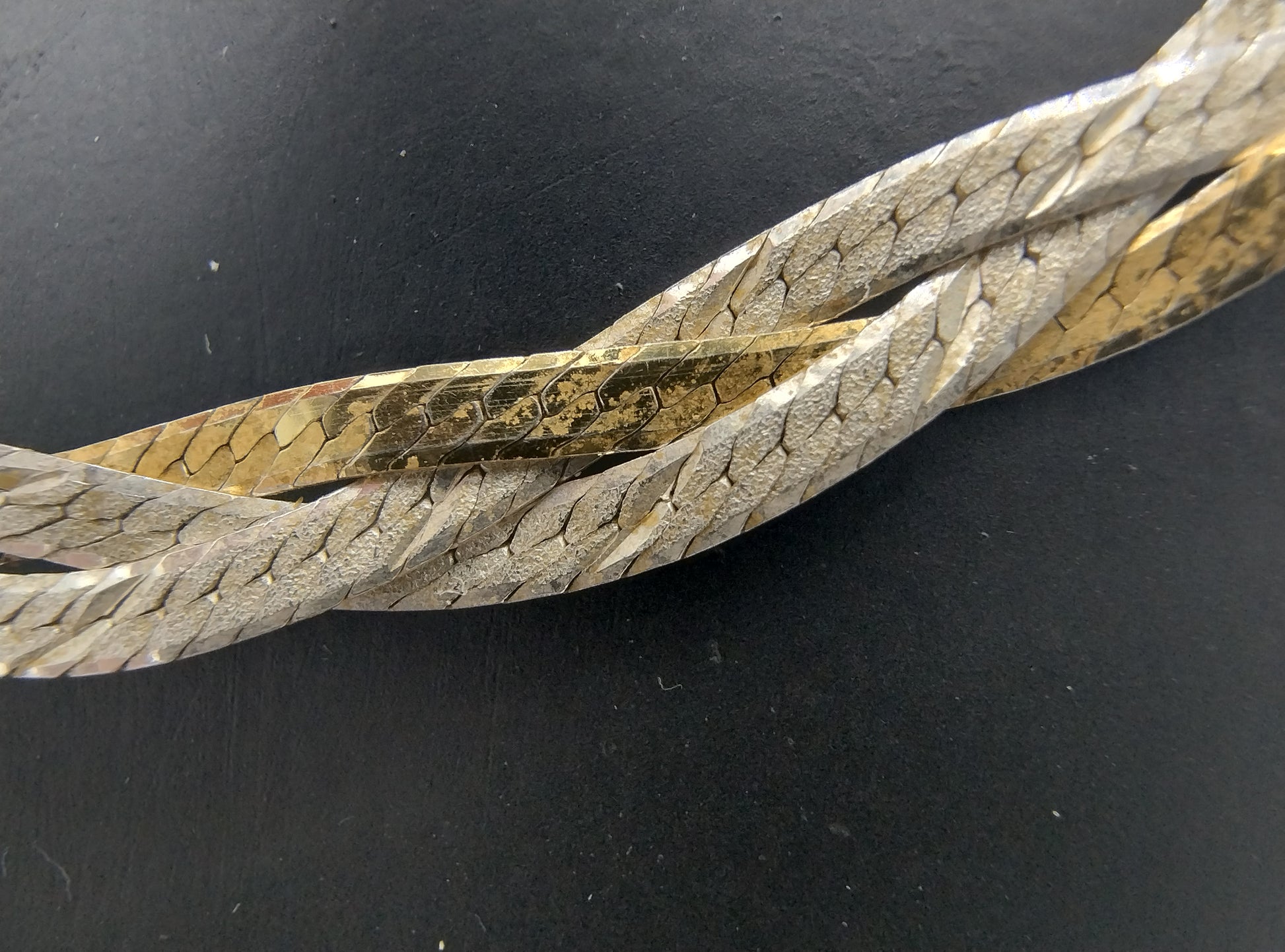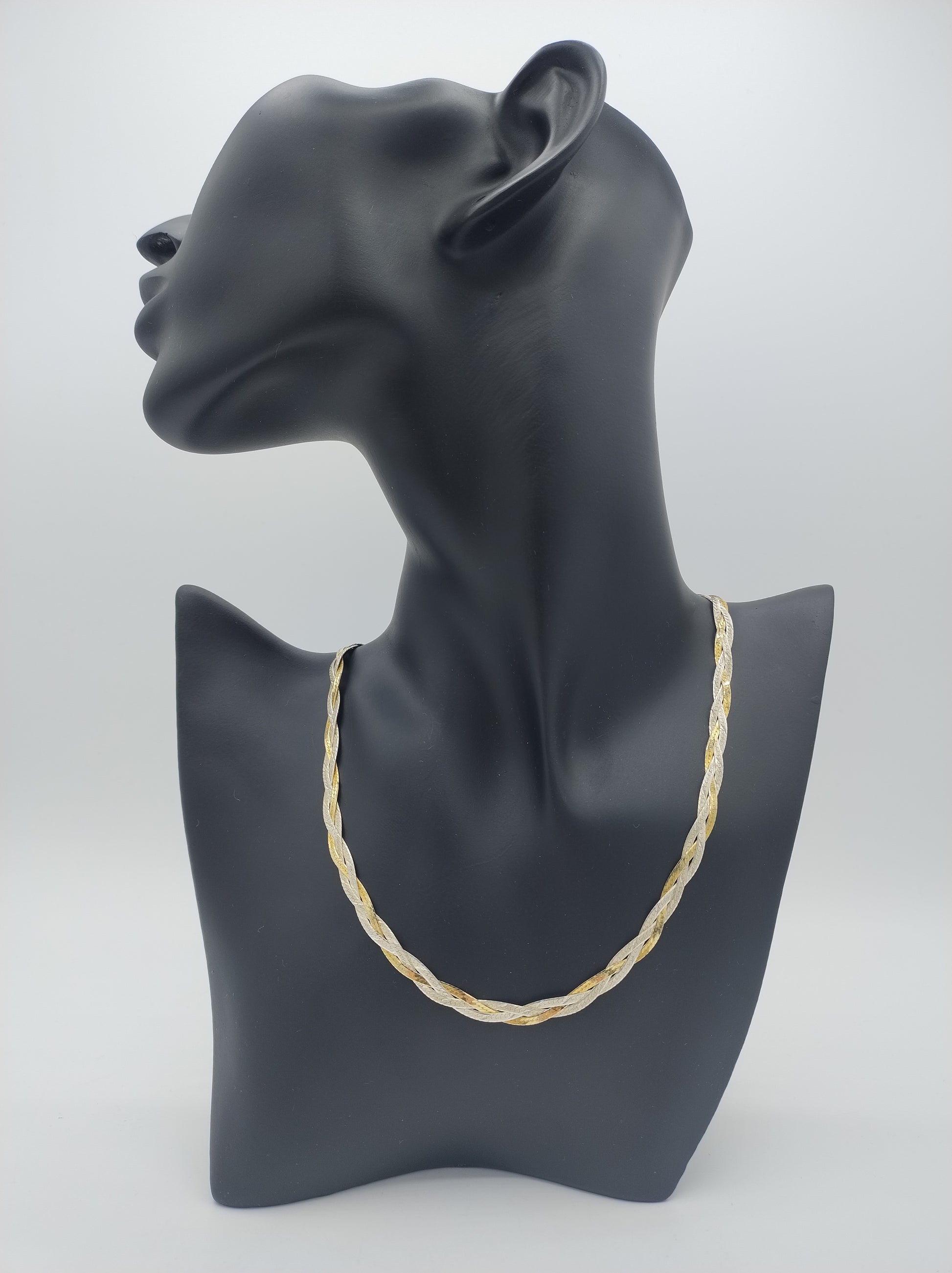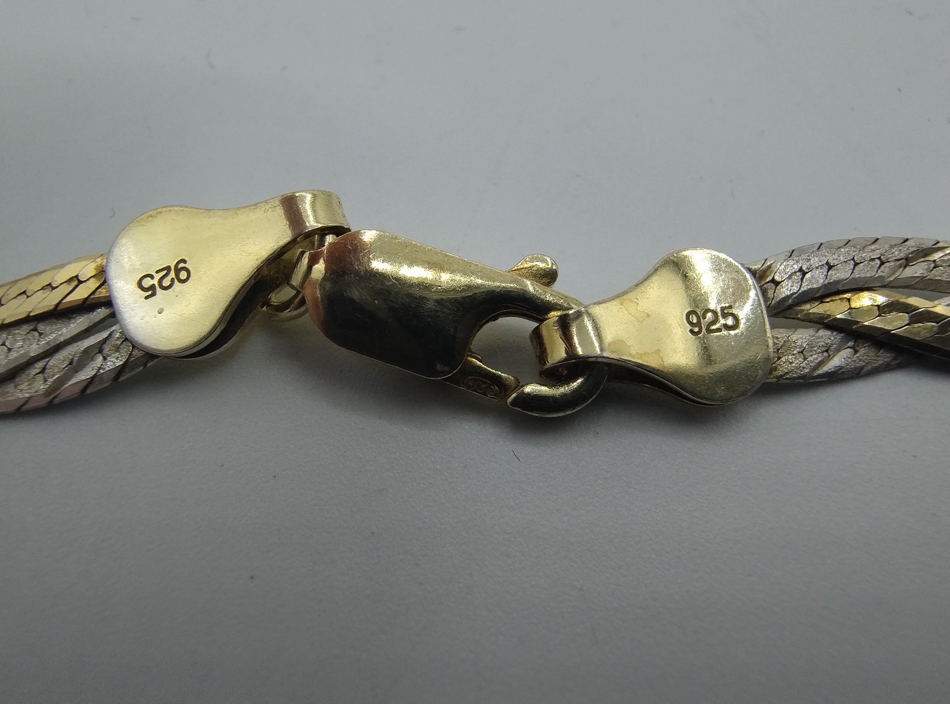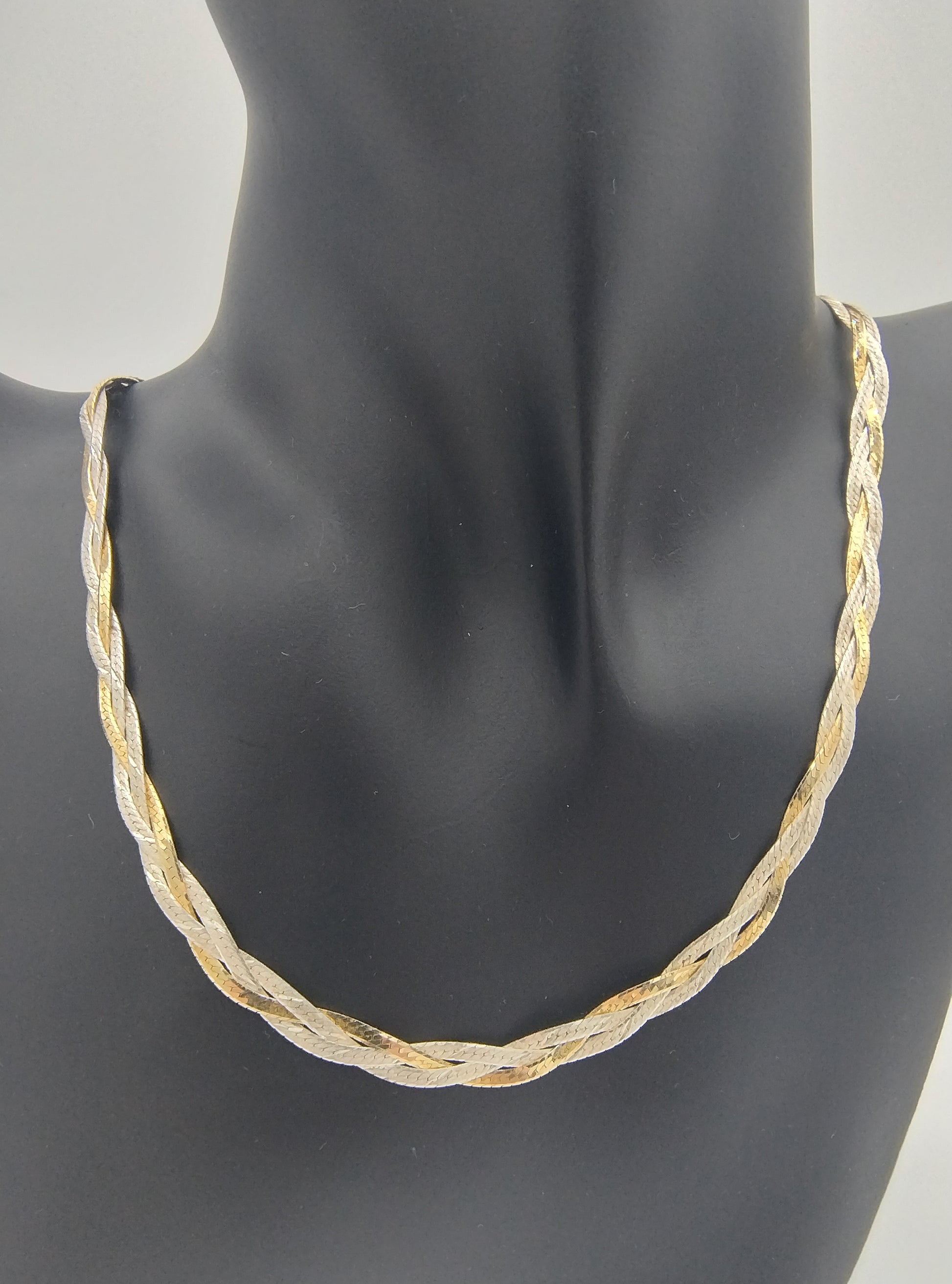 Bi-colour zilveren collier met een platte schakel. De ketting valt soepel.