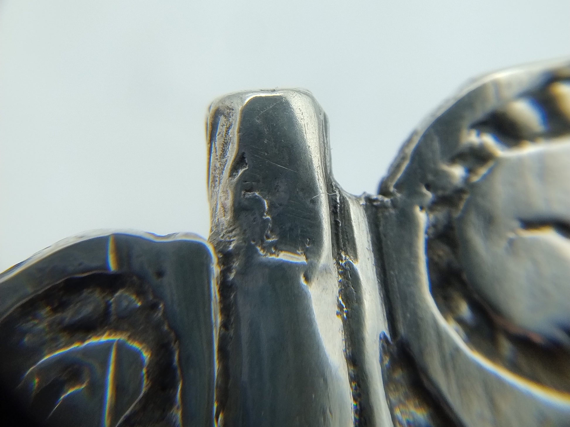 De broche is voorzien van fijn graveerwerk en een goed sluitende pin.