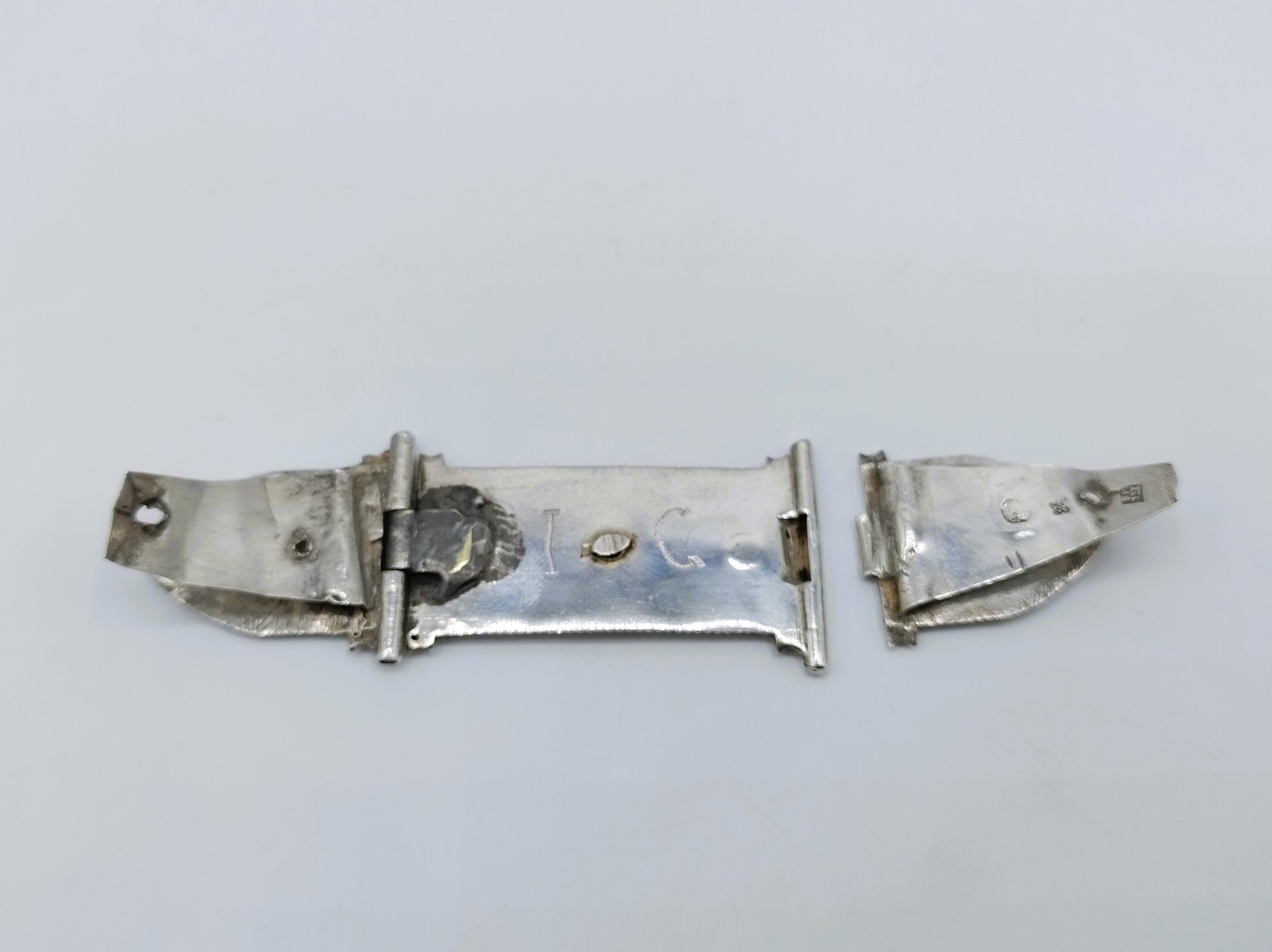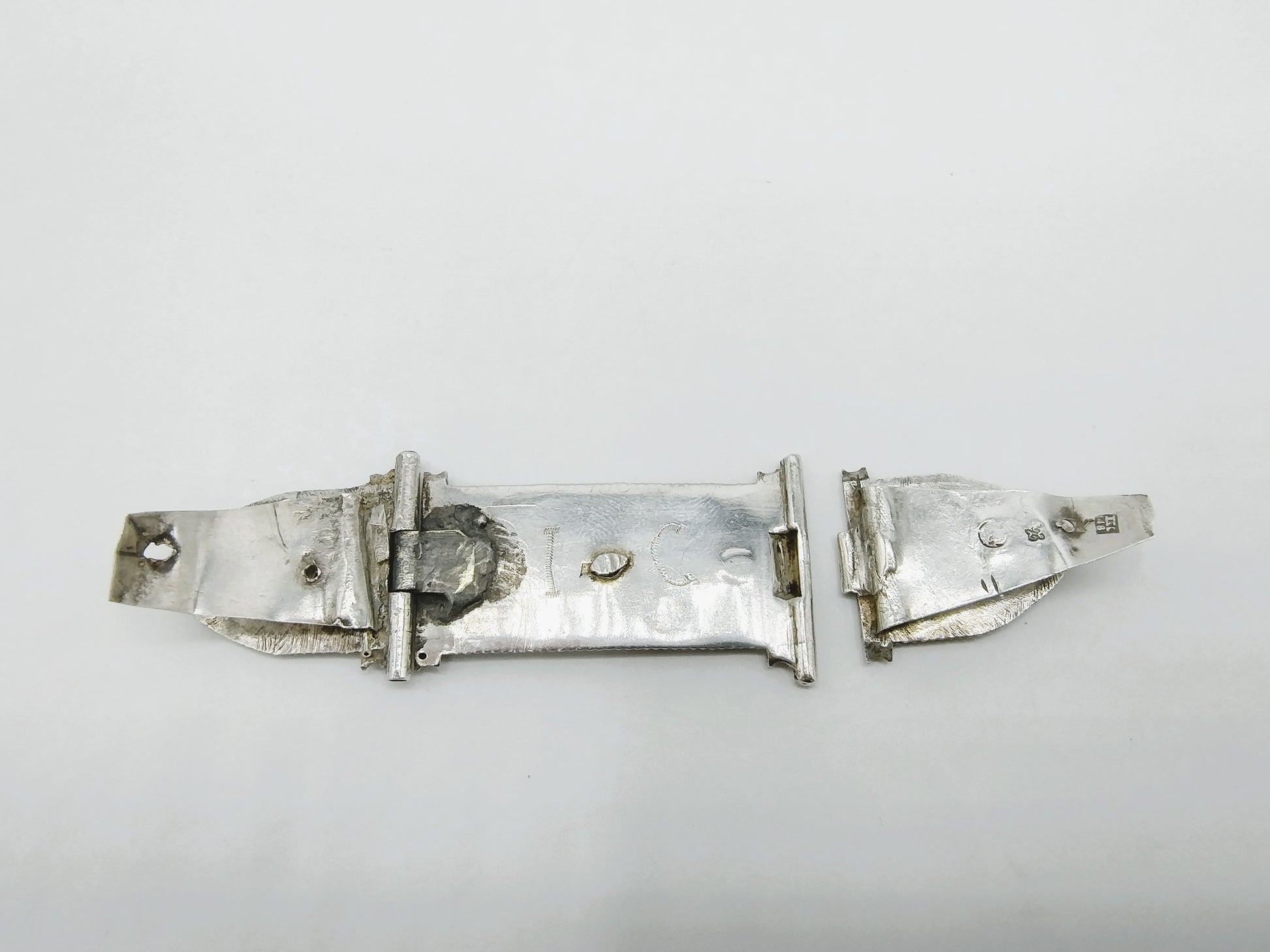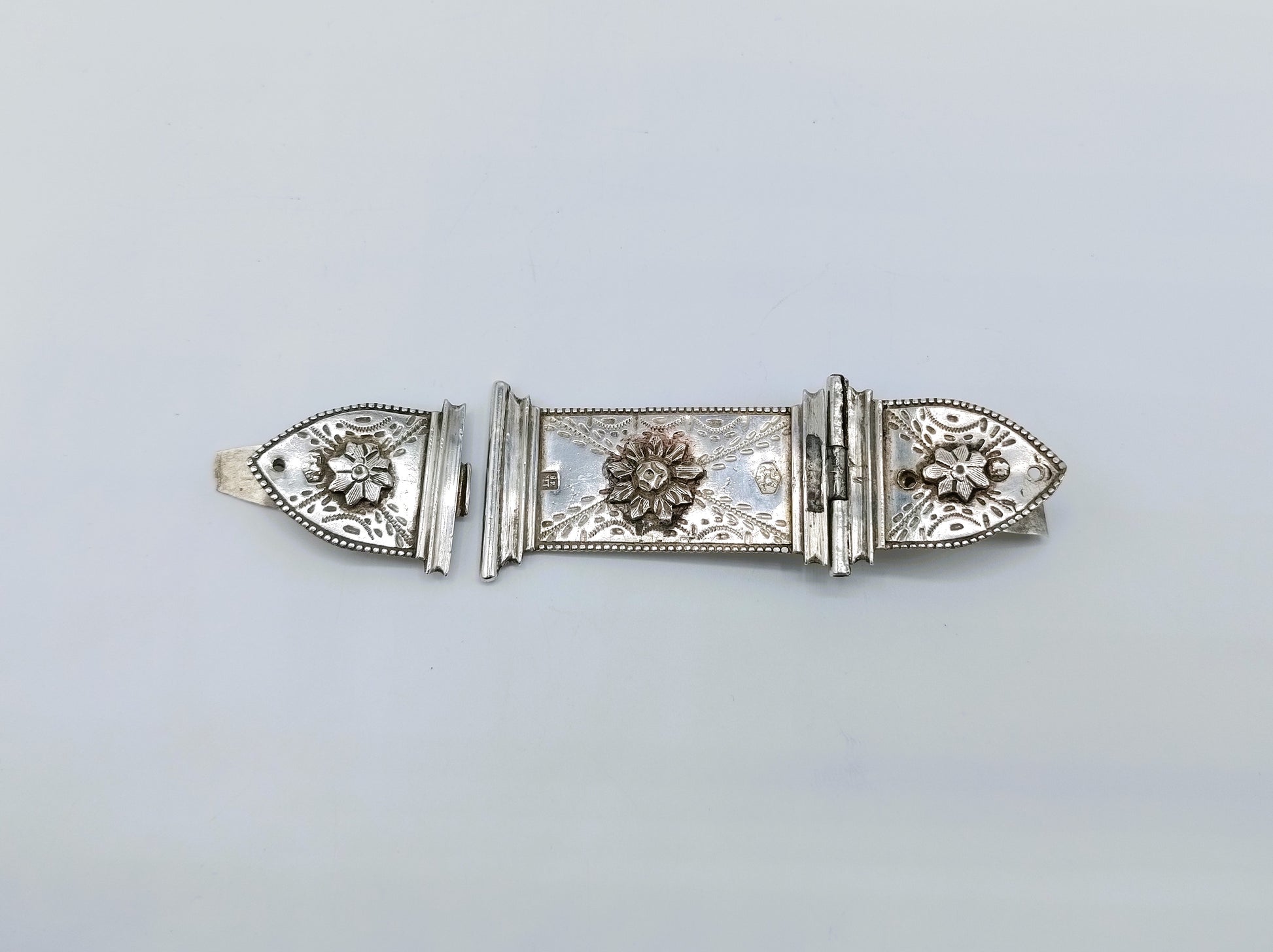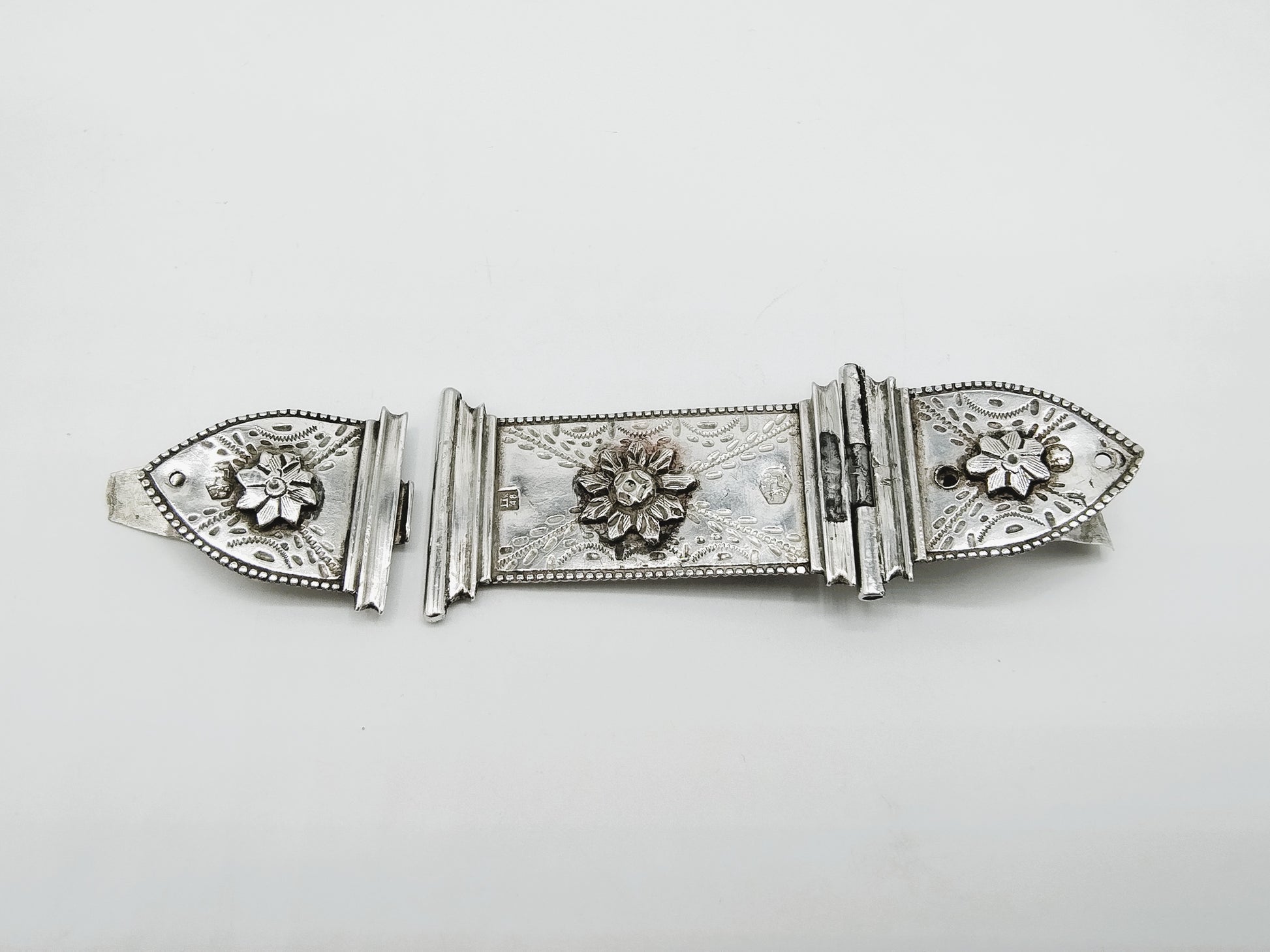 19e Eeuws bijbelslot bestaande uit een muiter, klamparm en een aanzetstuk gemaakt door de zilversmid J. Kapoen uit Utrecht. Dit meesterteken is gebruikt tussen 1834 en 1837.