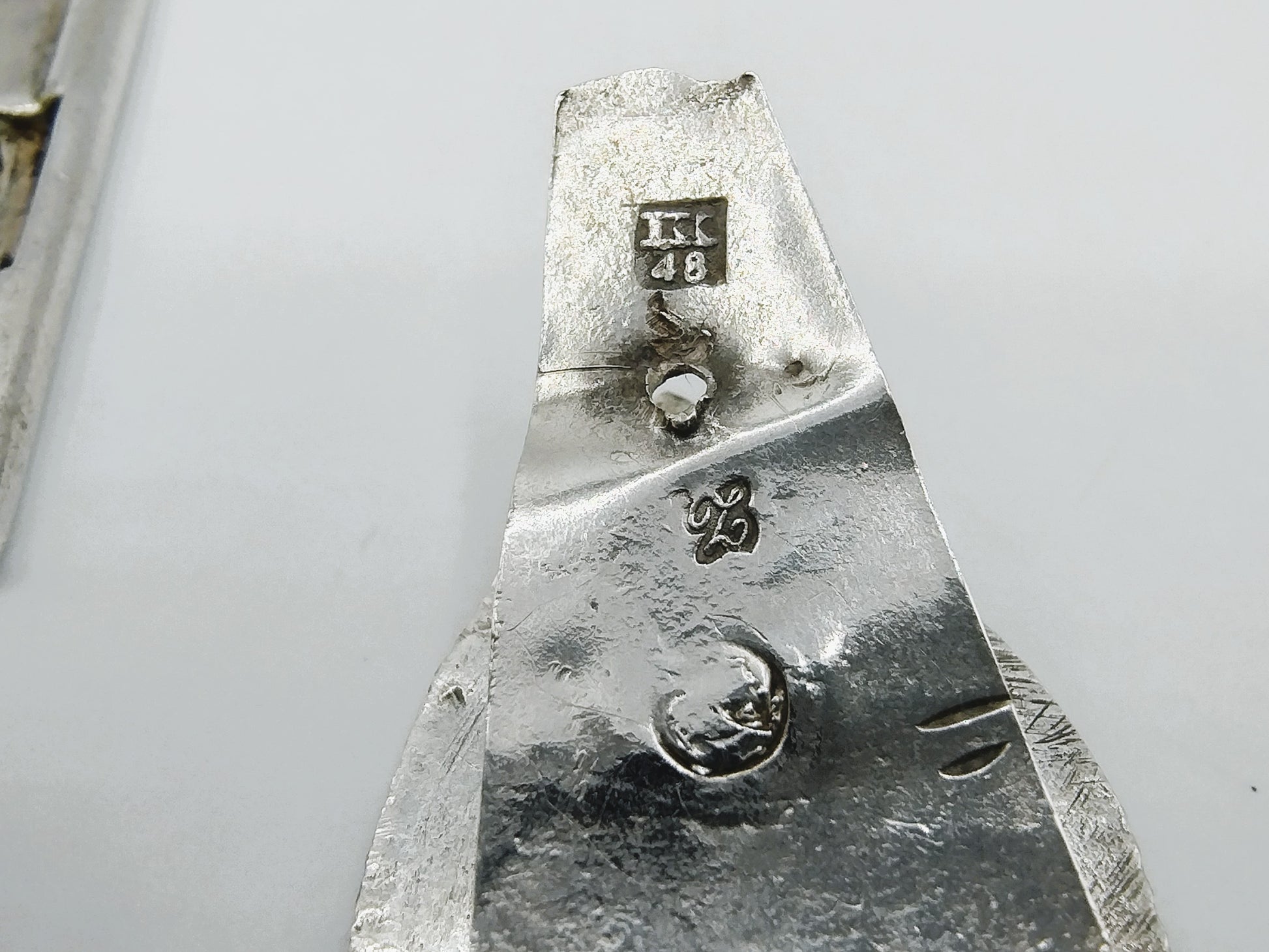 Alle onderdelen zijn gekeurd. Keuren die afgeslagen zijn: Minervakopje, jaarletter Z voor 1834, tweede gehalte keur en het meesterteken IK48.
