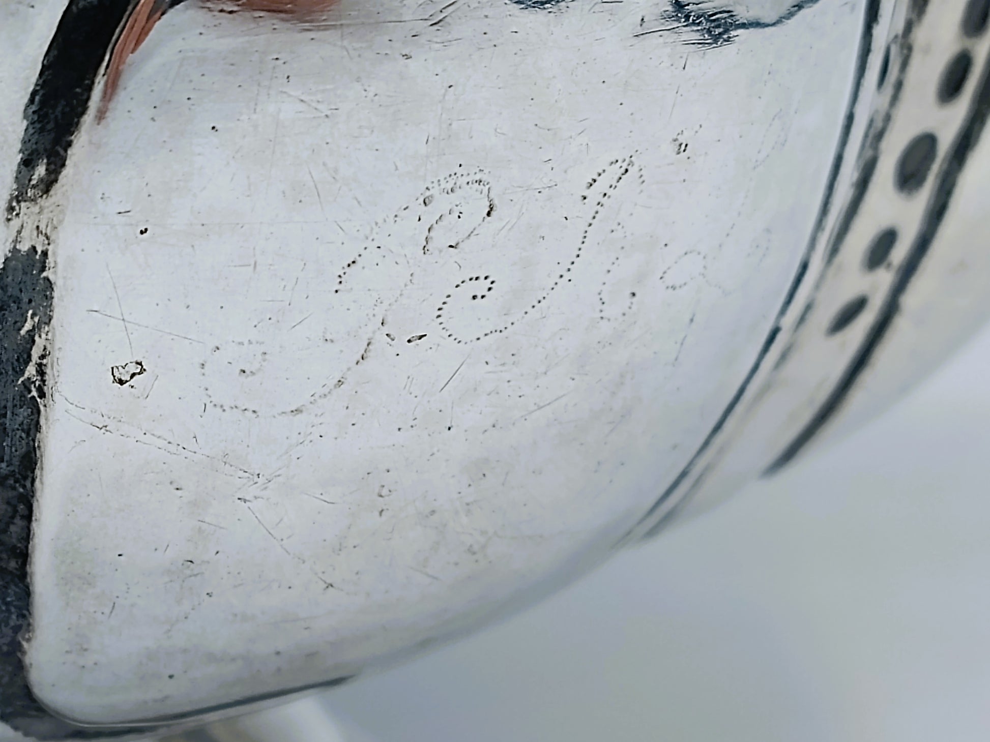 De kom is gegraveerd met A 1801 en de initialen PRL.