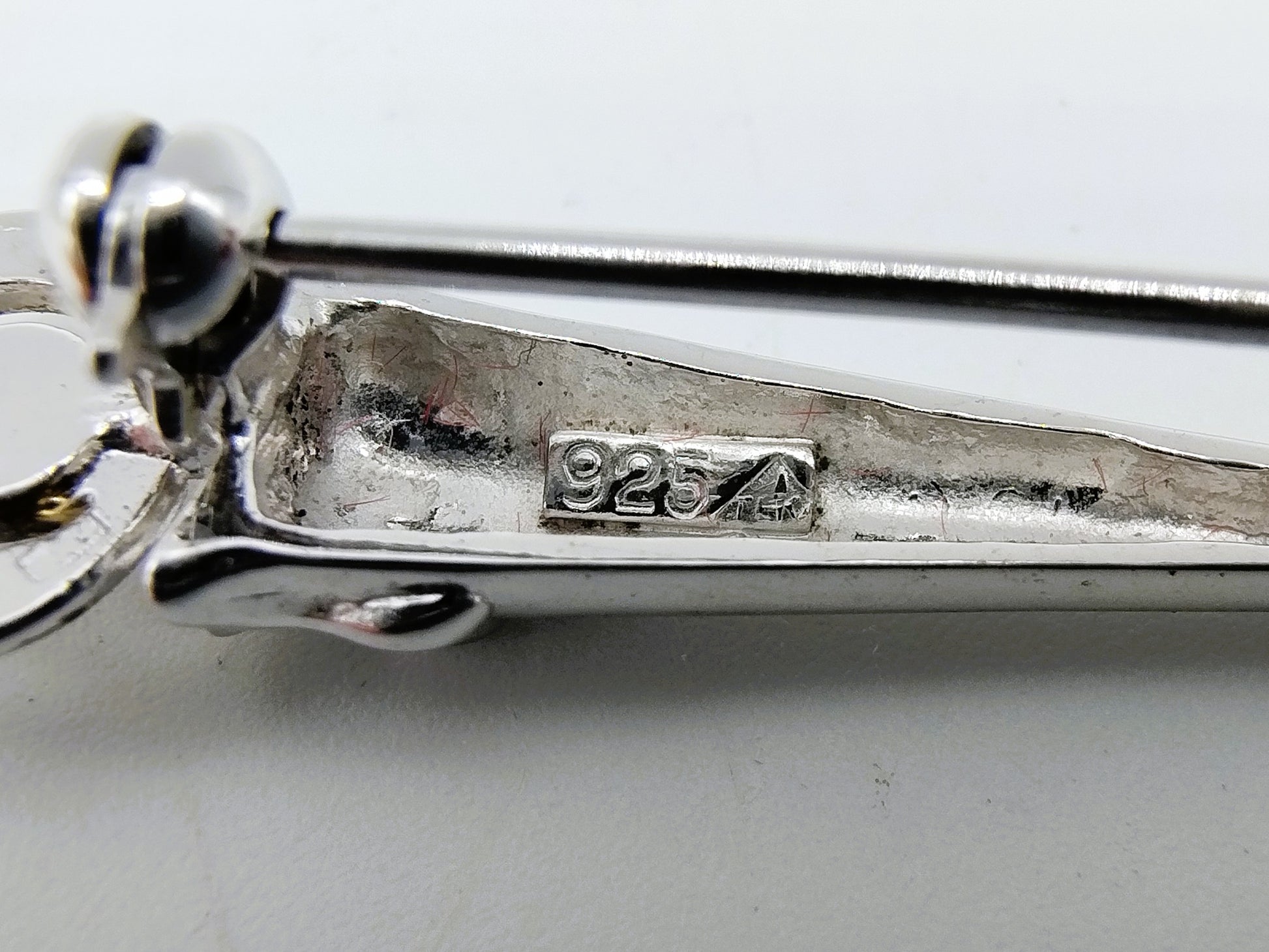 De broche is gekeurd met 925 voor 1e gehalte zilver en meesterkeur TEKA in driehoek.