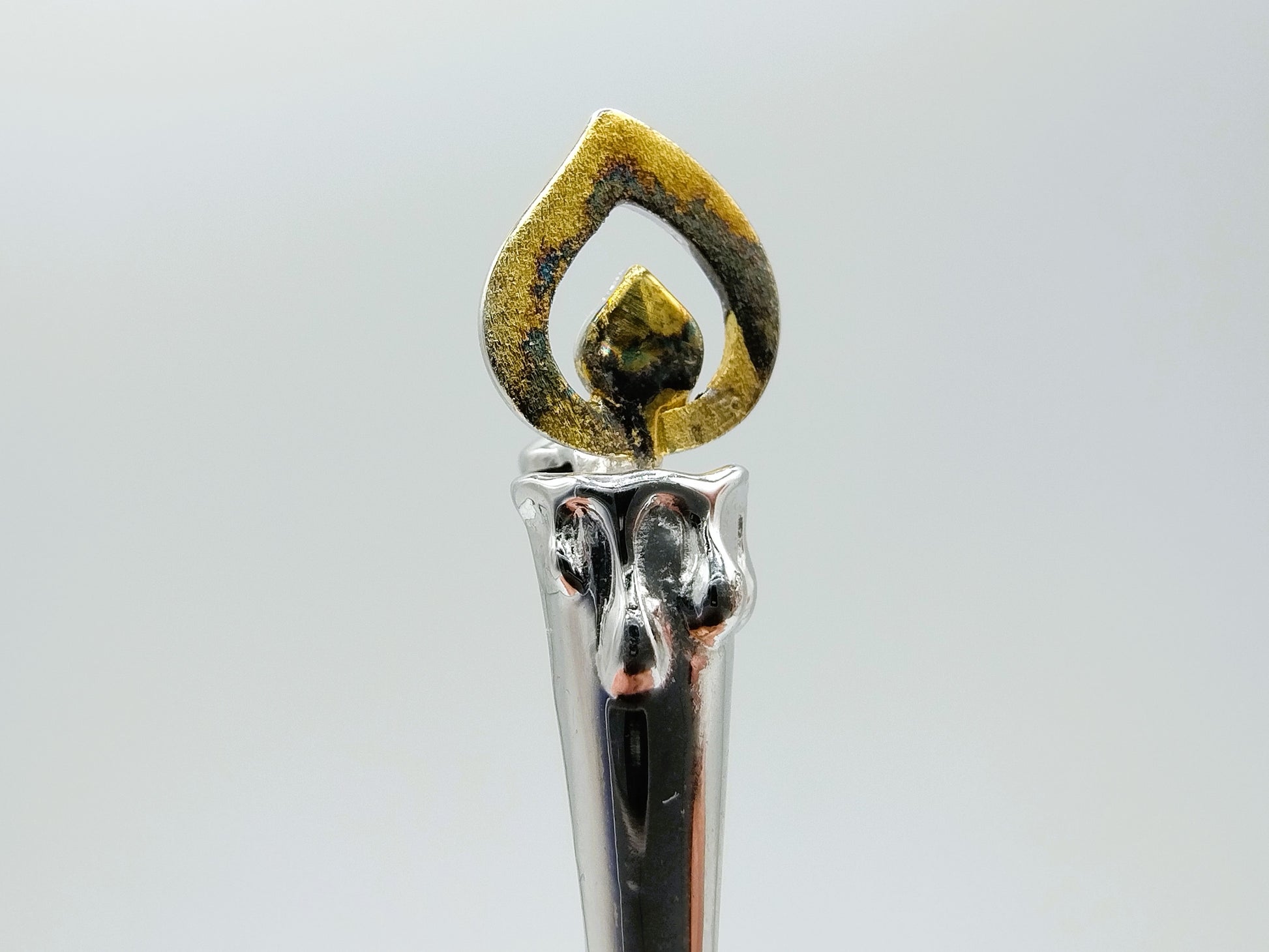 Zilveren broche met daarin uitgewerkt een kaars.