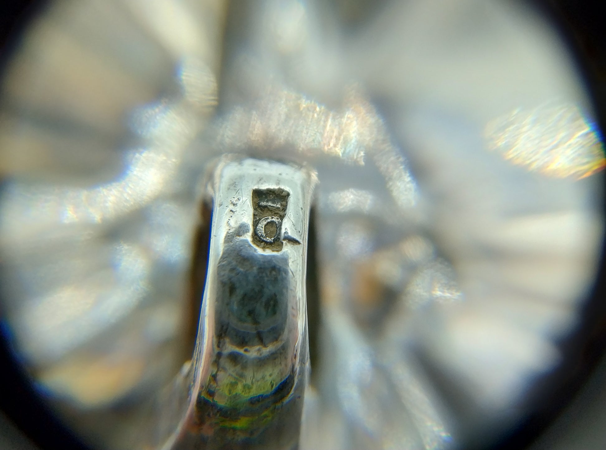 De broeksknopen zijn gekeurd met de gekroonde O, deze werd gebruikt voor 1807 ten teken van 'oud'. Geslagen op binnenlandse zilveren voorwerpen die voor 1 juli 1807 in het land aanwezig waren.