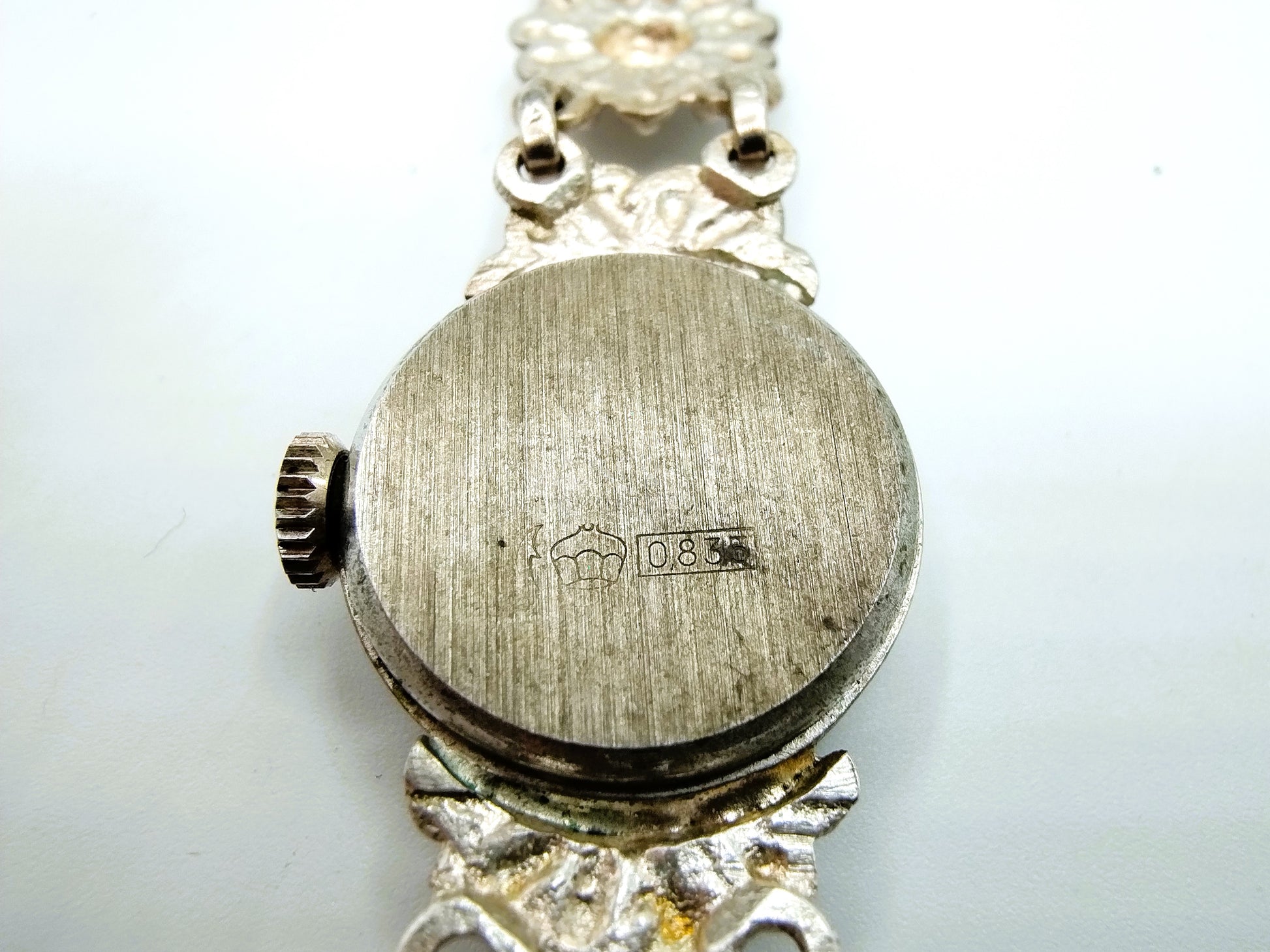 Het horloge is gekeurd met 835 voor 2e gehalte zilver en de maan en kroon voor Duits zilver.