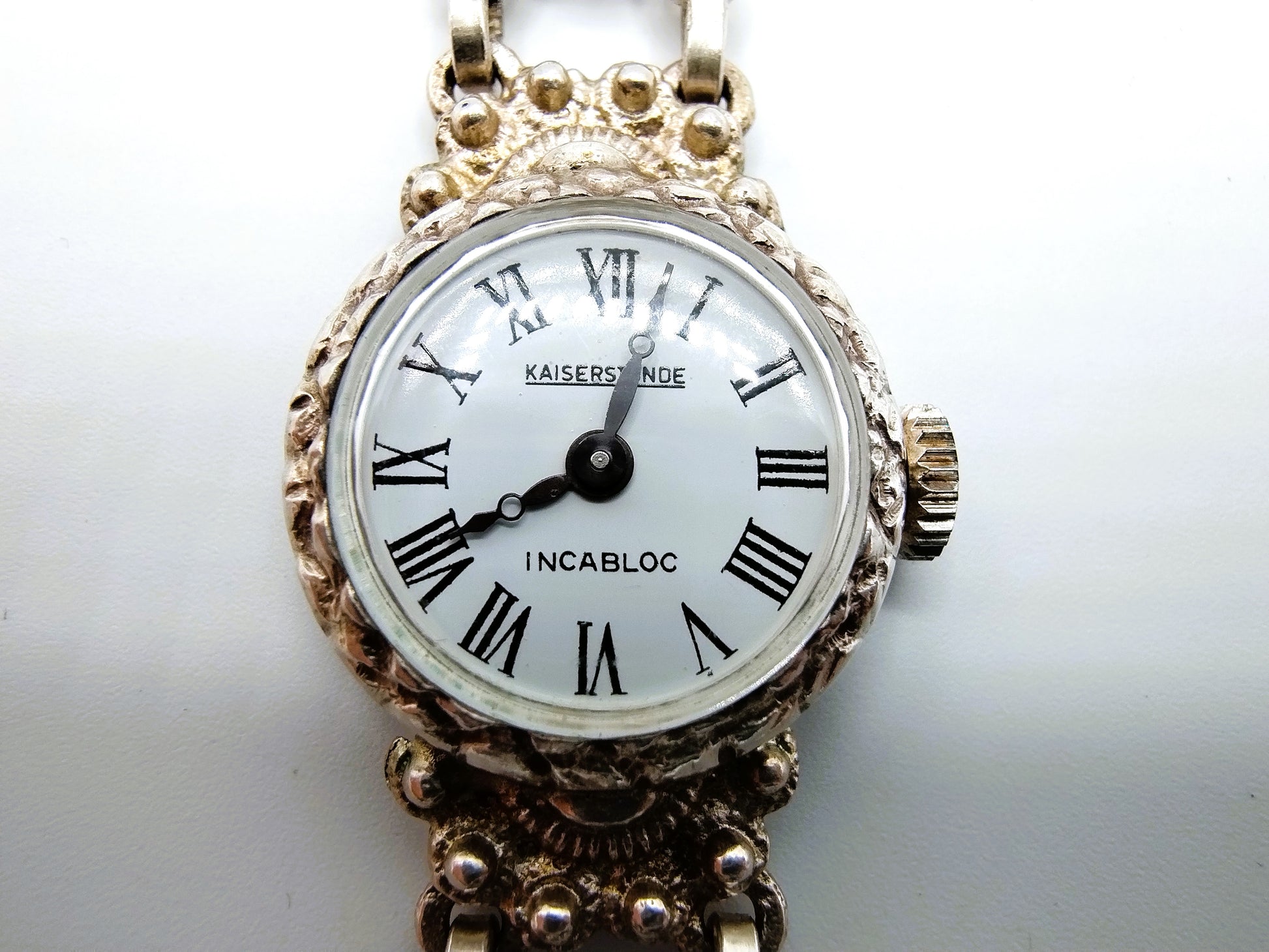 Op de wijzerplaat staat het merk Kaiserstunde en Incabloc.