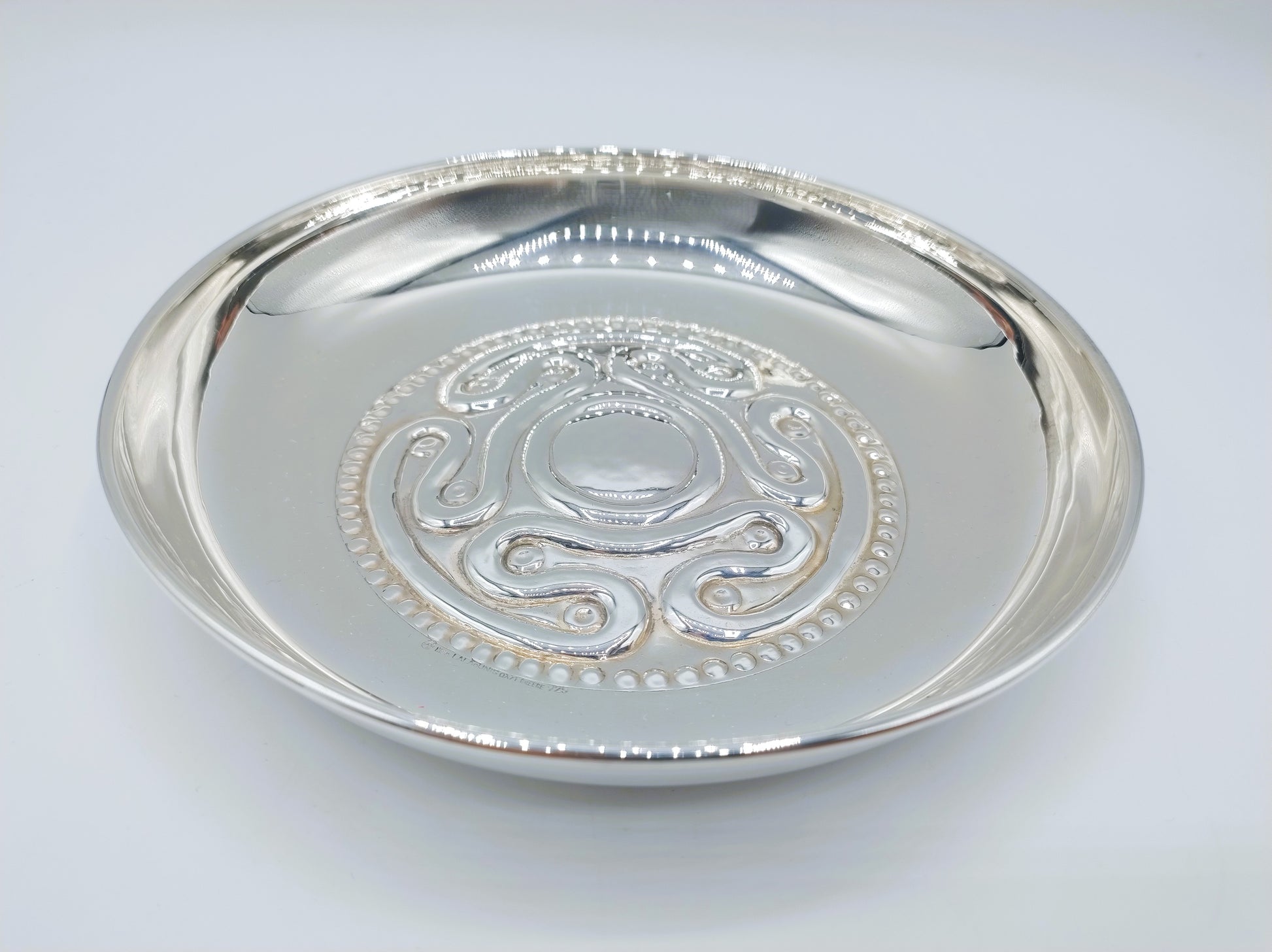 Het bord toont een karakteristiek reliëfontwerp dat de artistieke signatuur van Lalaounis weerspiegelt: sculpturale vormen, historische inspiratie en uitzonderlijk vakmanschap. Dankzij de combinatie van artistieke waarde en herkomst is dit stuk niet alleen een decoratief object, maar ook een interessant verzamelitem voor liefhebbers van design, zilverkunst en mythologische thema’s.