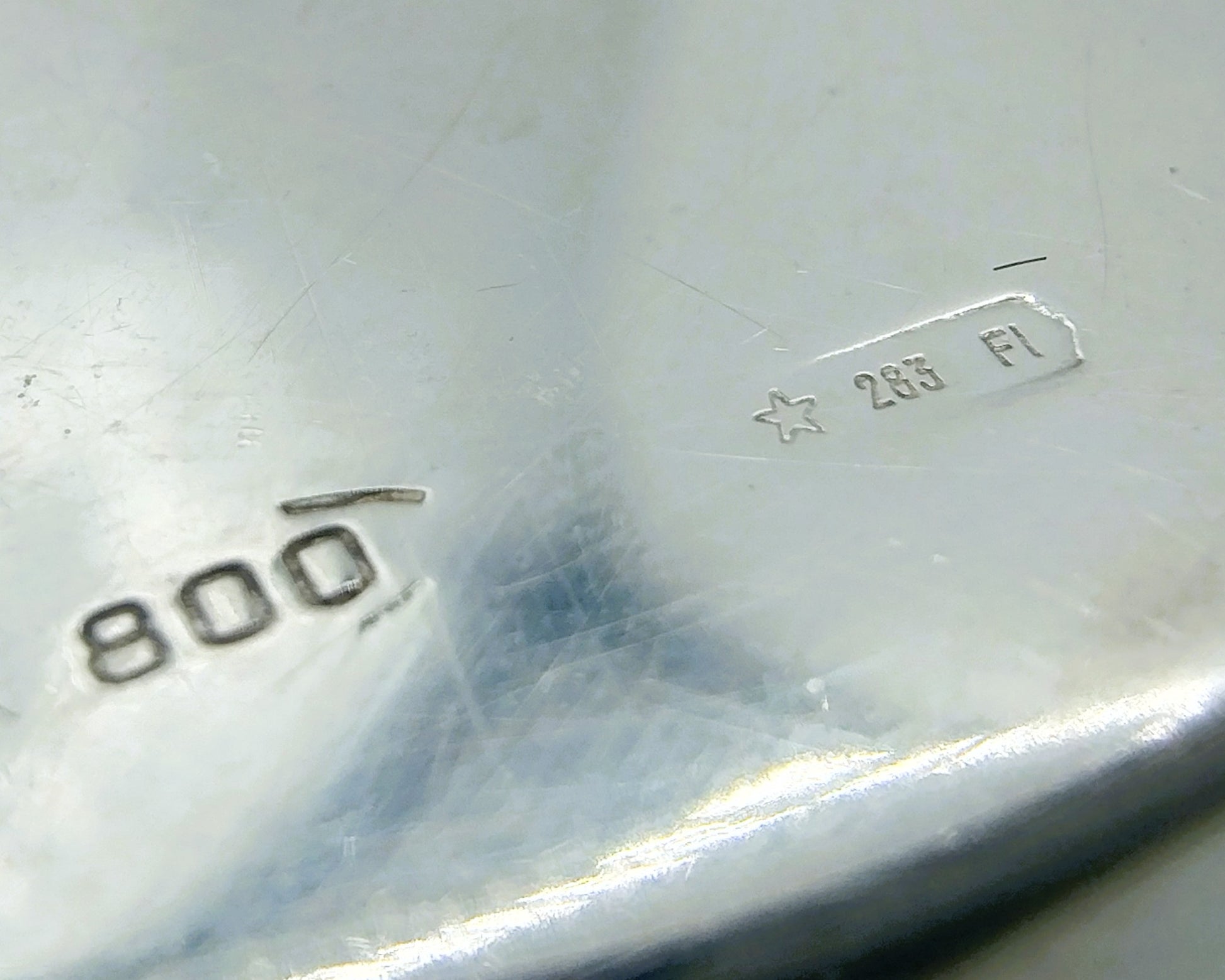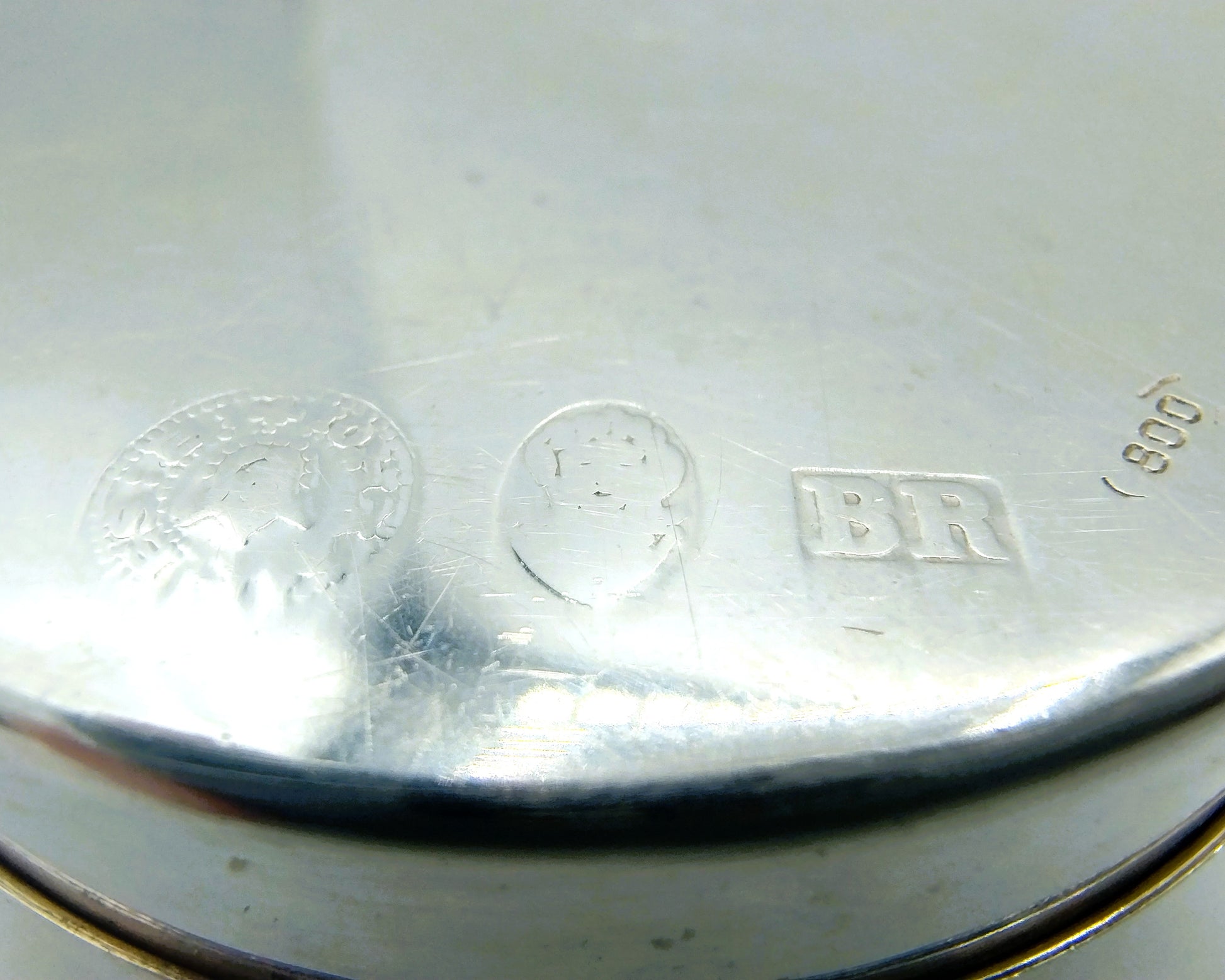 Het doosje is gekeurd met diverse keuren. BR, vrouwportret, wapen, 800 als 3e gehaltekeur en meesterkeur * 283 FI.