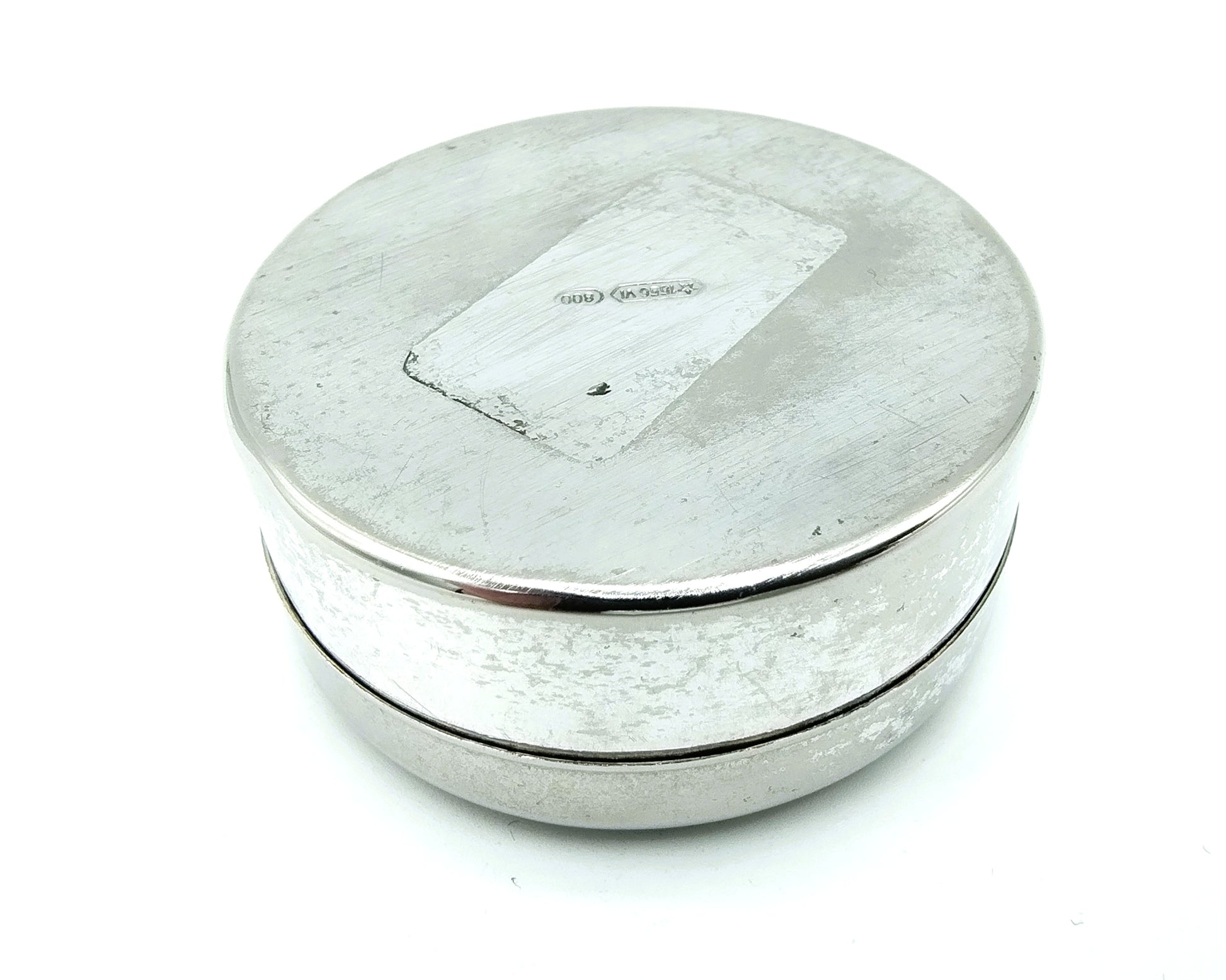 Zilveren doosje afkomstig uit Italië, gemaakt door de fa. Elis srl uit Solagna werkzaam vanaf 1986.