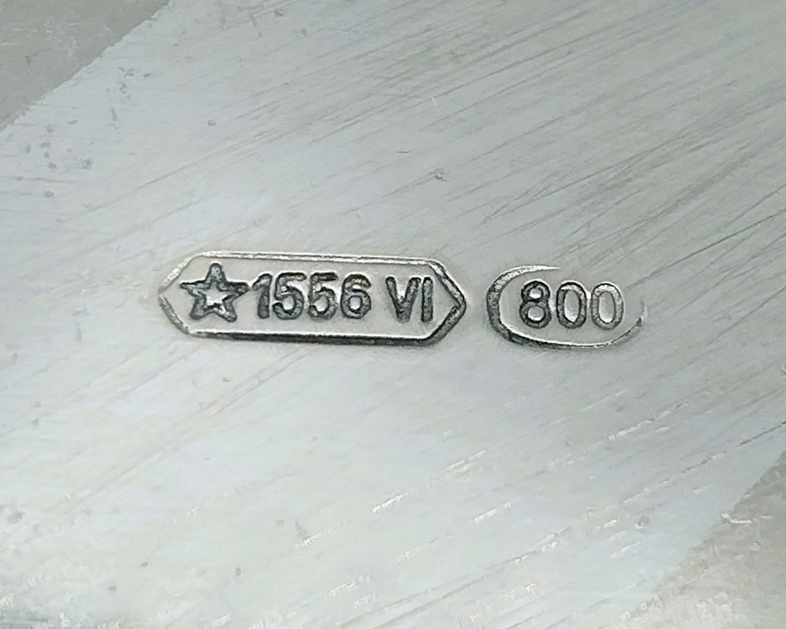 Het doosje is gekeurd met 800 voor 3e gehalte zilver en meesterkeur 1556 VI.