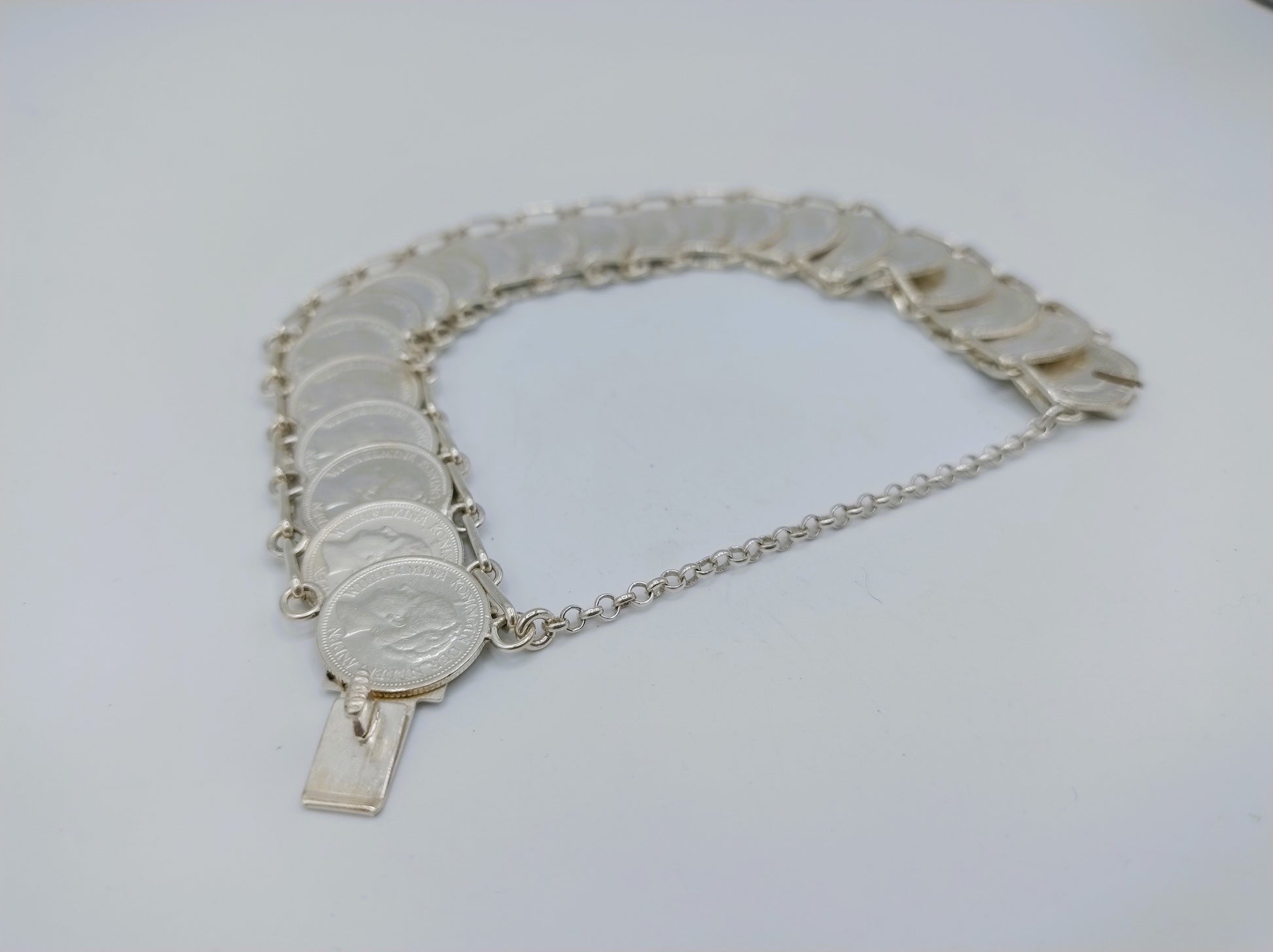 De munten dateren tussen 1928 en 1941. In totaal zijn er 22 dubbeltjes verwerkt in de armband.