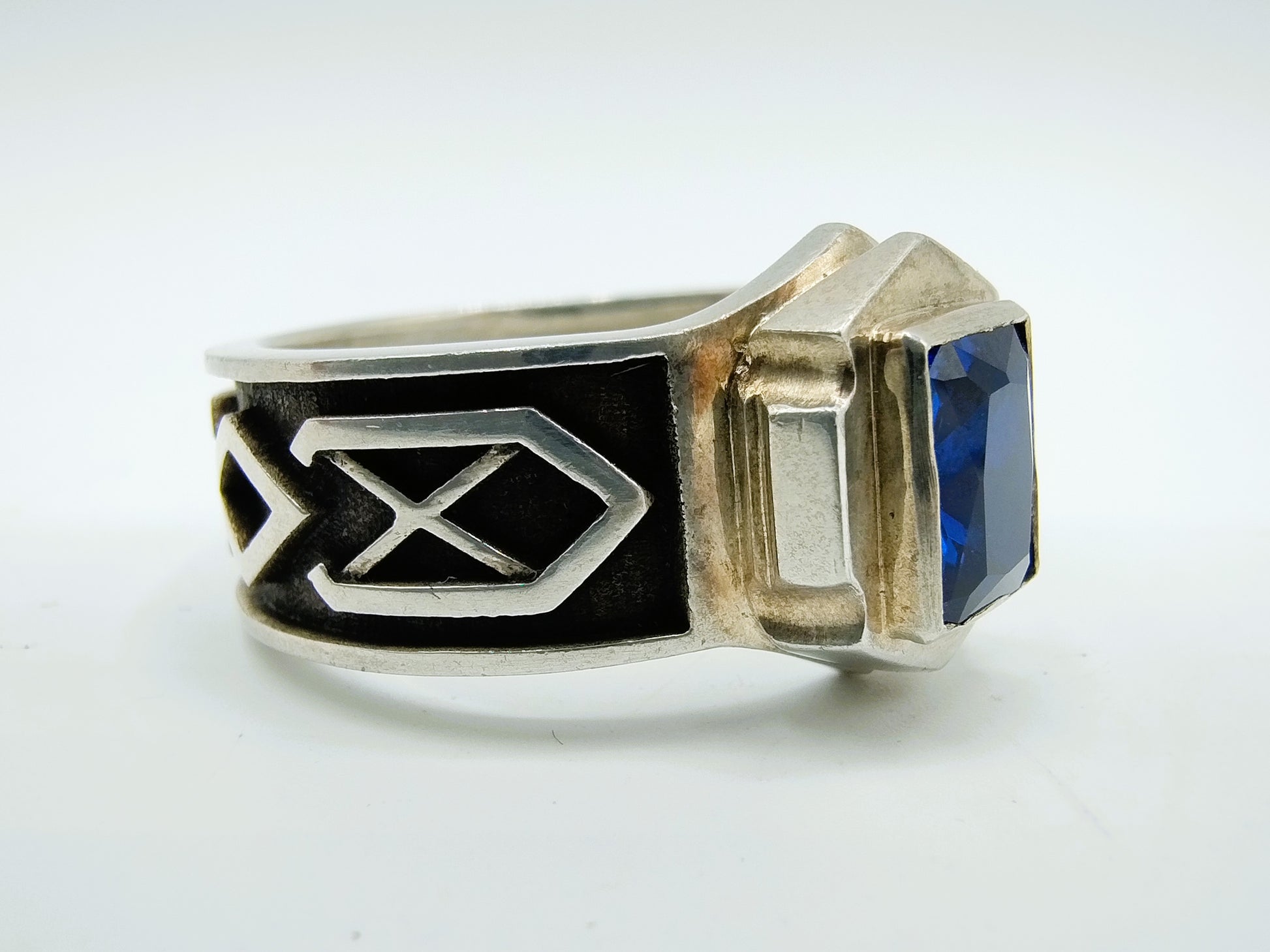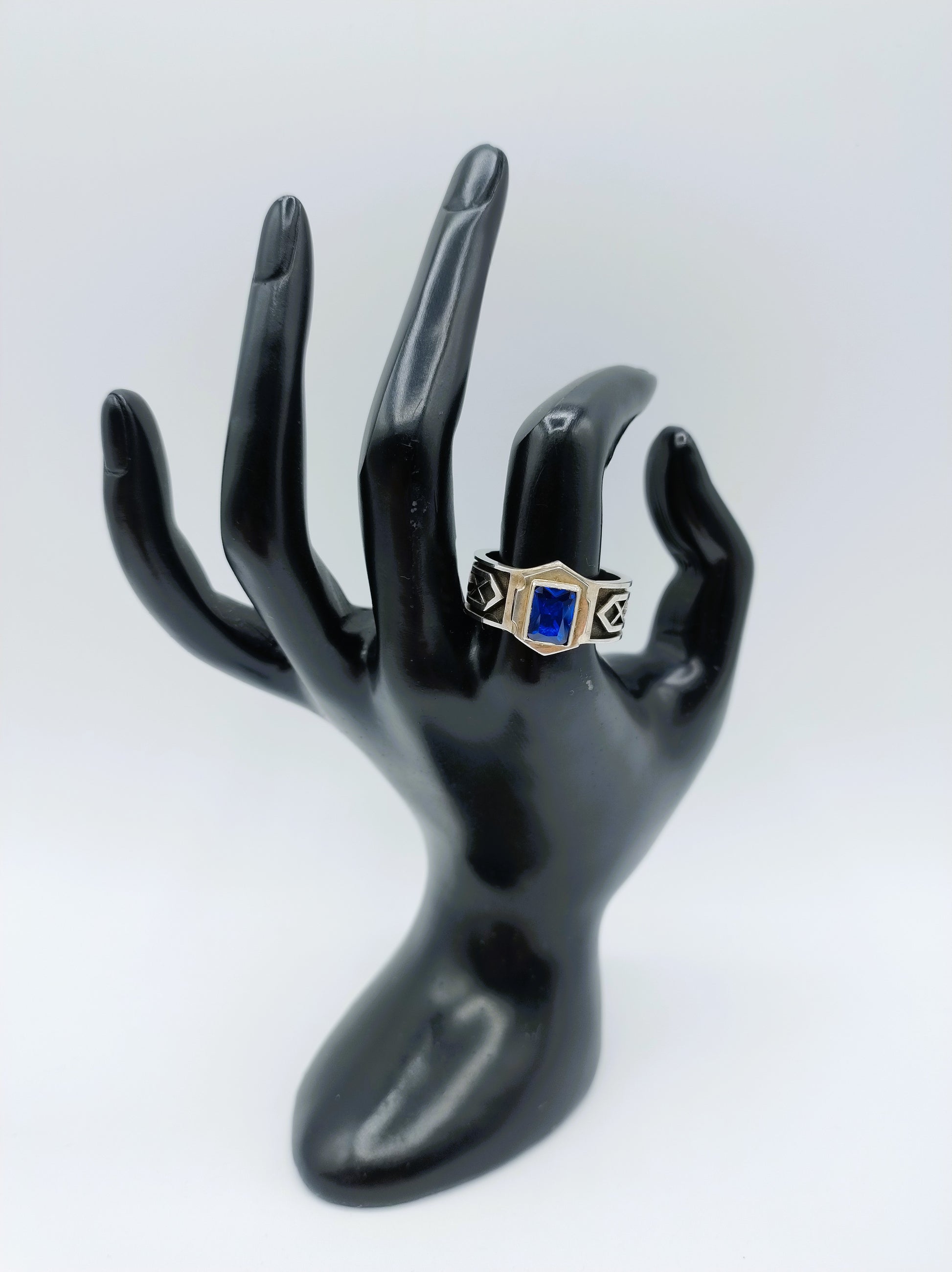 Zilveren dwarf ring met blauwe steen, saffier? Onderdeel van 7 ringen (rings of power) die aan de dwergheren werden gegeven.