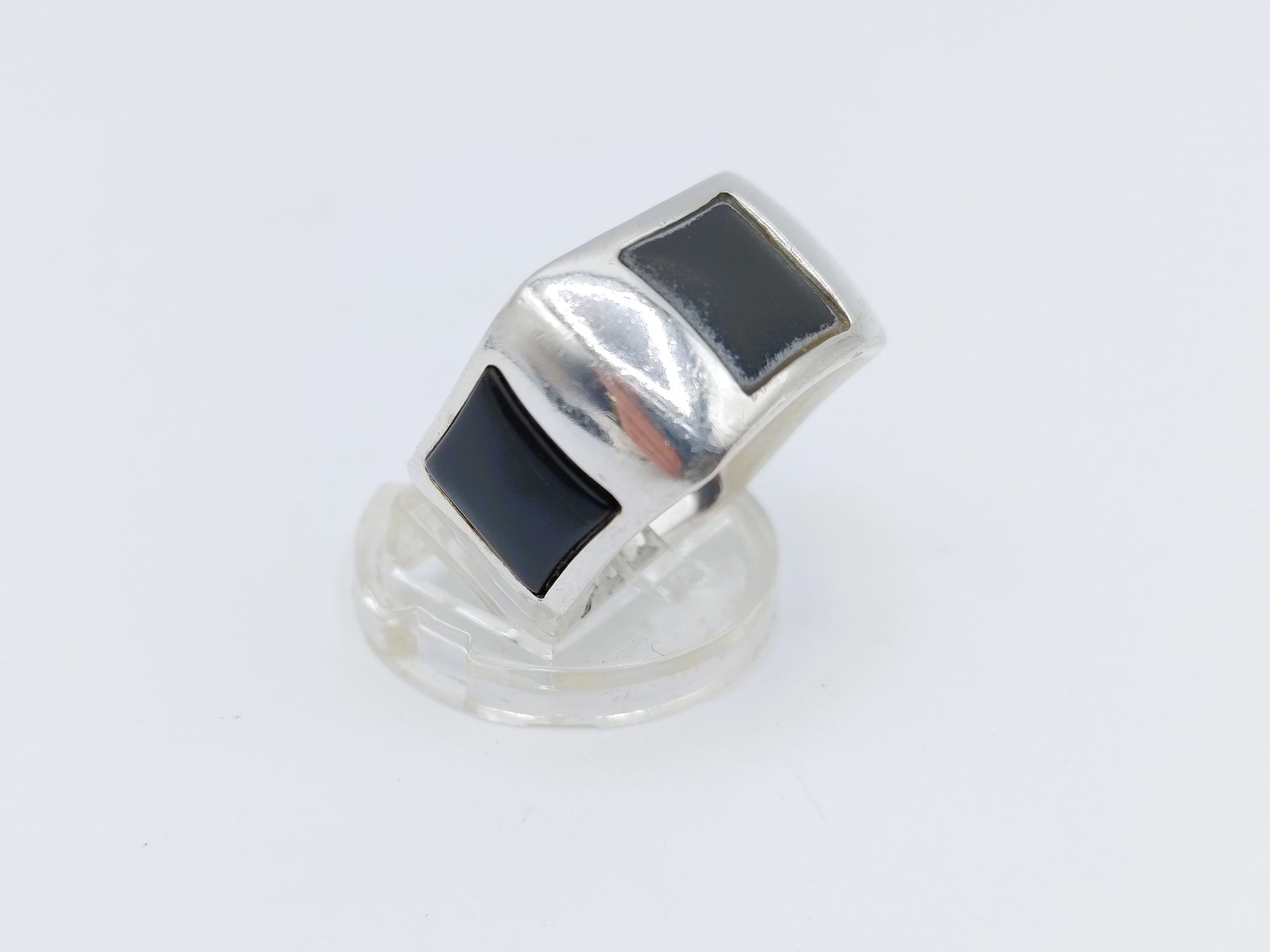 Zware en robuuste zilveren Esprit ring met aan 3 kanten een onyx.