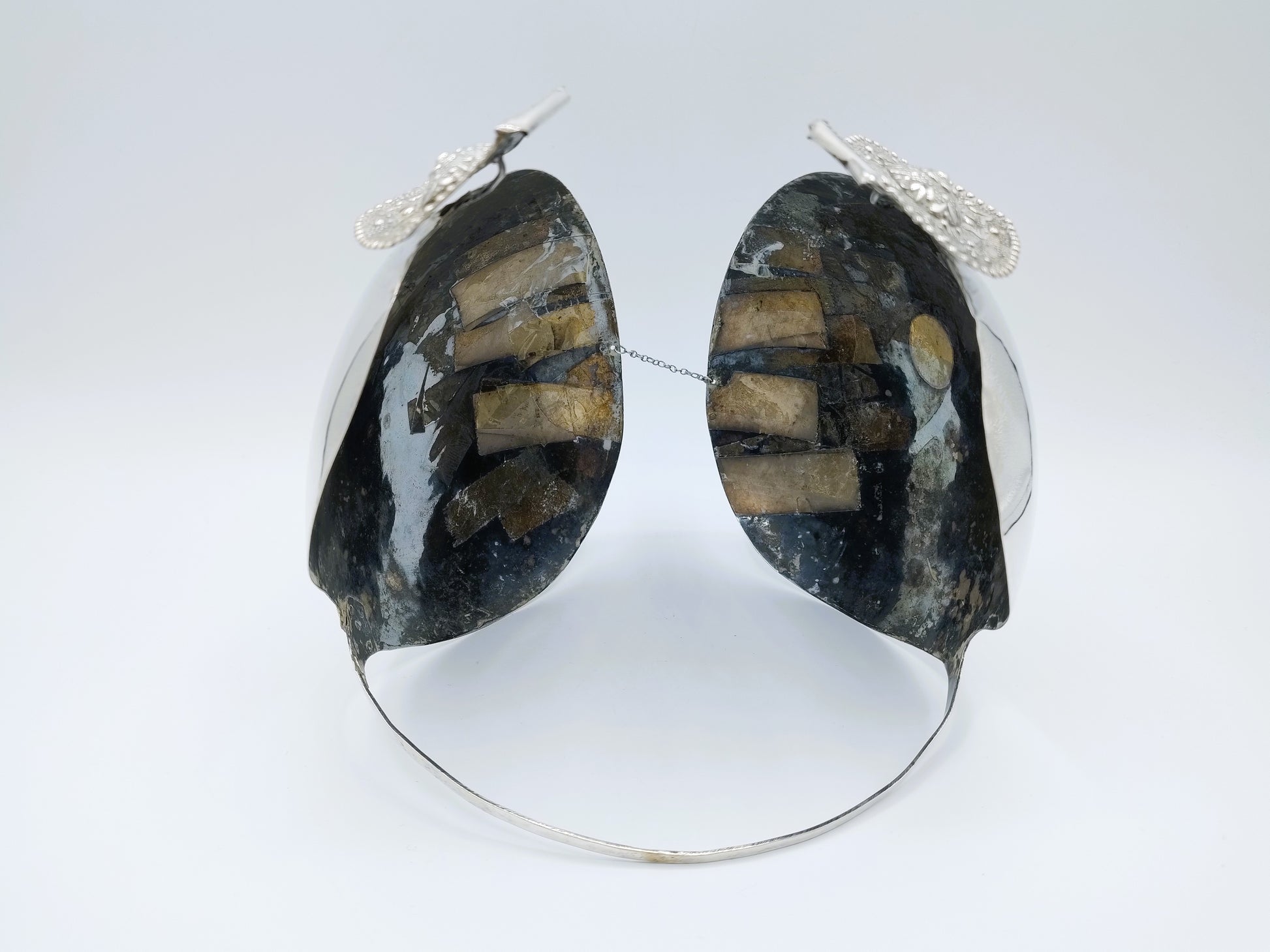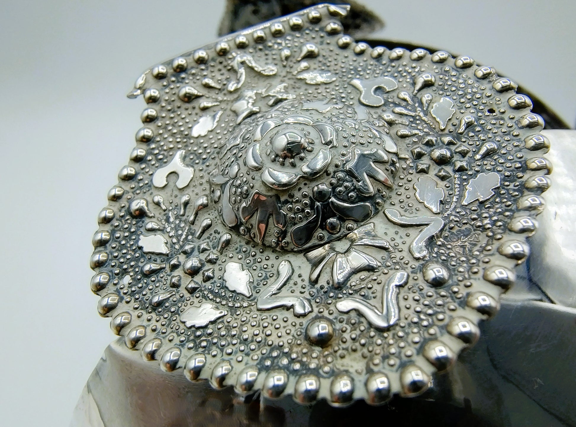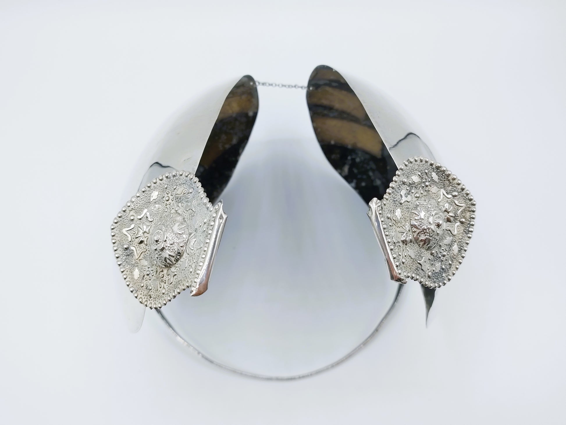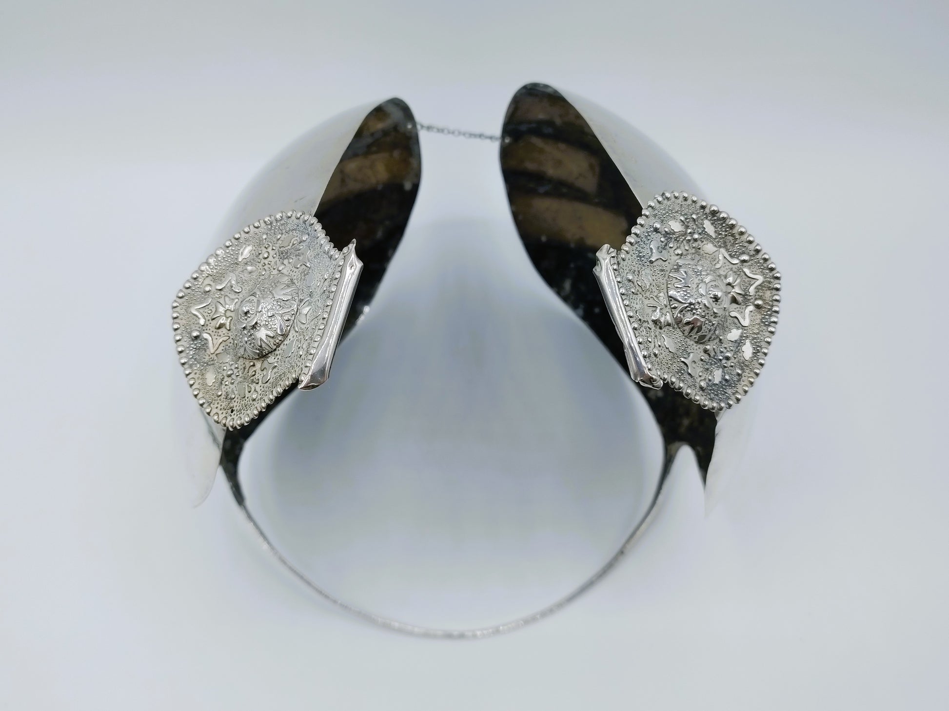 Fries zilveren oorijzer voorzien van twee zilveren boekstukken gemaakt door de Friese zilversmid H. Adema uit Leeuwarden. Hij was werkzaam vanaf 1846.