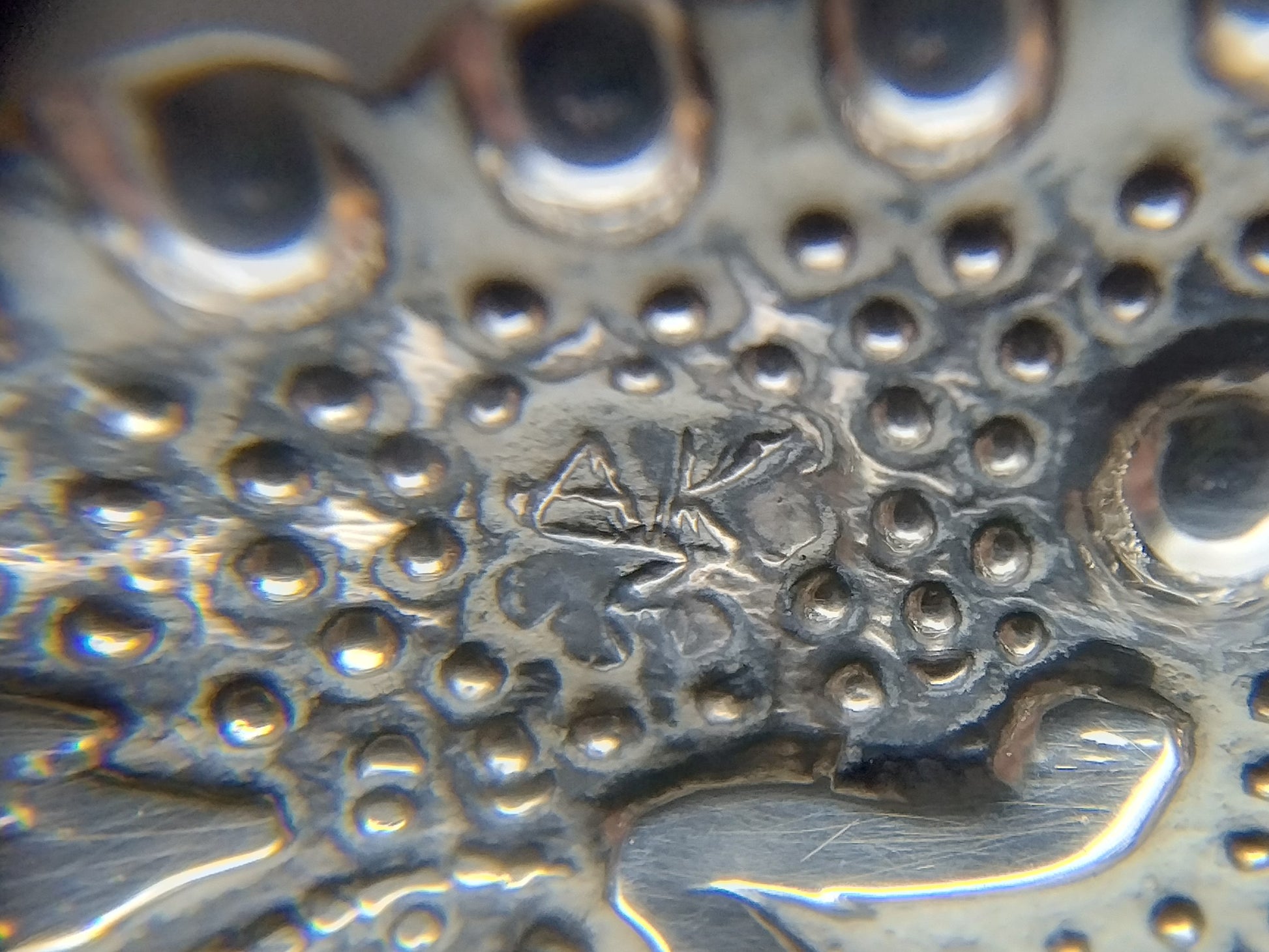 Het oorijzer is gekeurd met het tweede gehaltekeur, minervakopje en het meesterteken HA183.
