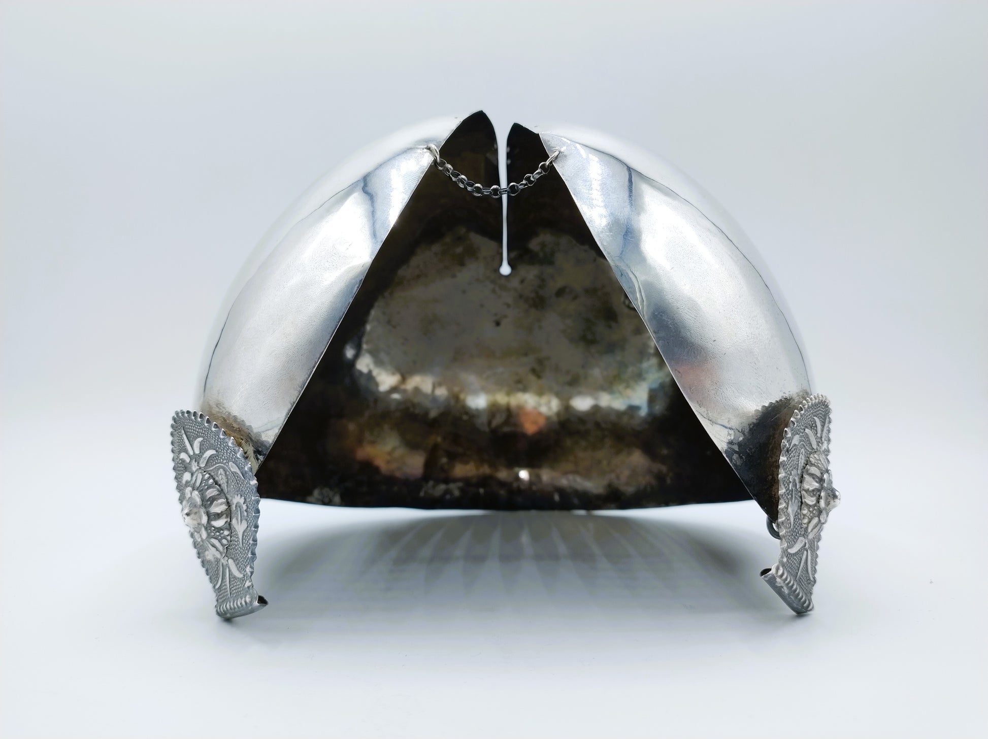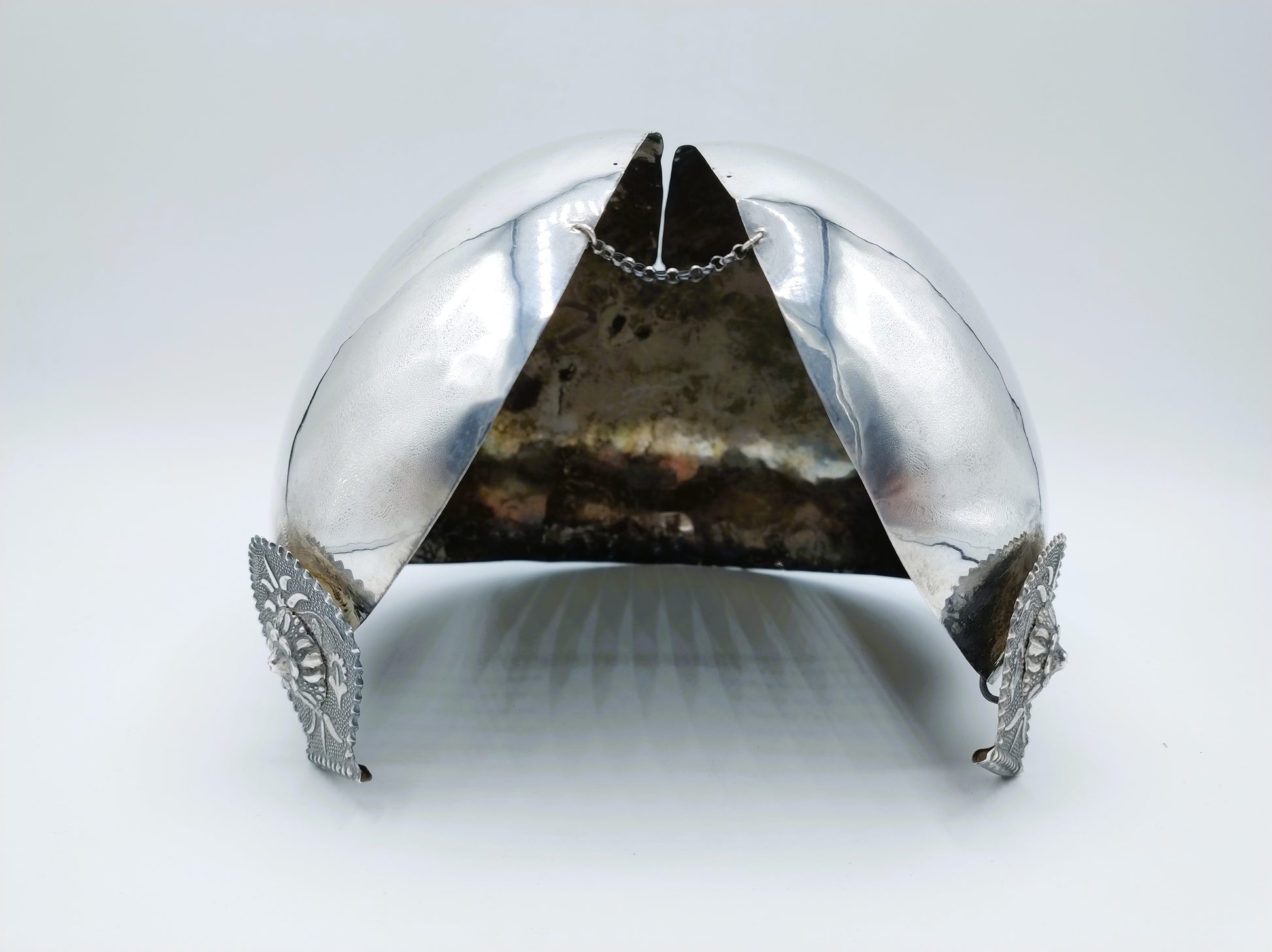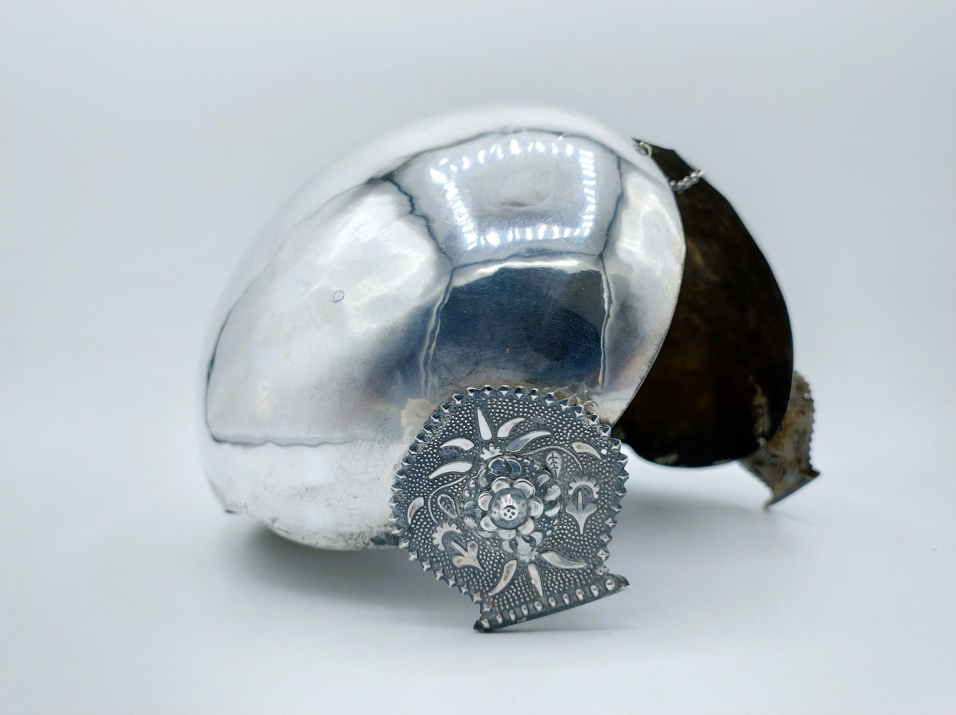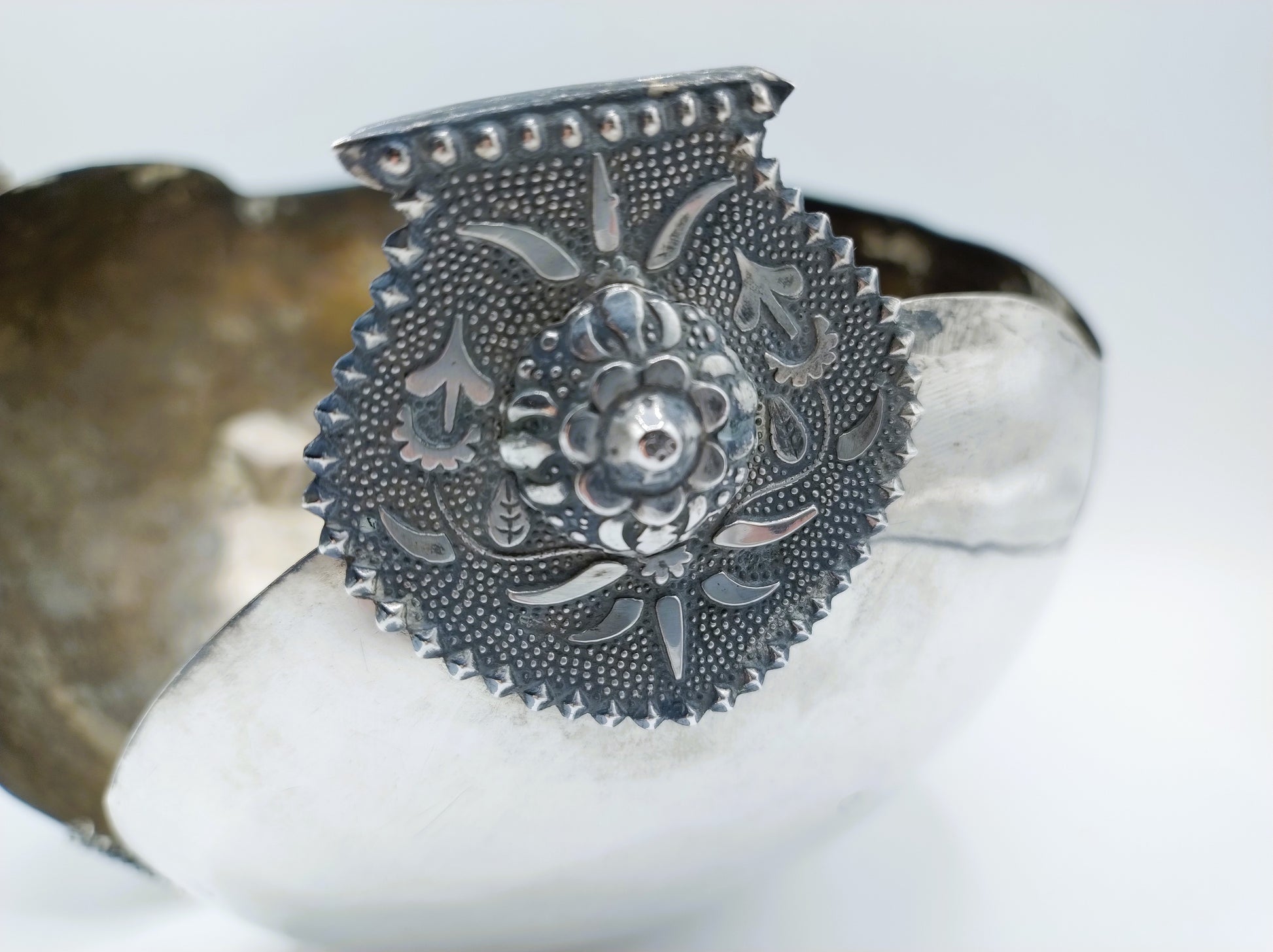 Fries zilveren oorijzer voorzien van twee zilveren boekstukken. Het oorijzer is gemaakt door de zilversmid F. Hofman uit Kollum. Hij was werkzaam van 1853 tot 1890.