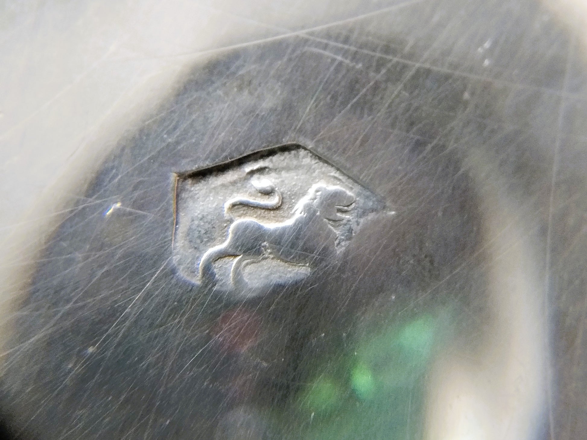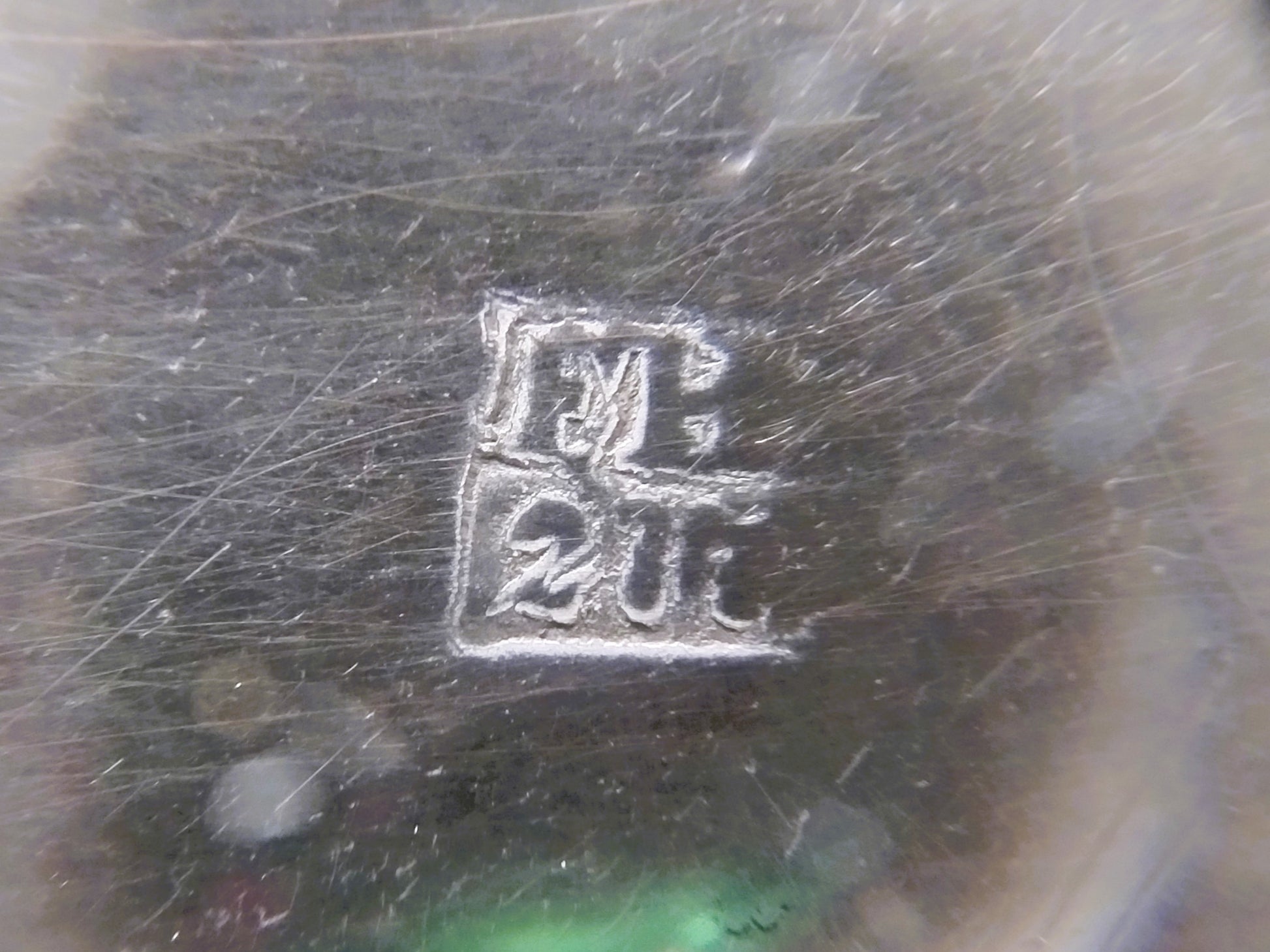 Het oorijzer is gekeurd met het tweede gehaltekeur, jaarletter C voor 1887, minervakopje en meesterteken FH217.