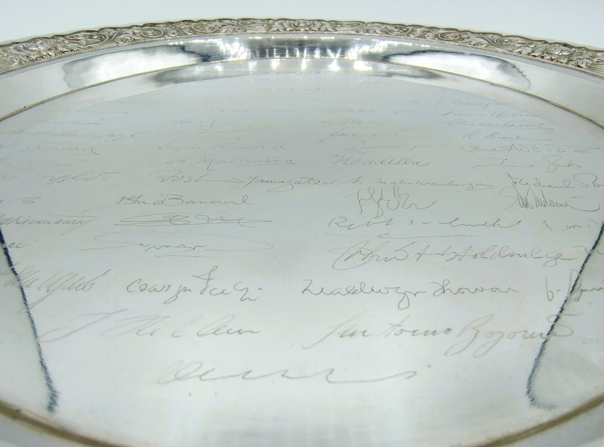 Op het bord staan daarnaast alle handtekeningen van het Diplomatic Corps.