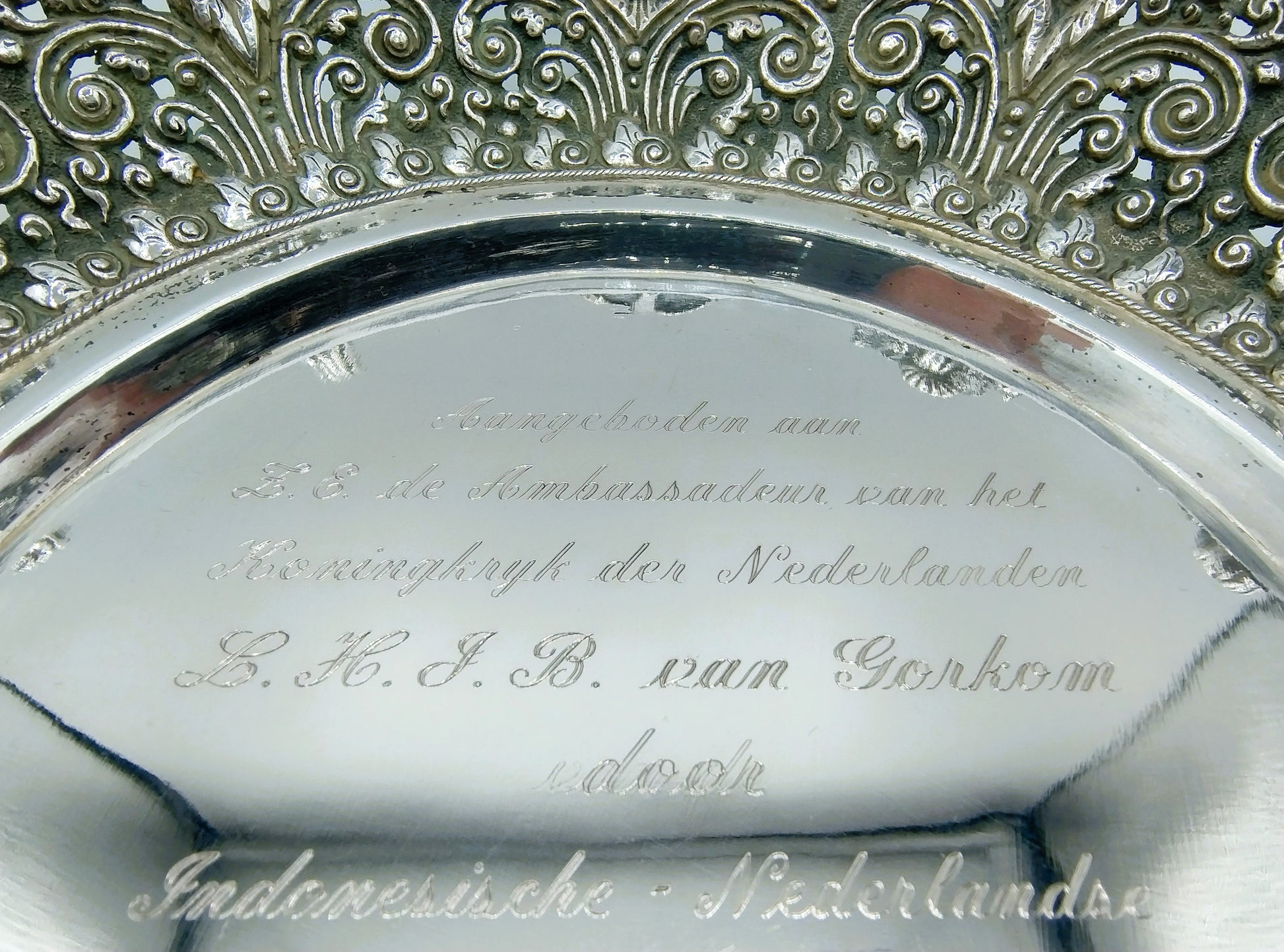 Zilveren fruitschaal en bord, ambassadeur J.B. Gorkom, Indonesië, 1,1 kg