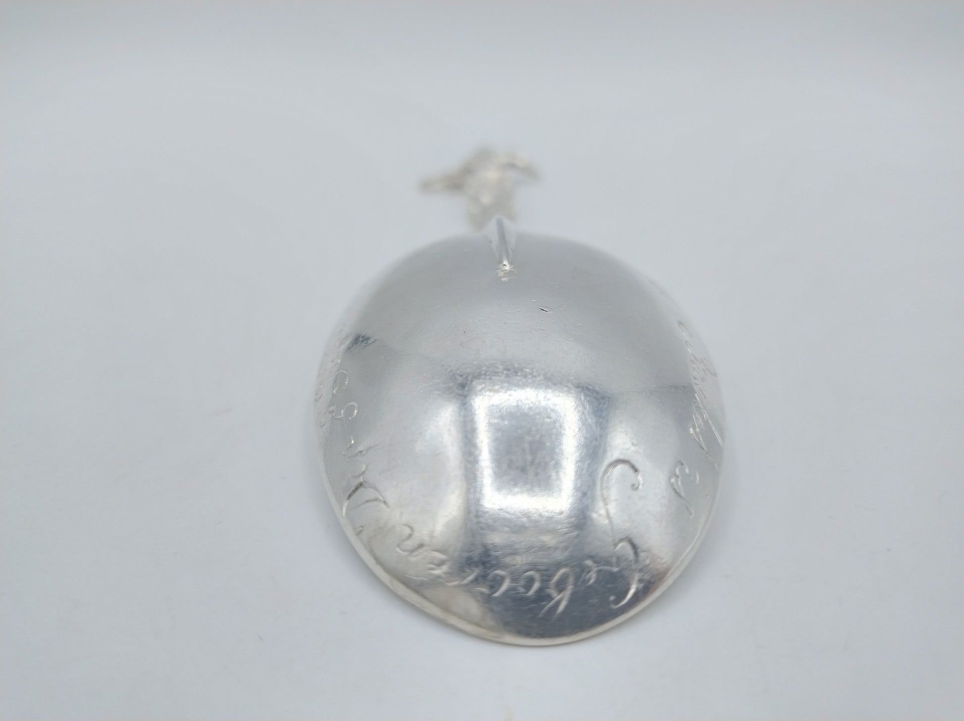 Friese zilveren geboortelepel, gemaakt door Age Binses Looxma (Voet 532) uit Sneek. Deze zilversmid was werkzaam van 1720 tot 1759.