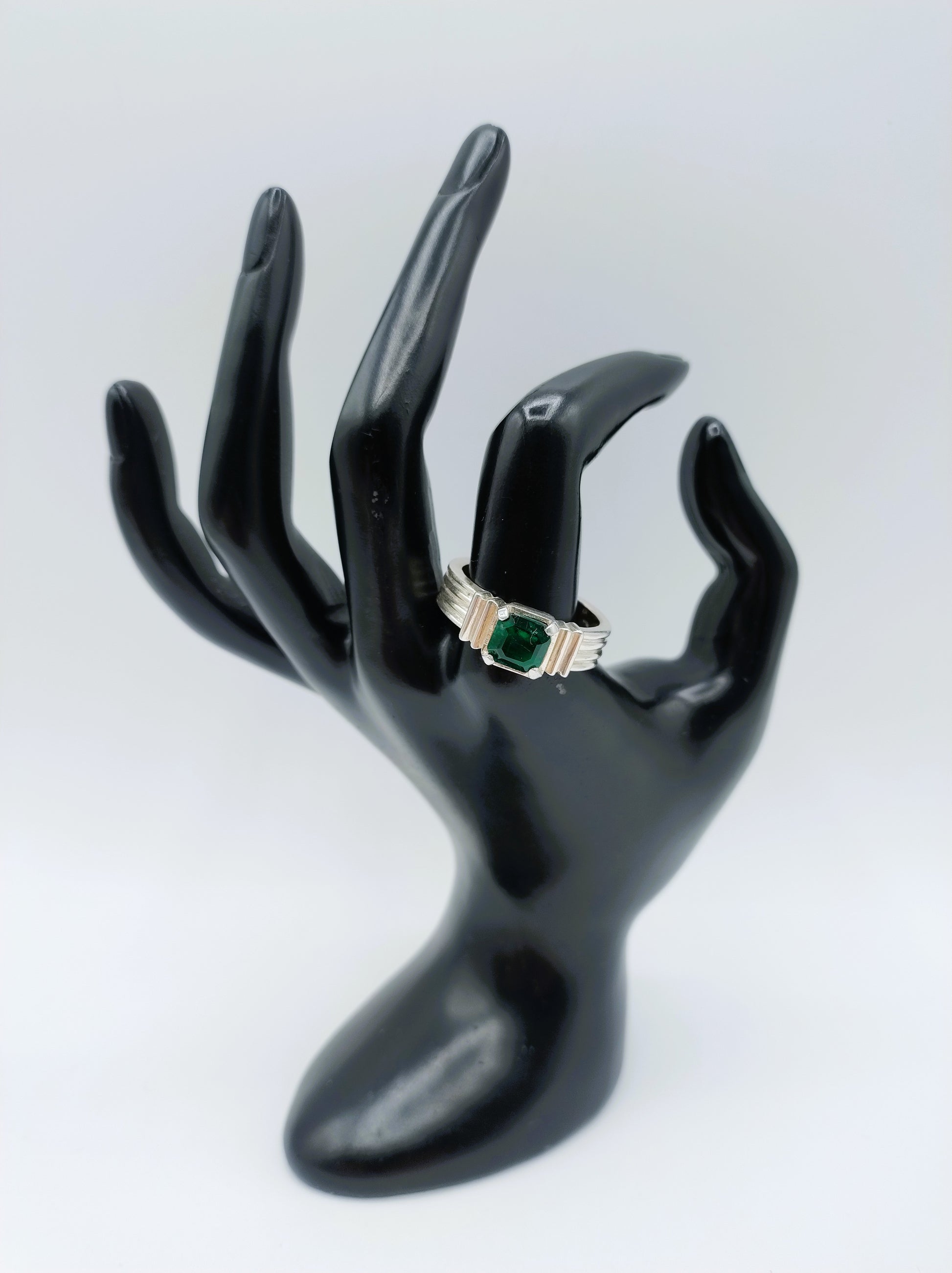 Zilveren herenring met groene steen (smaragd?) 22 mm