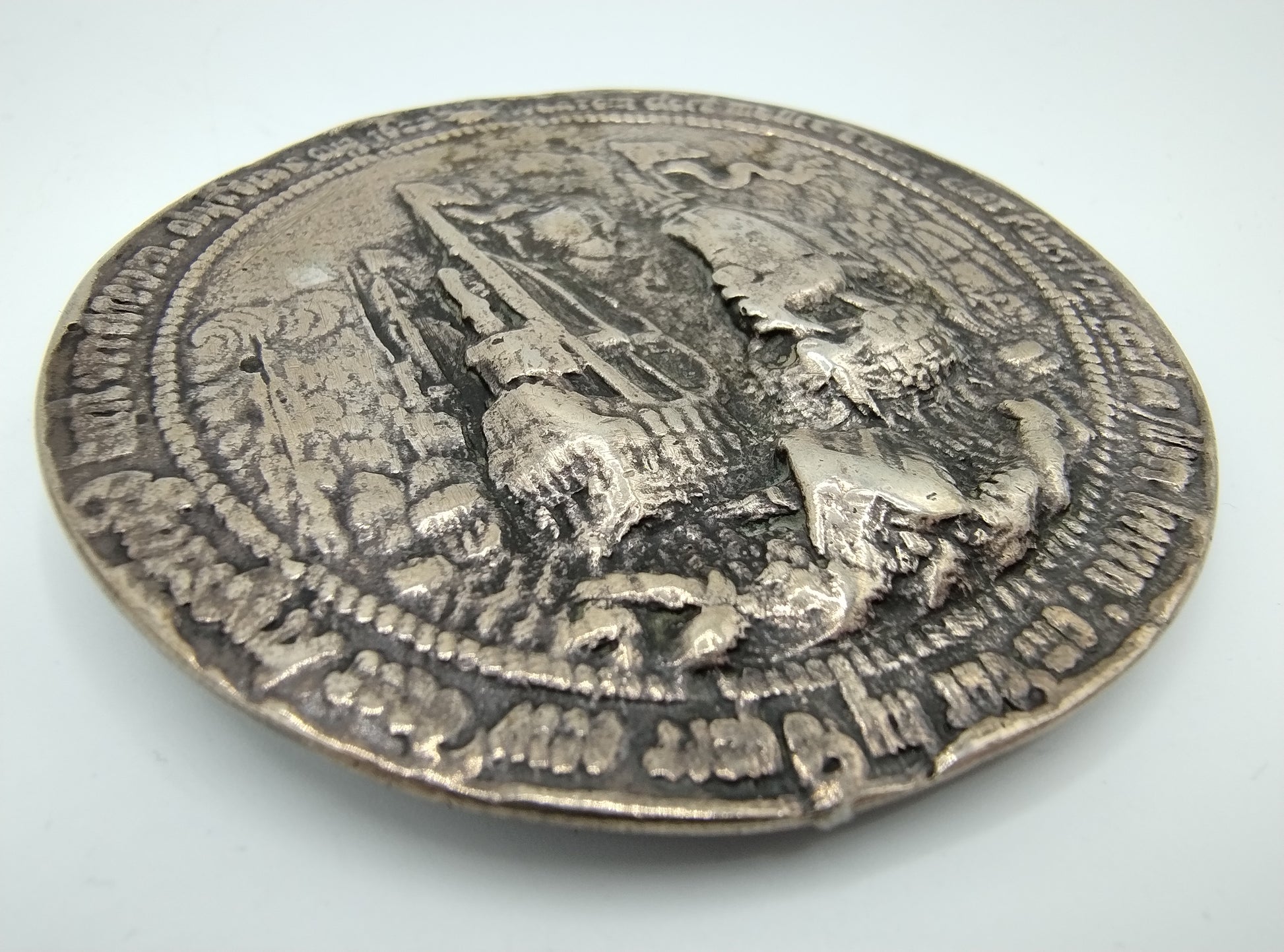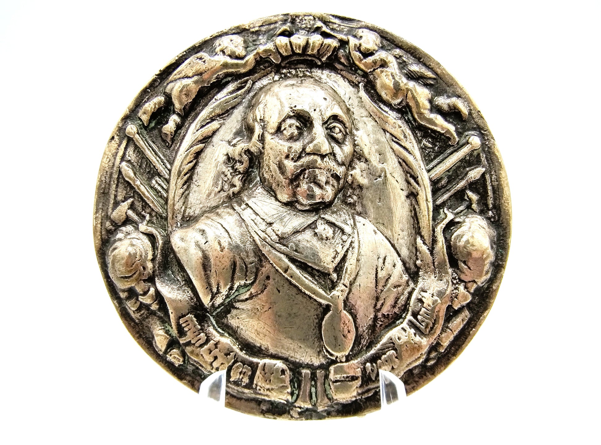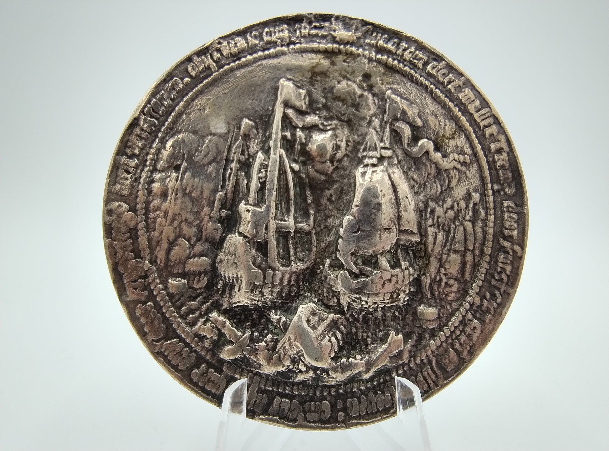 Het gaat hier waarschijnlijk om een later geslagen penning, zie foto’s voor uw eigen indruk.