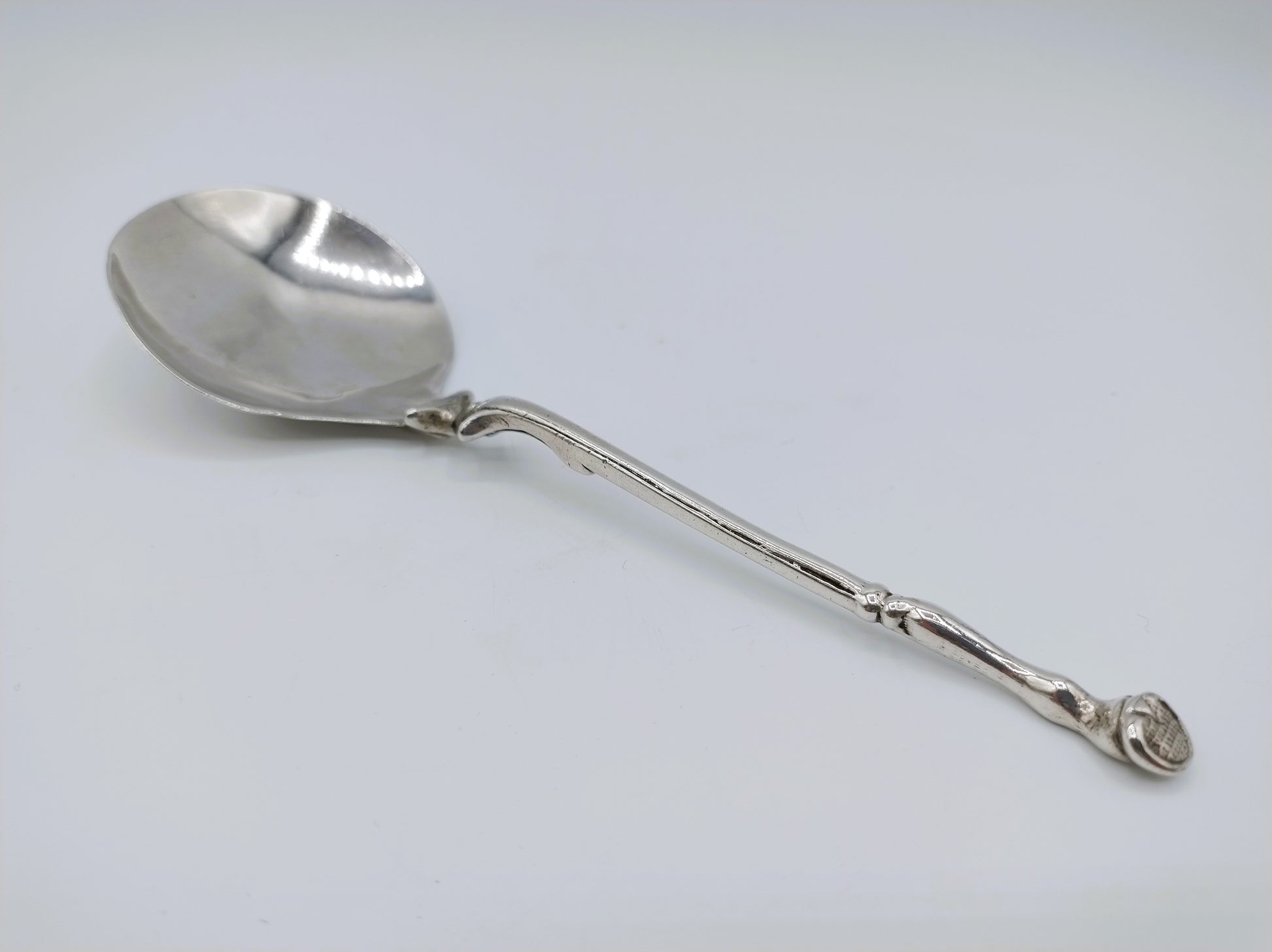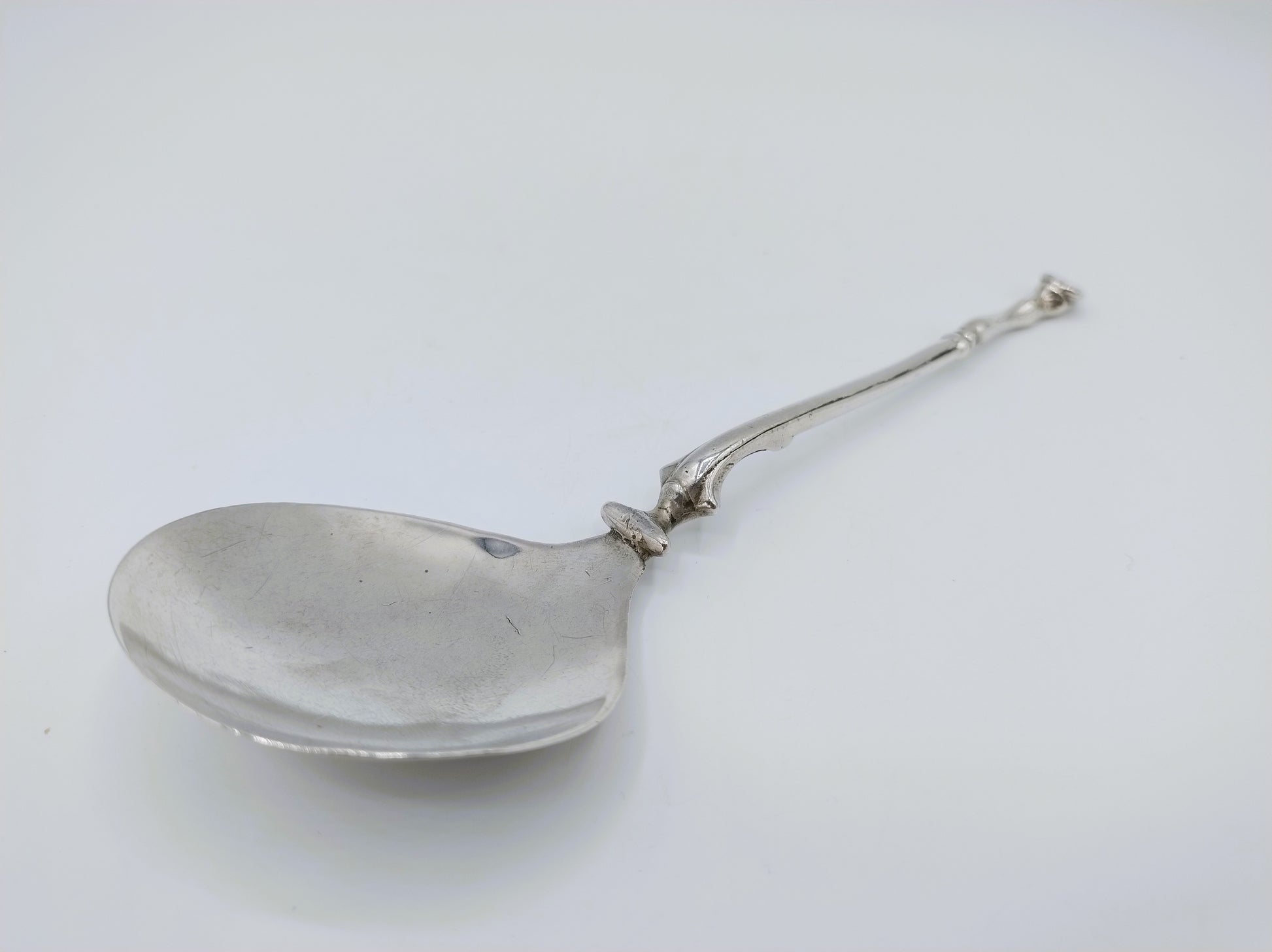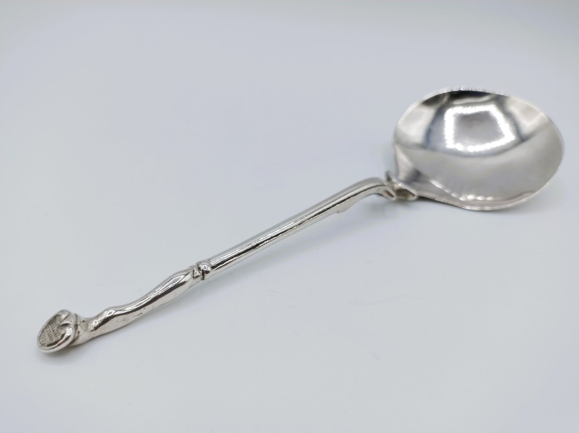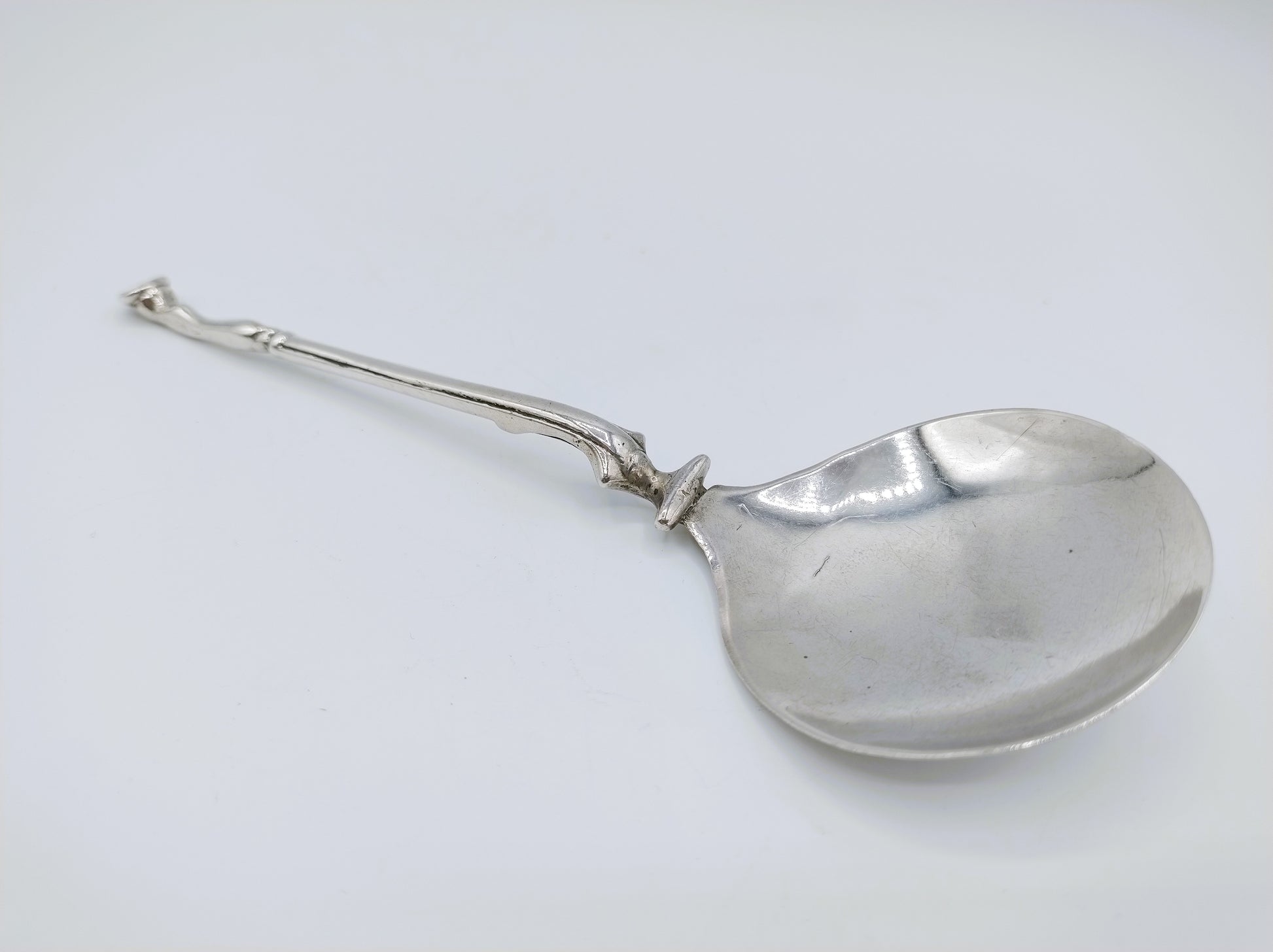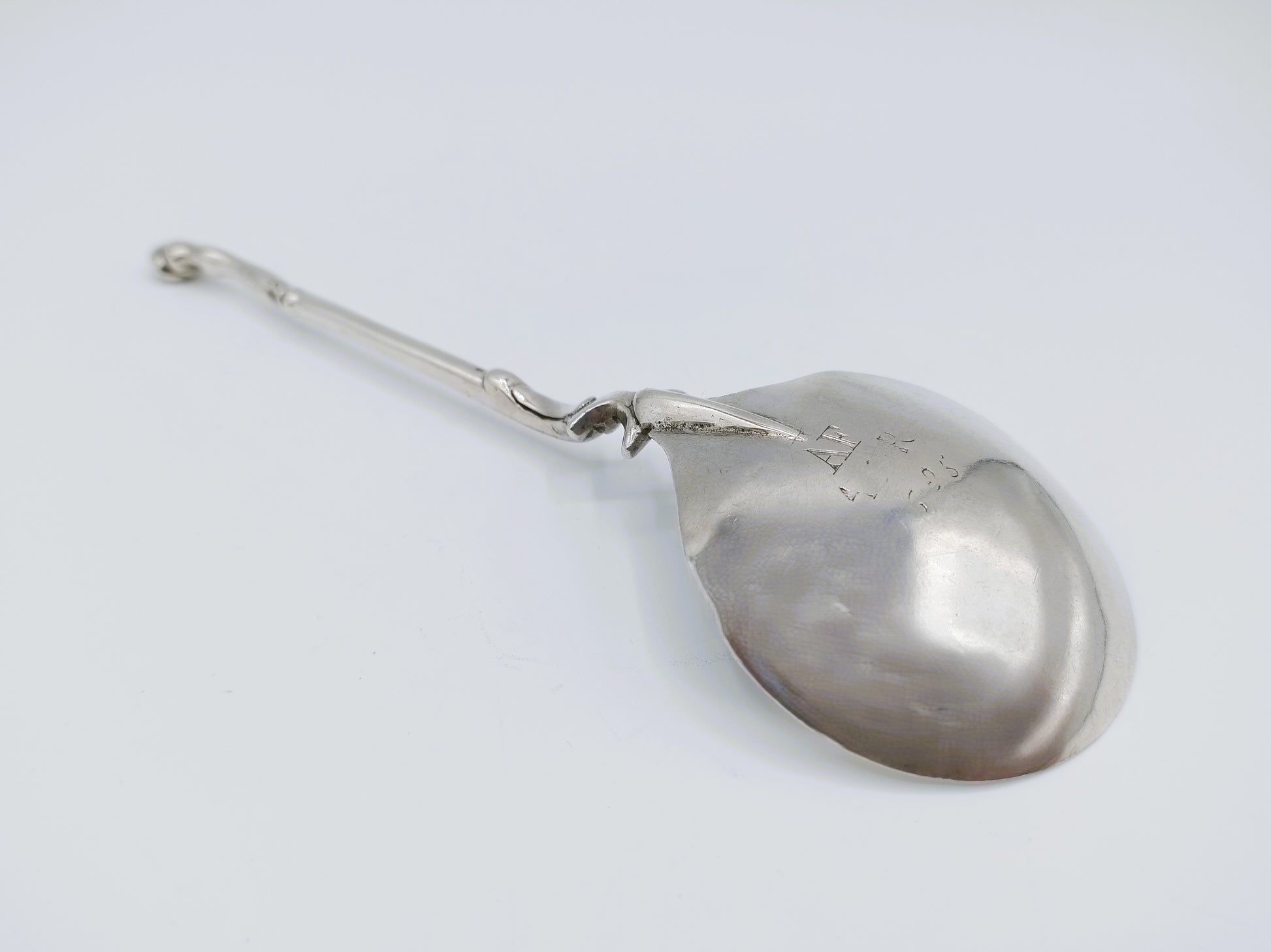 17-Eeuwse hoeflepel met naaldverbinding tussen bak en steel mogelijk gemaakt door de zilversmid Andries Sjoukes uit Dronrijp