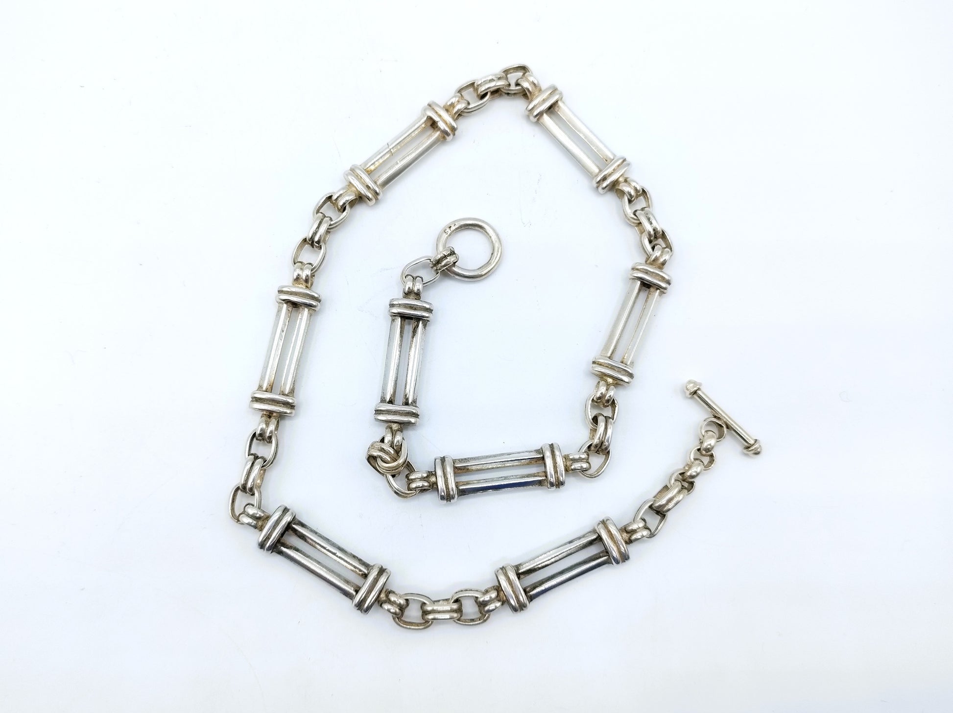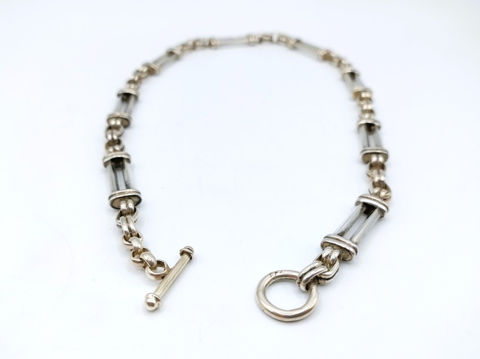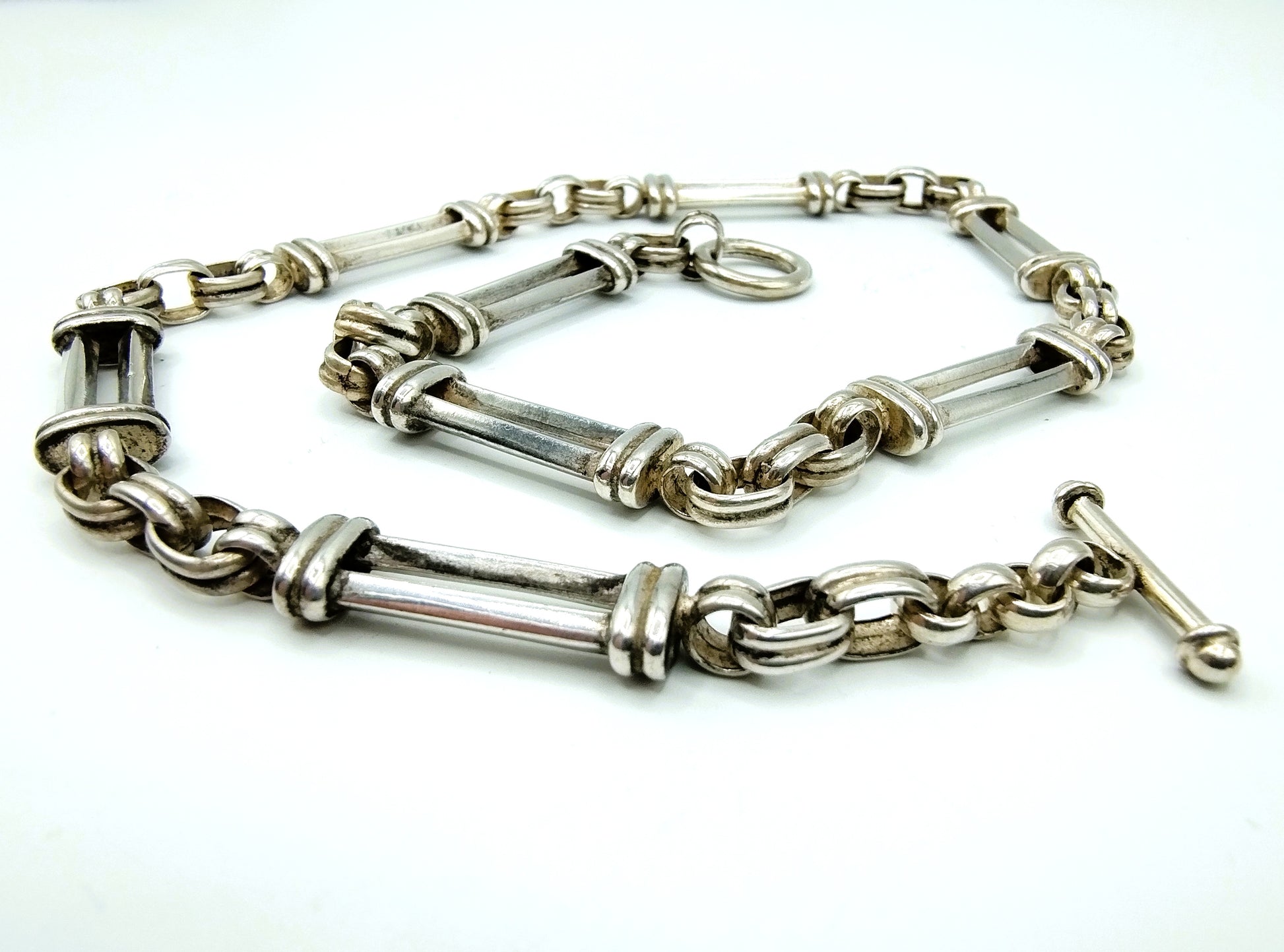 Zware en solide zilveren horlogeketting afwisselend geschakeld met jasseronschakels lange schakels.