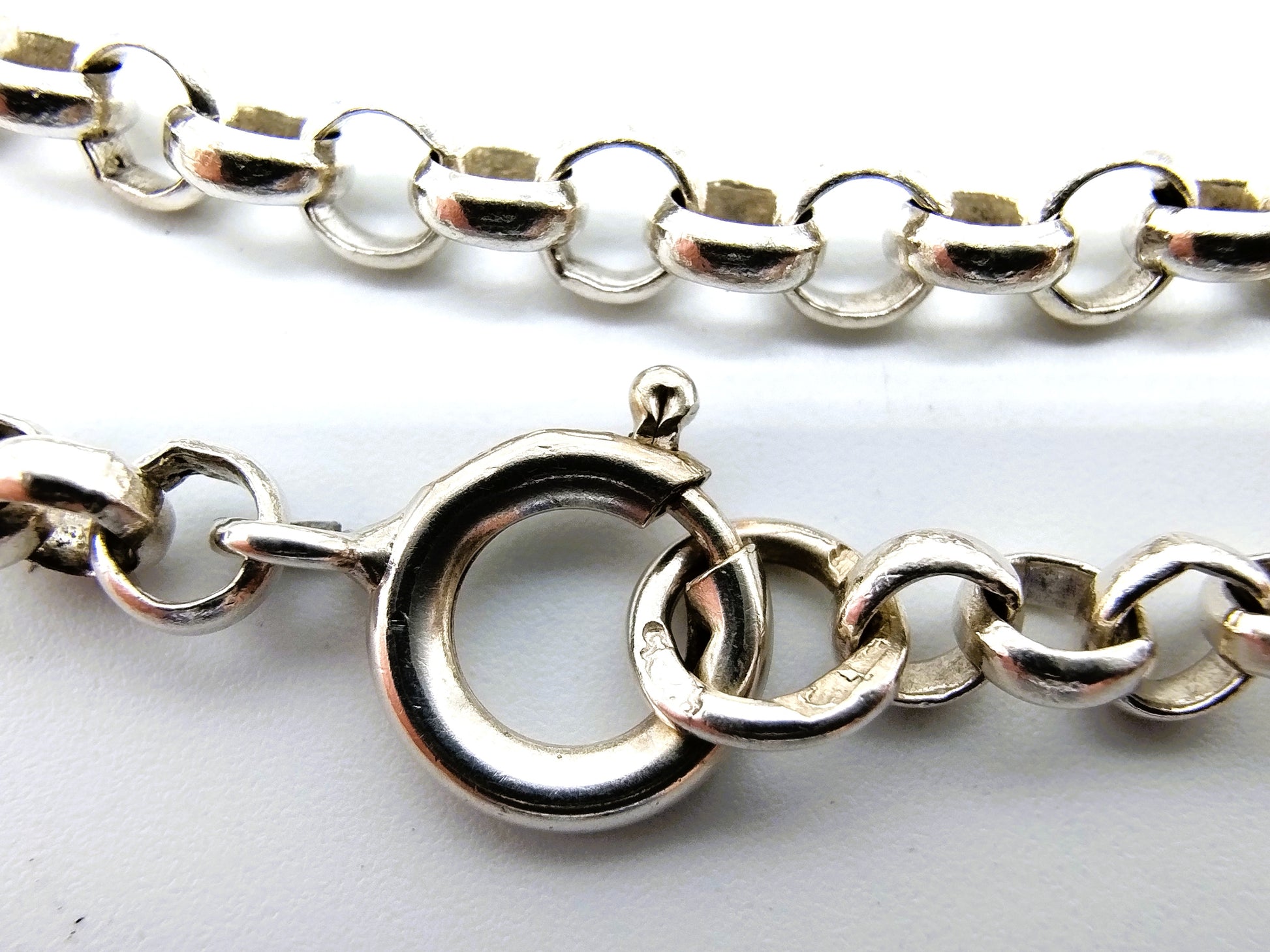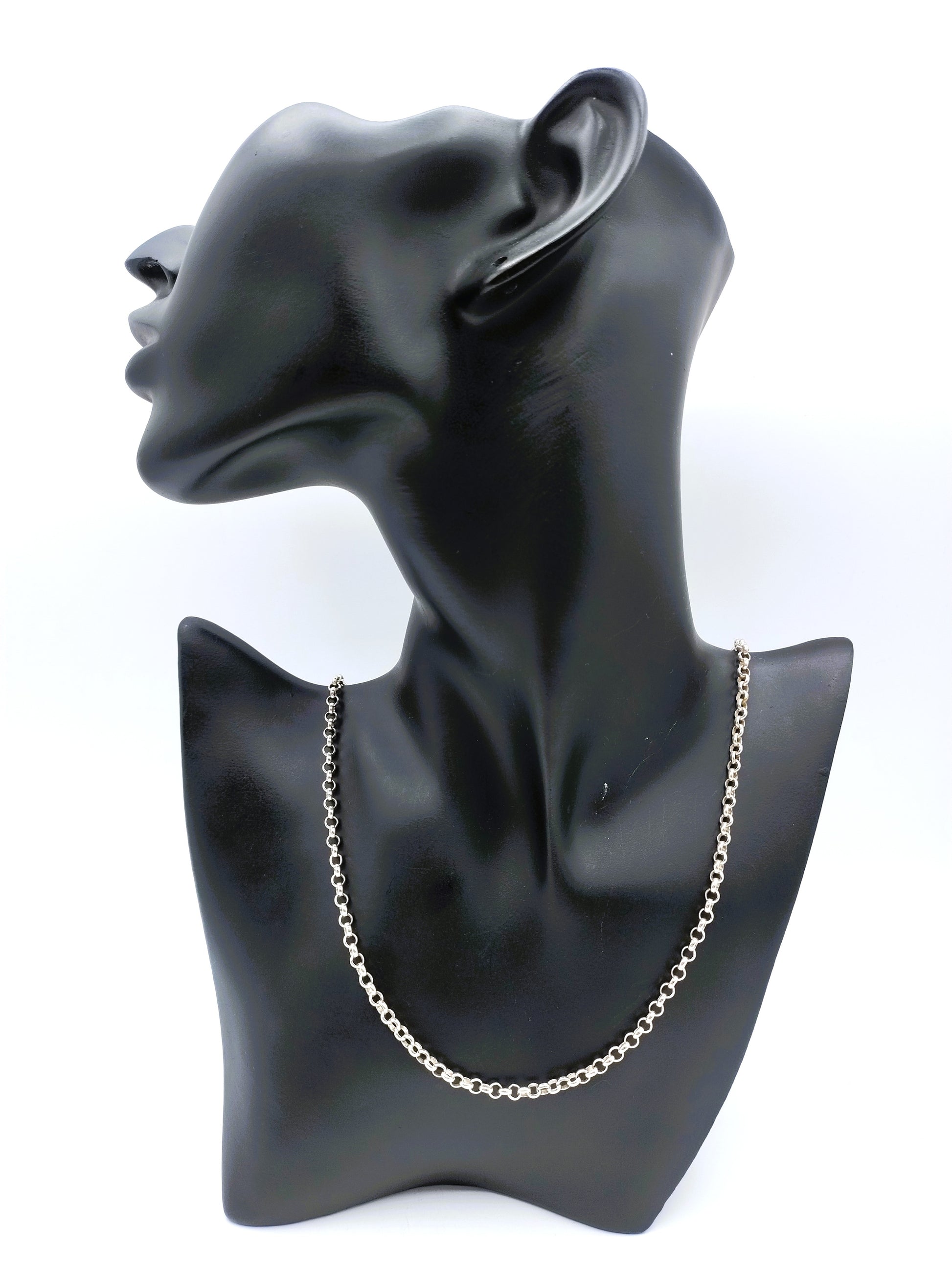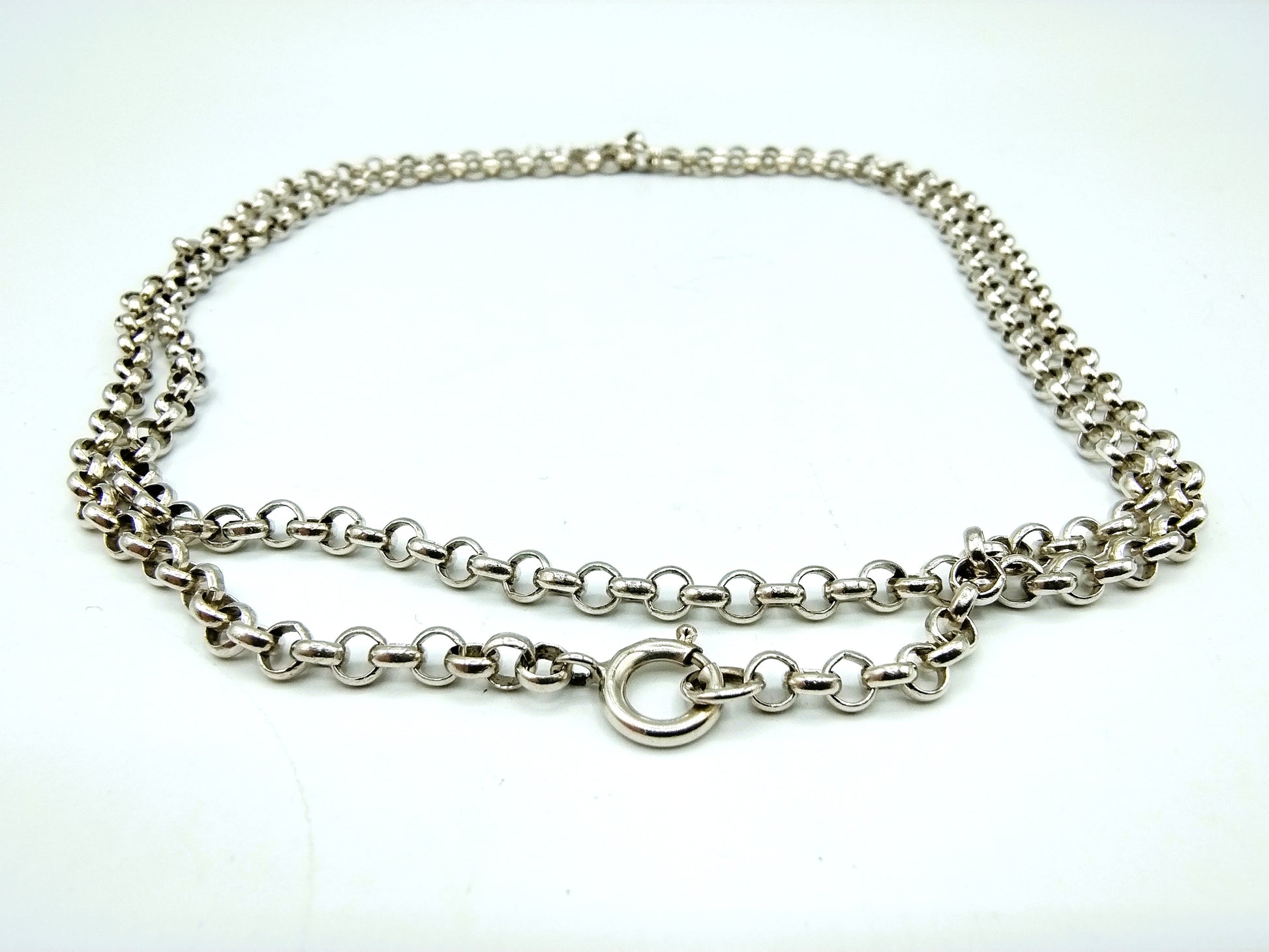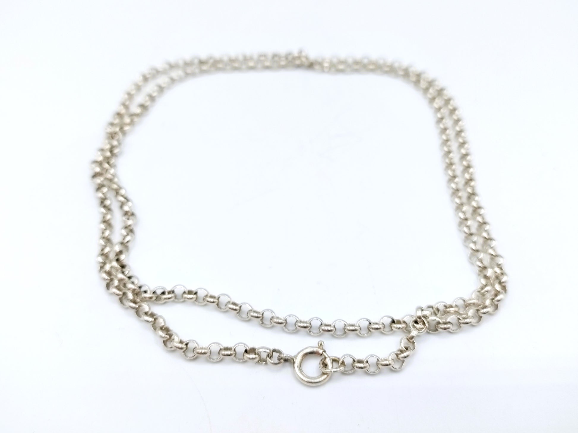 Zilveren jasseronketting met een lengte van 71,5 cm. De ketting kan daardoor eventueel dubbel gedragen worden.