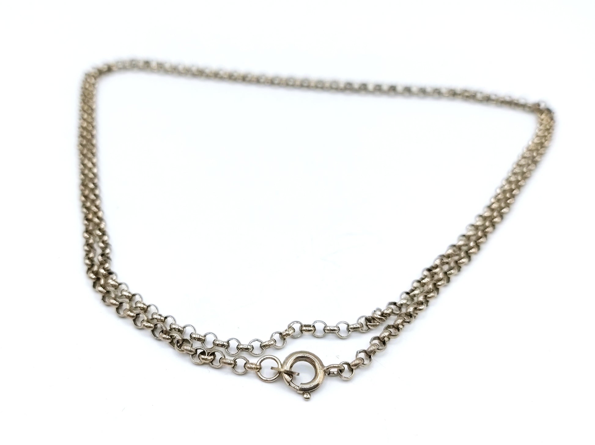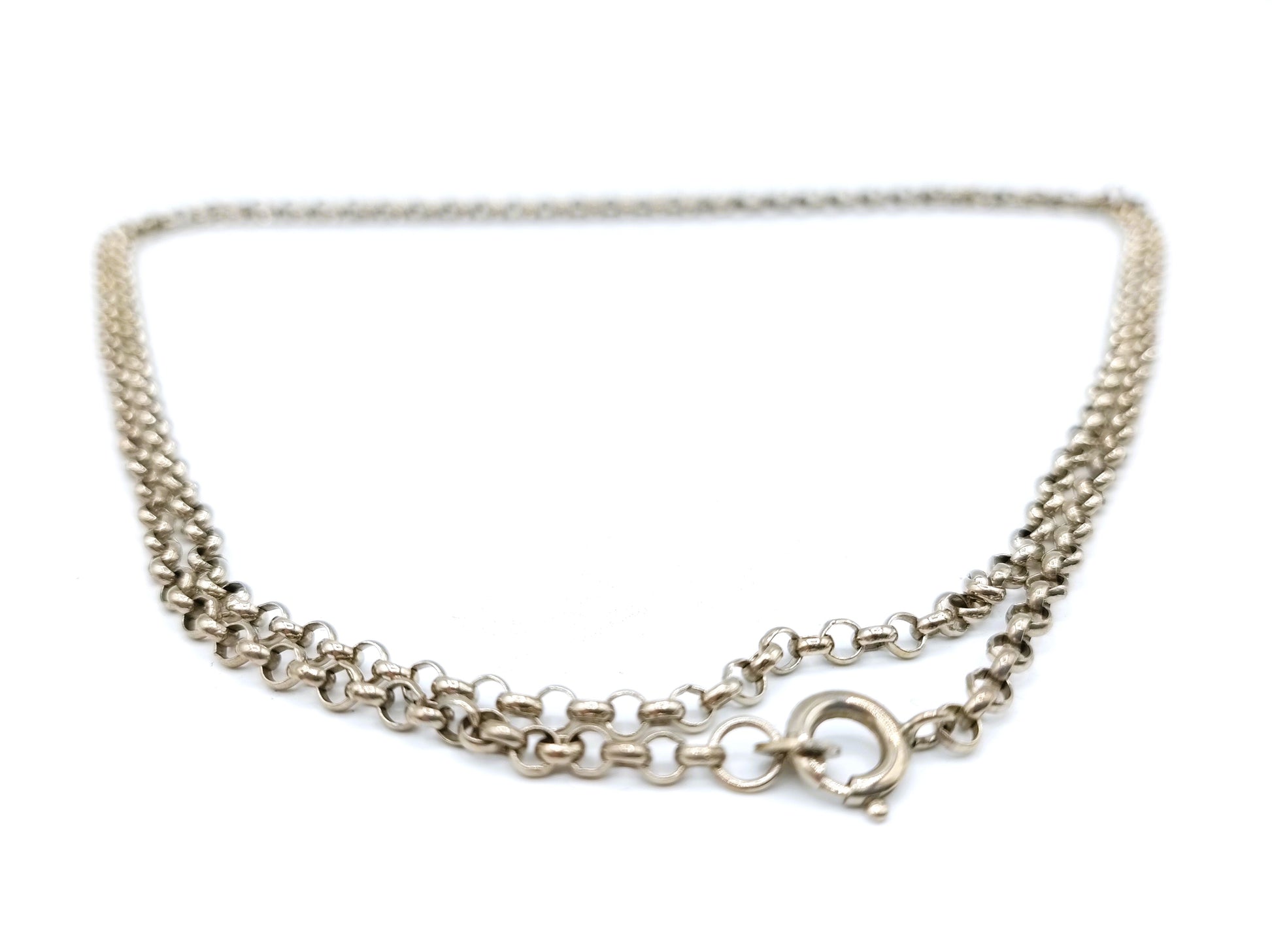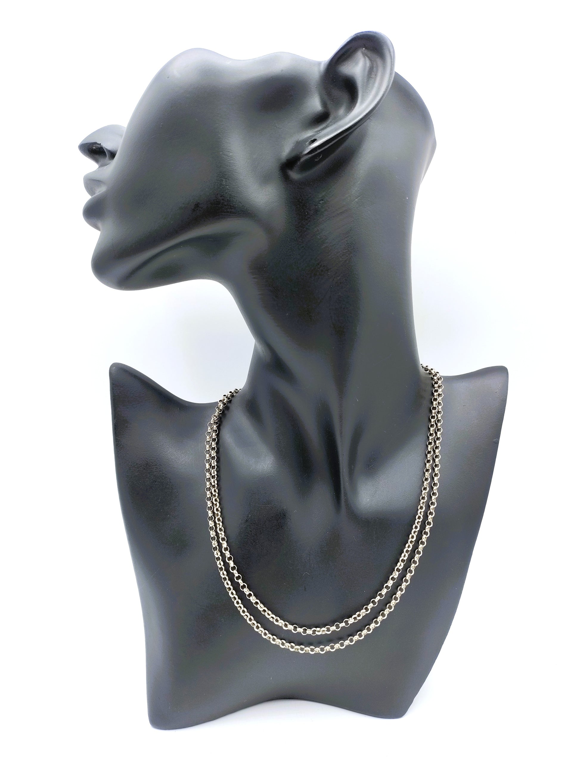 Zilveren jasseronketting met een lengte van 79 cm. (!) De ketting kan daardoor dubbel gedragen worden, zie foto.
