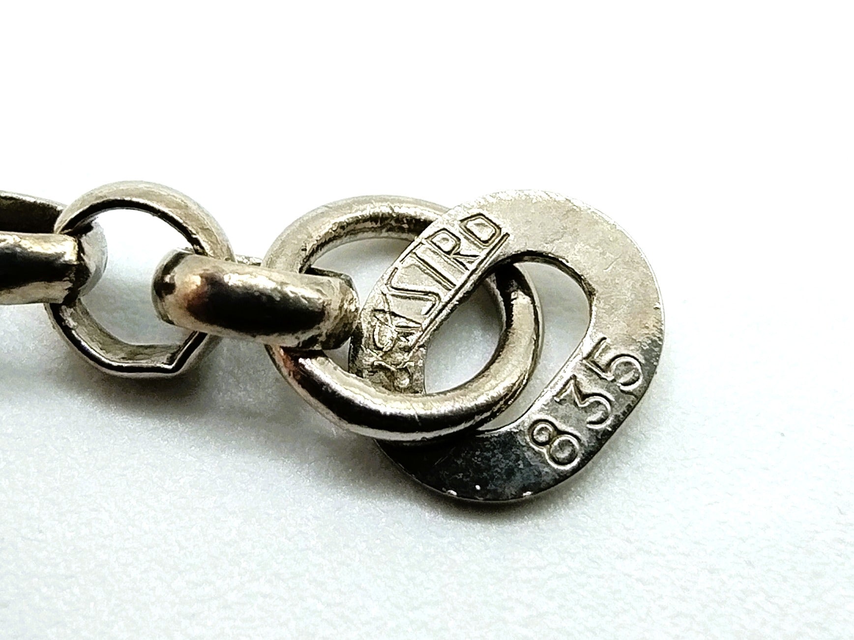 De ketting is gekeurd met 835 voor 2e gehalte zilver en een onduidelijk keur Astro (?)