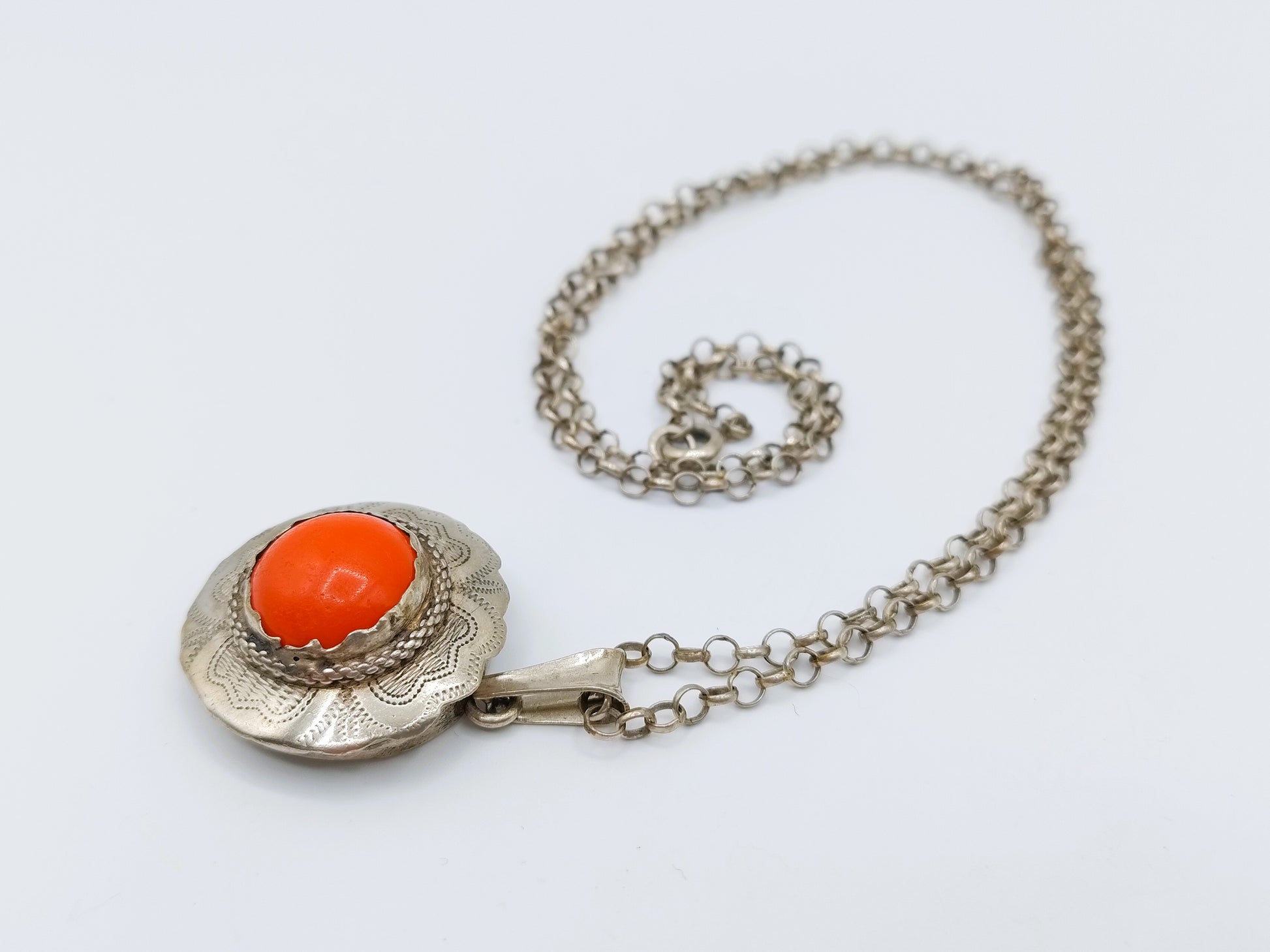 Zilveren jasseronketting met bloedkoralen hanger, 51 cm