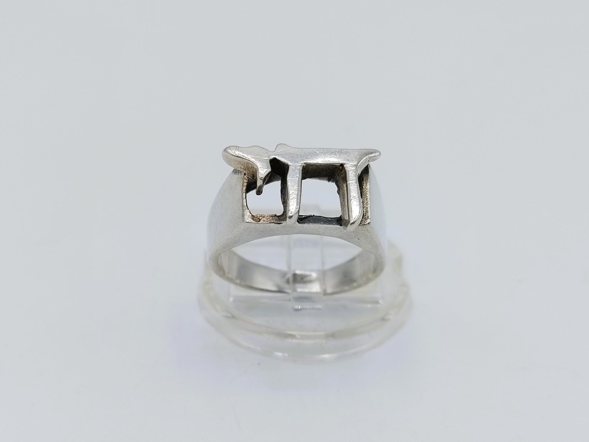 Een zilveren ring met een uitgesneden Chai teken. Chai is het Hebreeuwse teken voor leven. Handgemaakte ring.