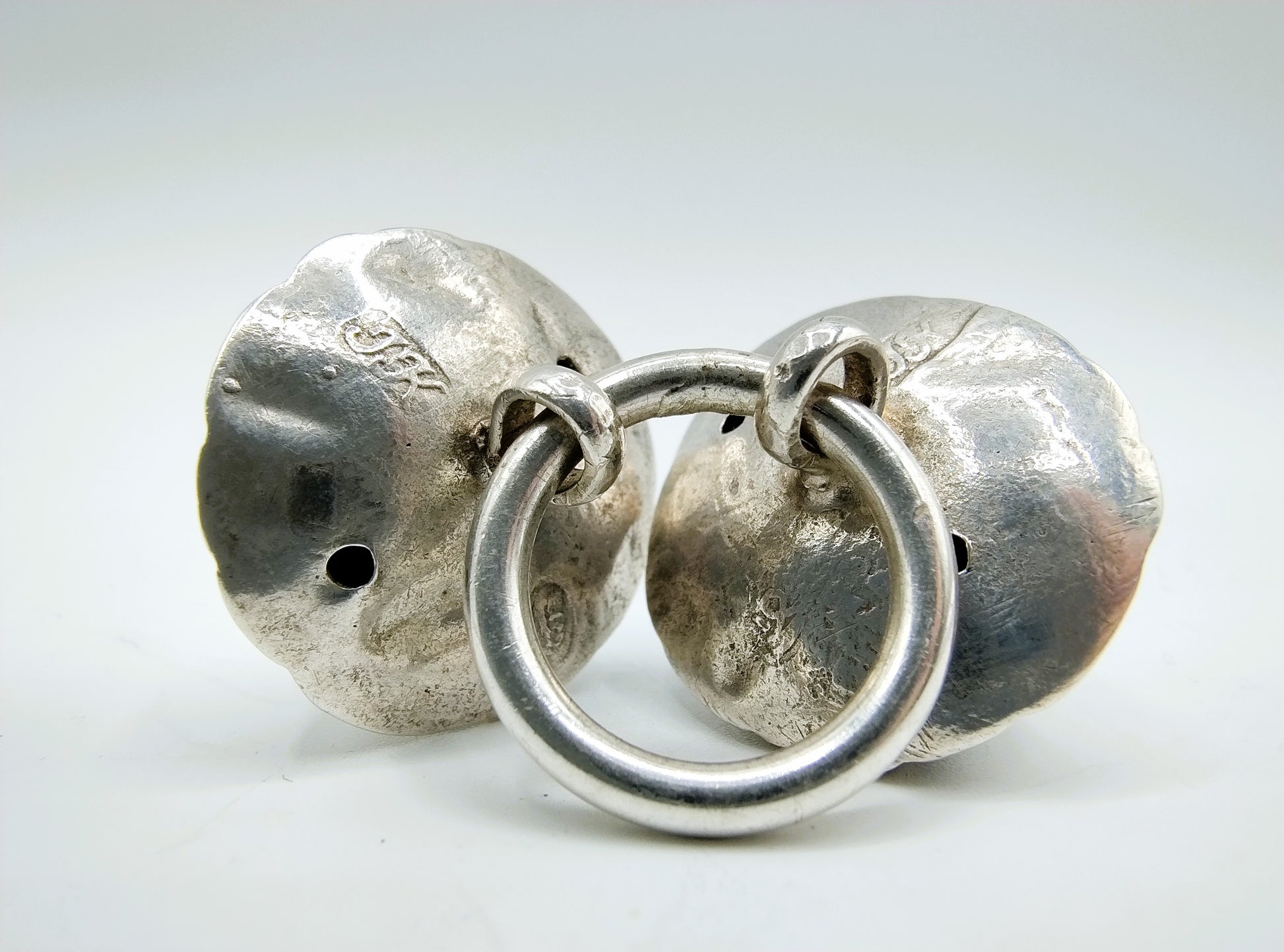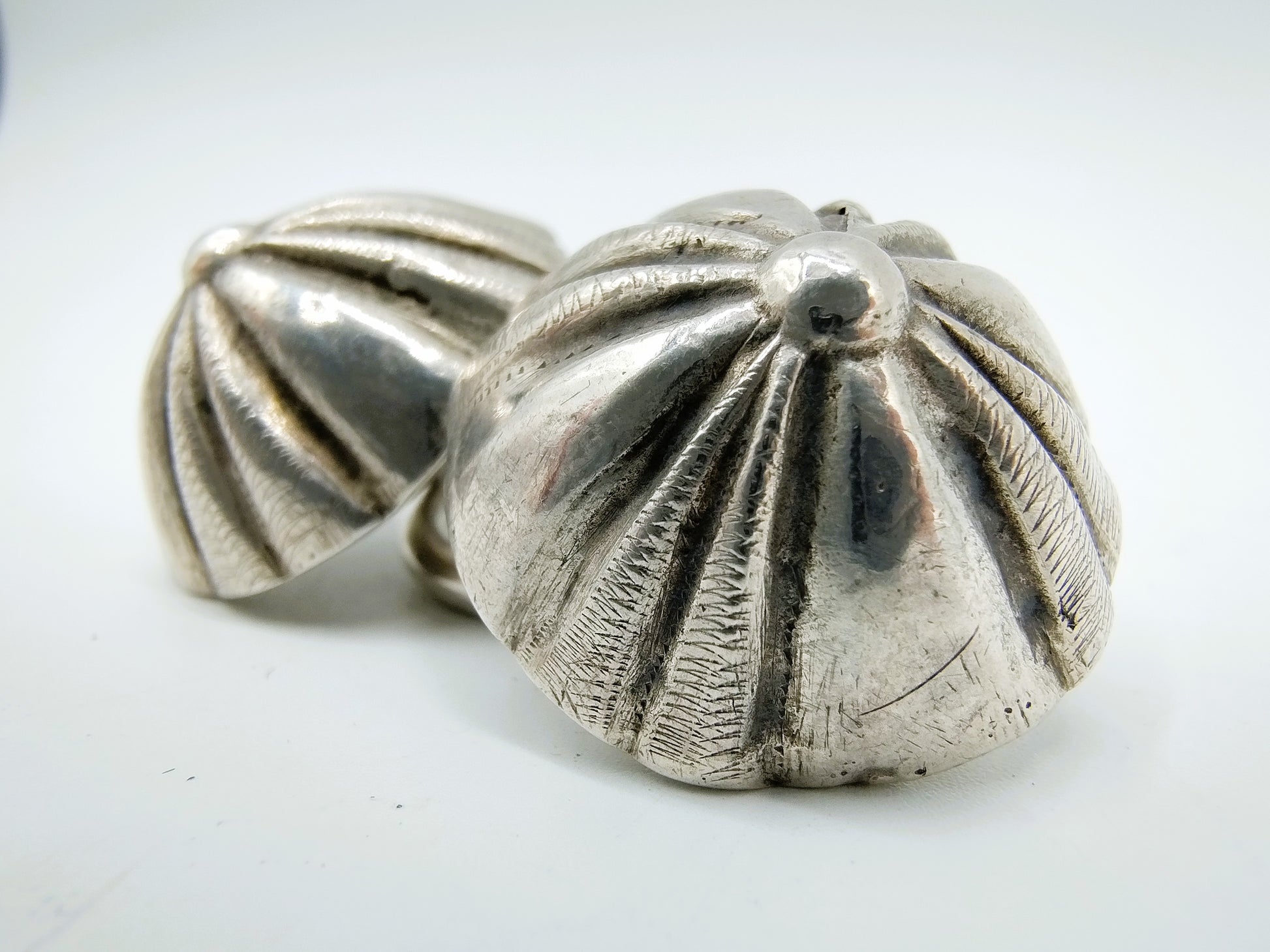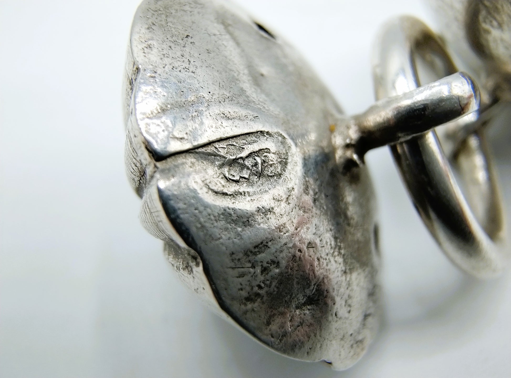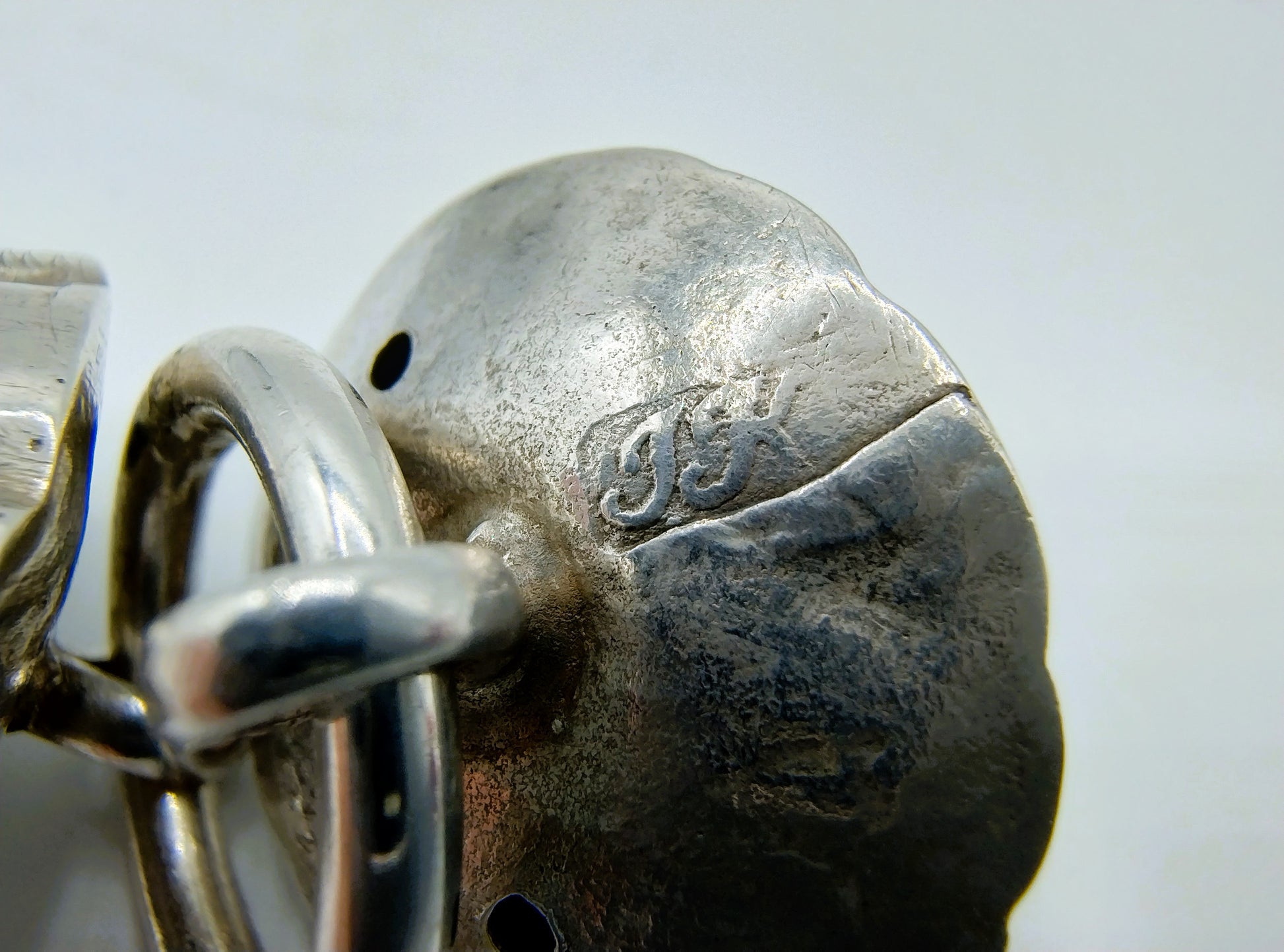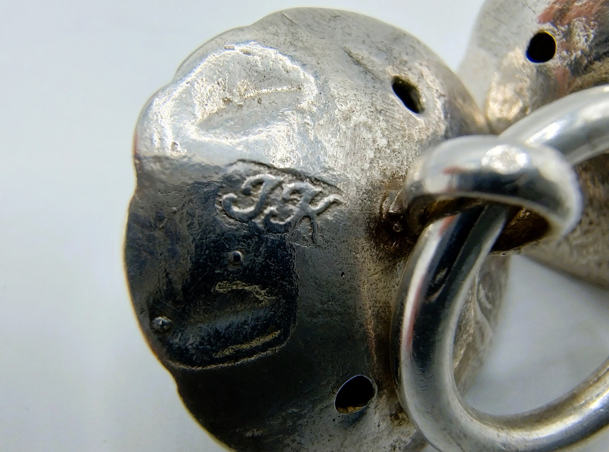 18e Eeuwse zilveren keelknopen, gemaakt door de zilversmid Jan Kamphuis uit Zwartsluis, hij was werkzaam in het derde kwart van de 18e eeuw.
