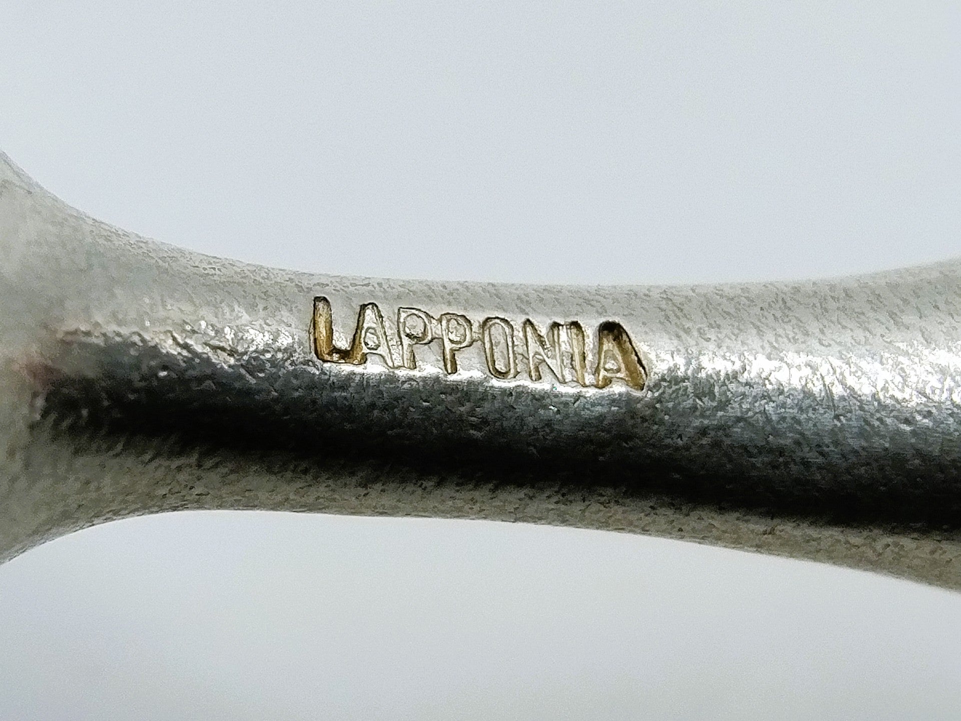 De hanger heeft als naam 'Nectaris' gekregen en is voorzien van diverse zilverkeuren. De hanger is gemerkt met het Lapponia merk met de 3 torens, het Finse kroon in een hart keur, jaarletter C8 voor 1980 en 925 voor 1e gehalte zilver.