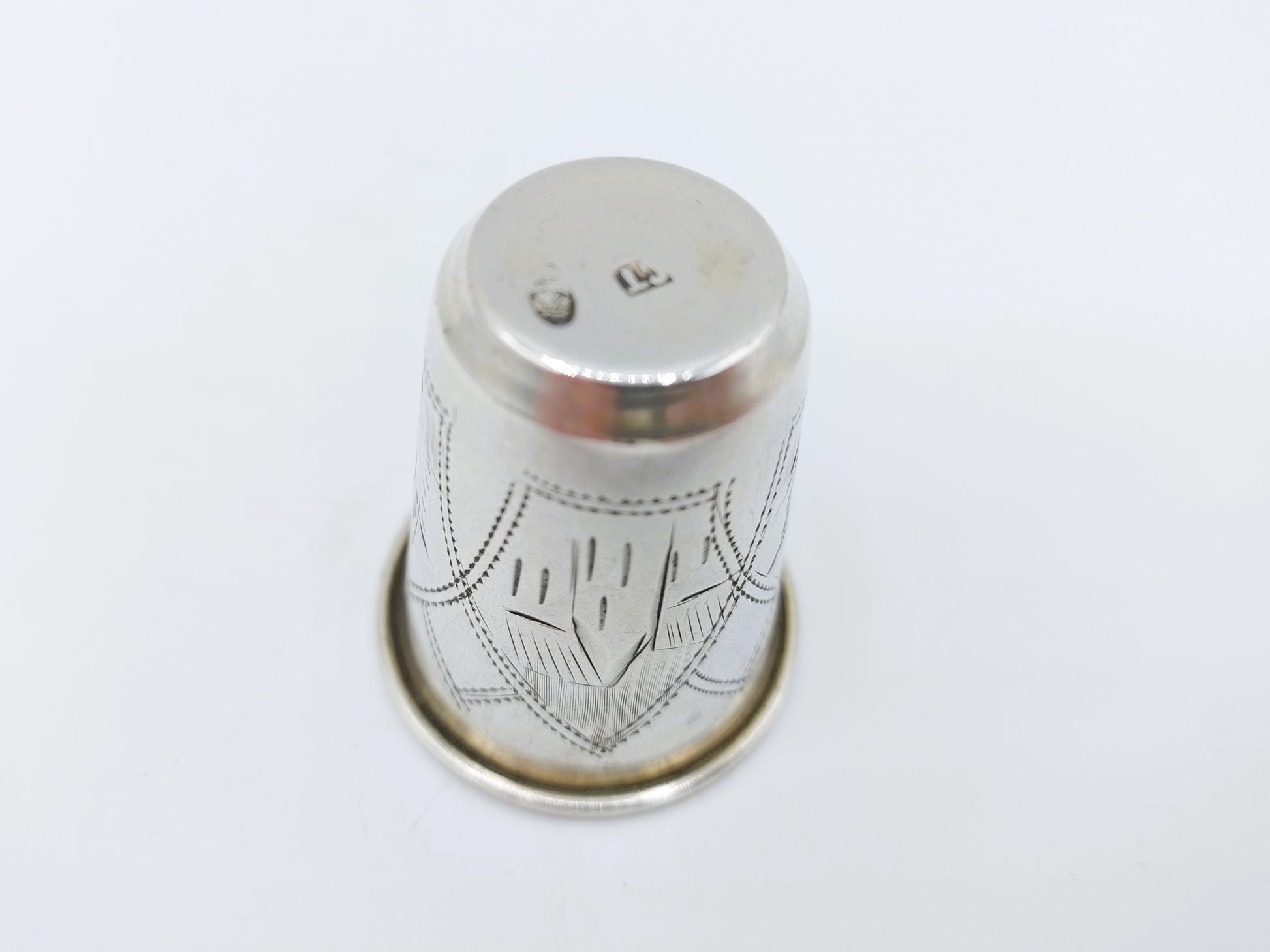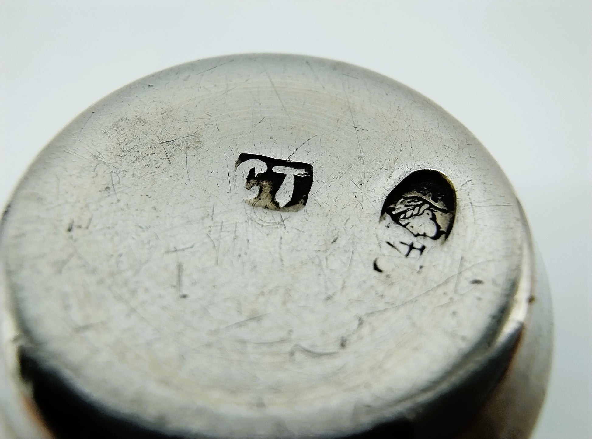 De aanwezige assaymerken bevestigen de datering binnen deze jaren. Rechts van het gekeurde hoofd staan de initialen АР, die verwijzen naar Александр Романов (Alexander Romanov), manager van het Warschause Waarborgkantoor tussen 1899 en 1904. Deze markering onderstreept de officiële keuring en authenticiteit van het stuk.
