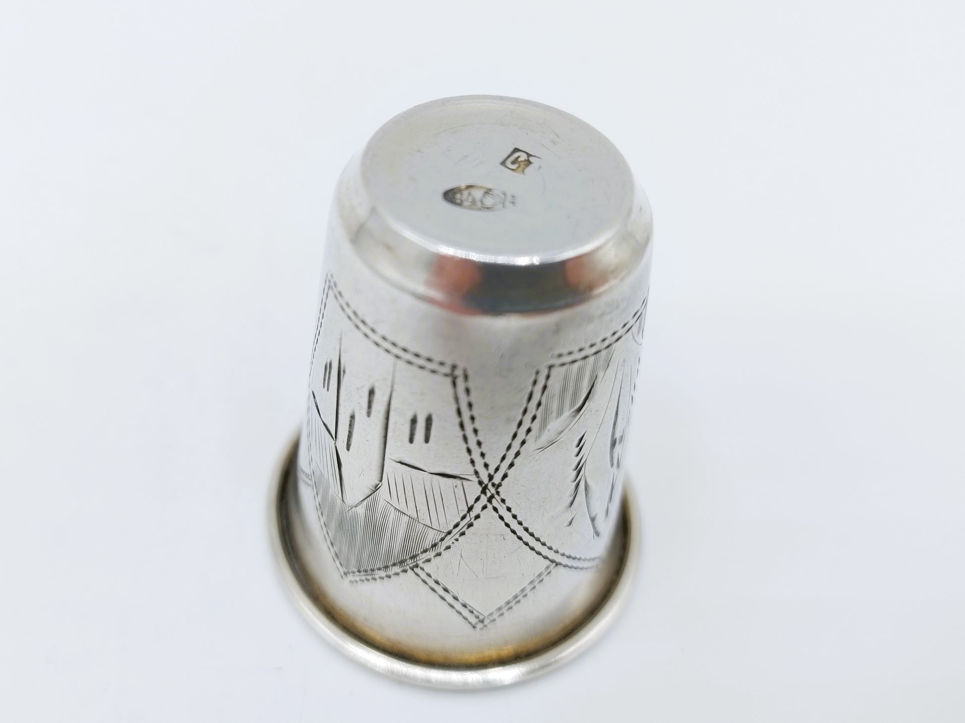 De aanwezige assaymerken bevestigen de datering binnen deze jaren. Rechts van het gekeurde hoofd staan de initialen АР, die verwijzen naar Александр Романов (Alexander Romanov), manager van het Warschause Waarborgkantoor tussen 1899 en 1904. Deze markering onderstreept de officiële keuring en authenticiteit van het stuk.