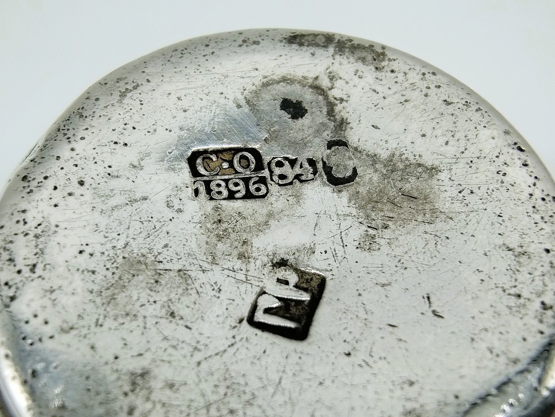 De cup draagt het meesterteken ГР, behorend bij Гирш Равкин (Girsh Ravkin), een bekende zilversmid en producent van Judaica. Daarnaast is het keurmerk С.О aanwezig van assayer Стахий Орлов (Stachy Orlov), die verantwoordelijk was voor de officiële zilverkeuring in deze periode.