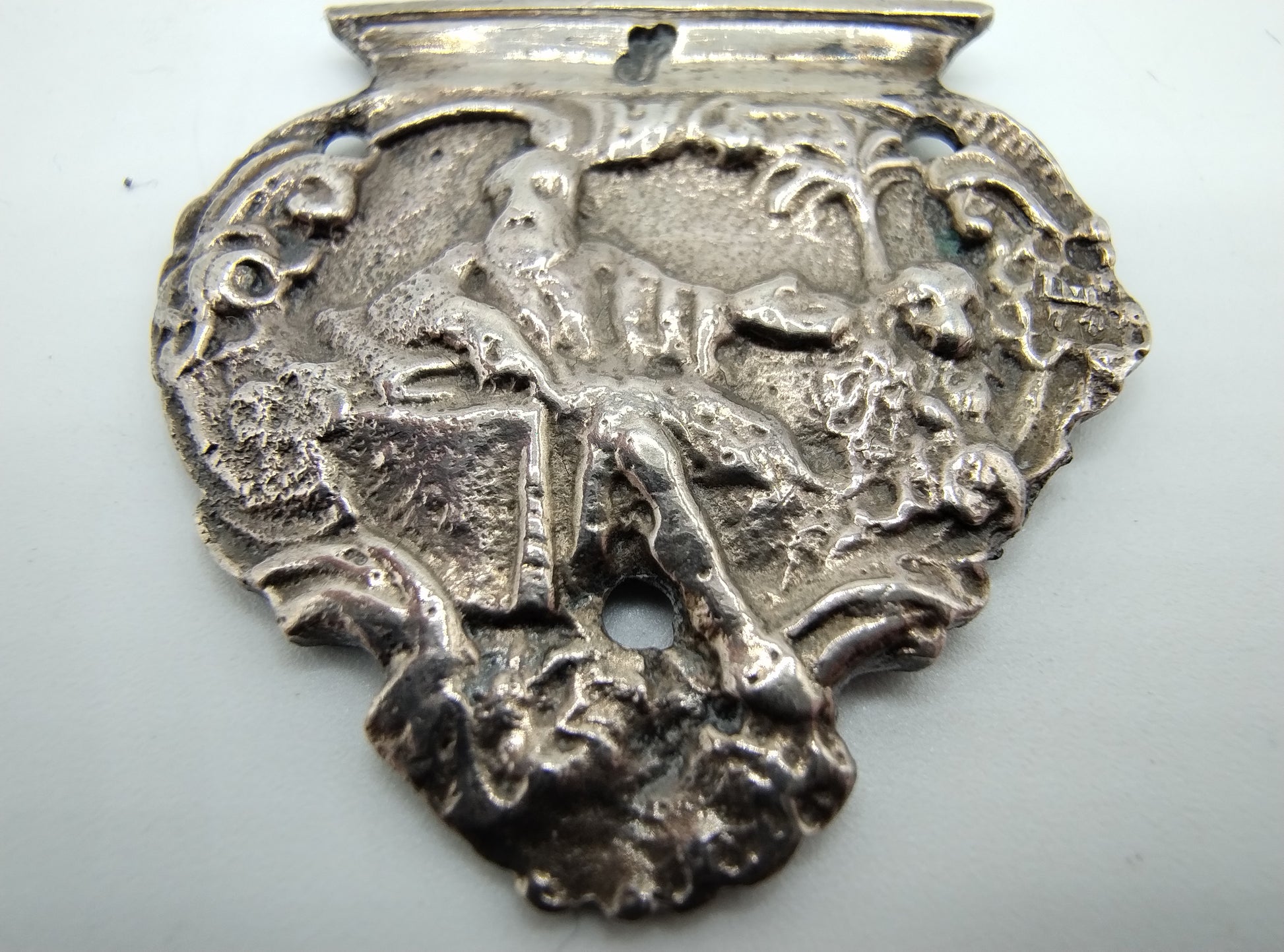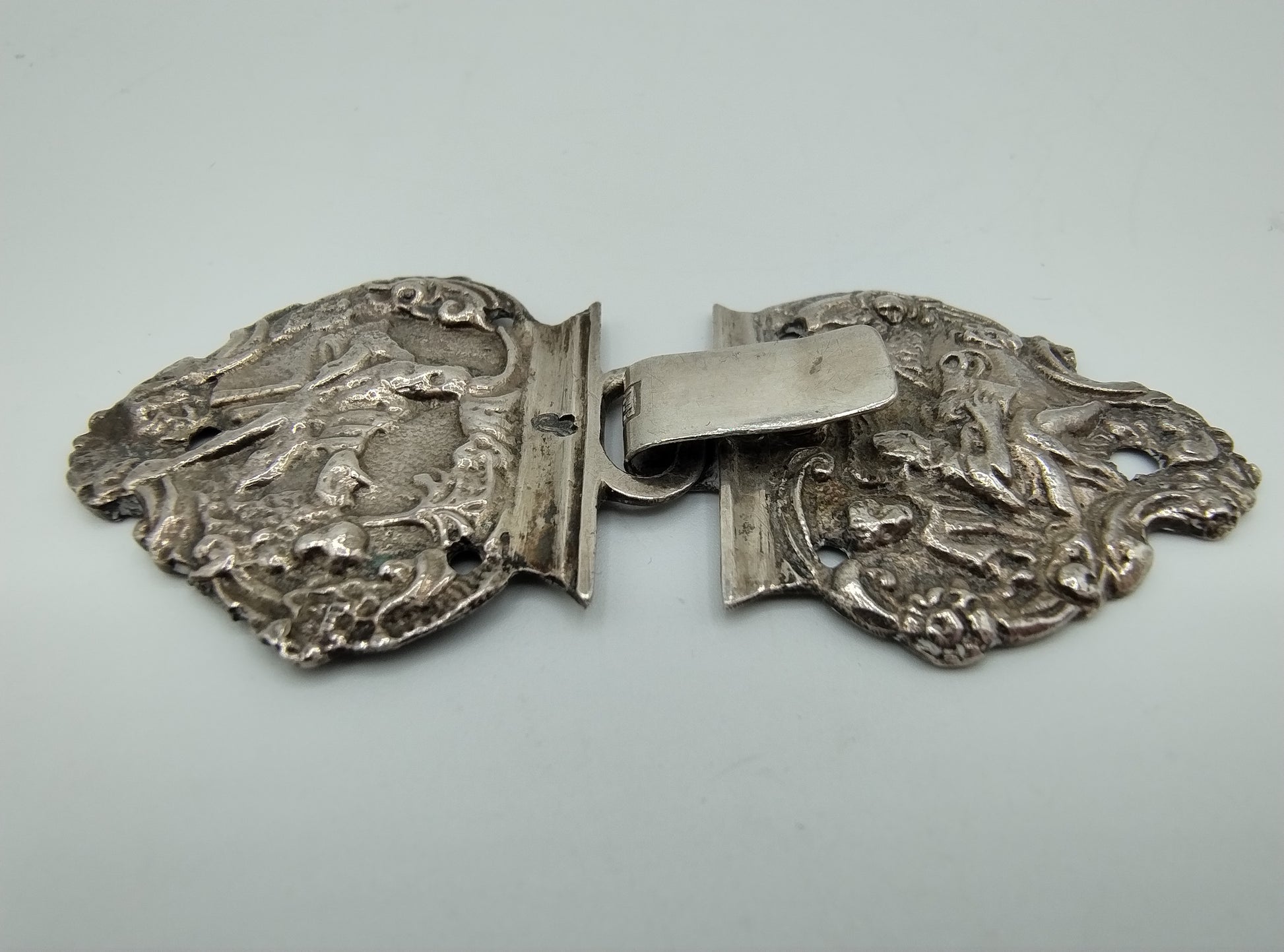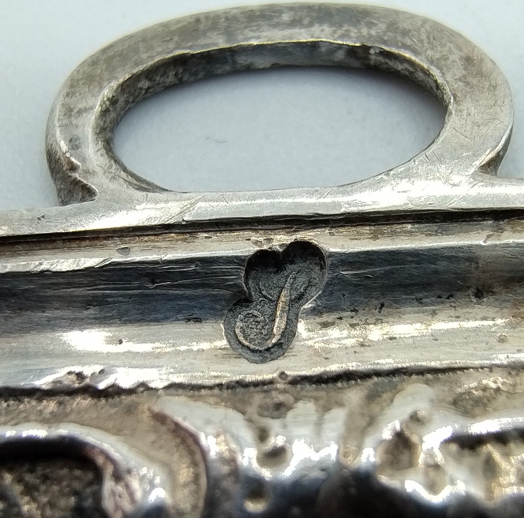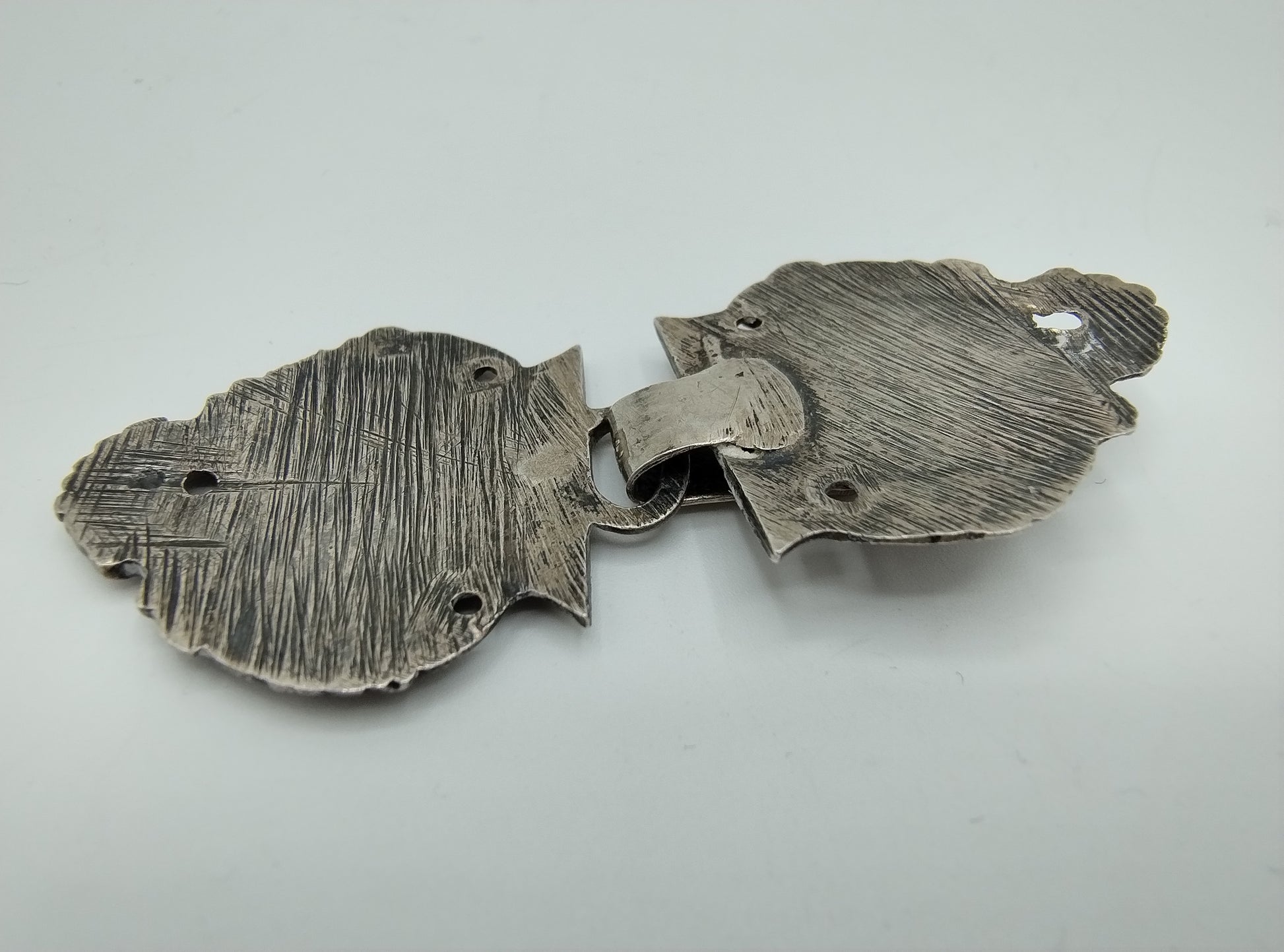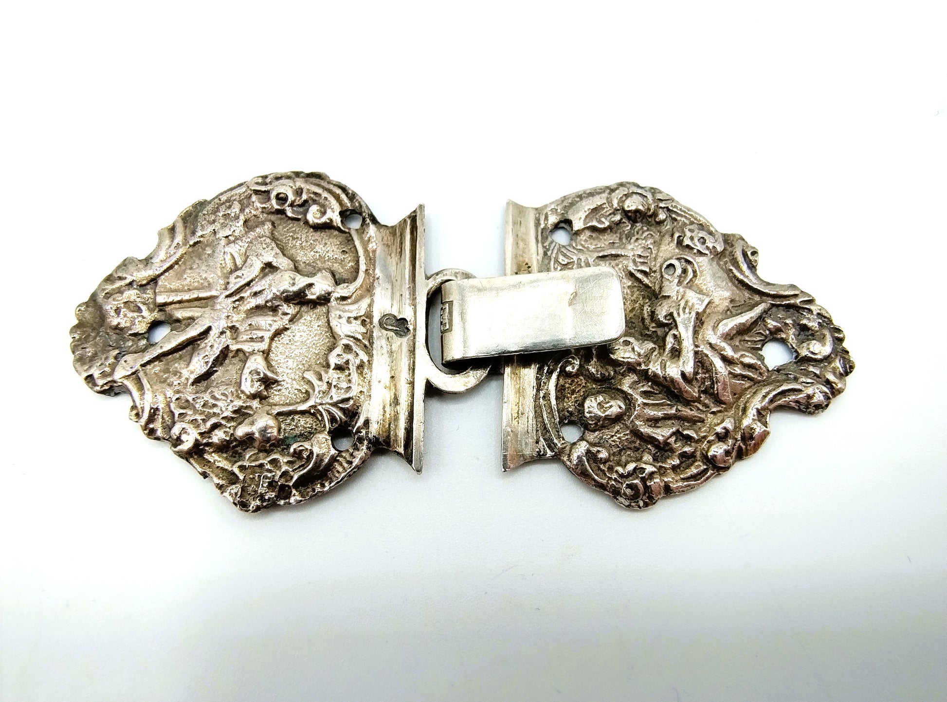 19e Eeuwse zilveren kraalhaak of schorteslot gemaakt door J.M. Bosch uit Zwolle / Amsterdam. Deze zilversmid werkte van 1847 tot 1890.