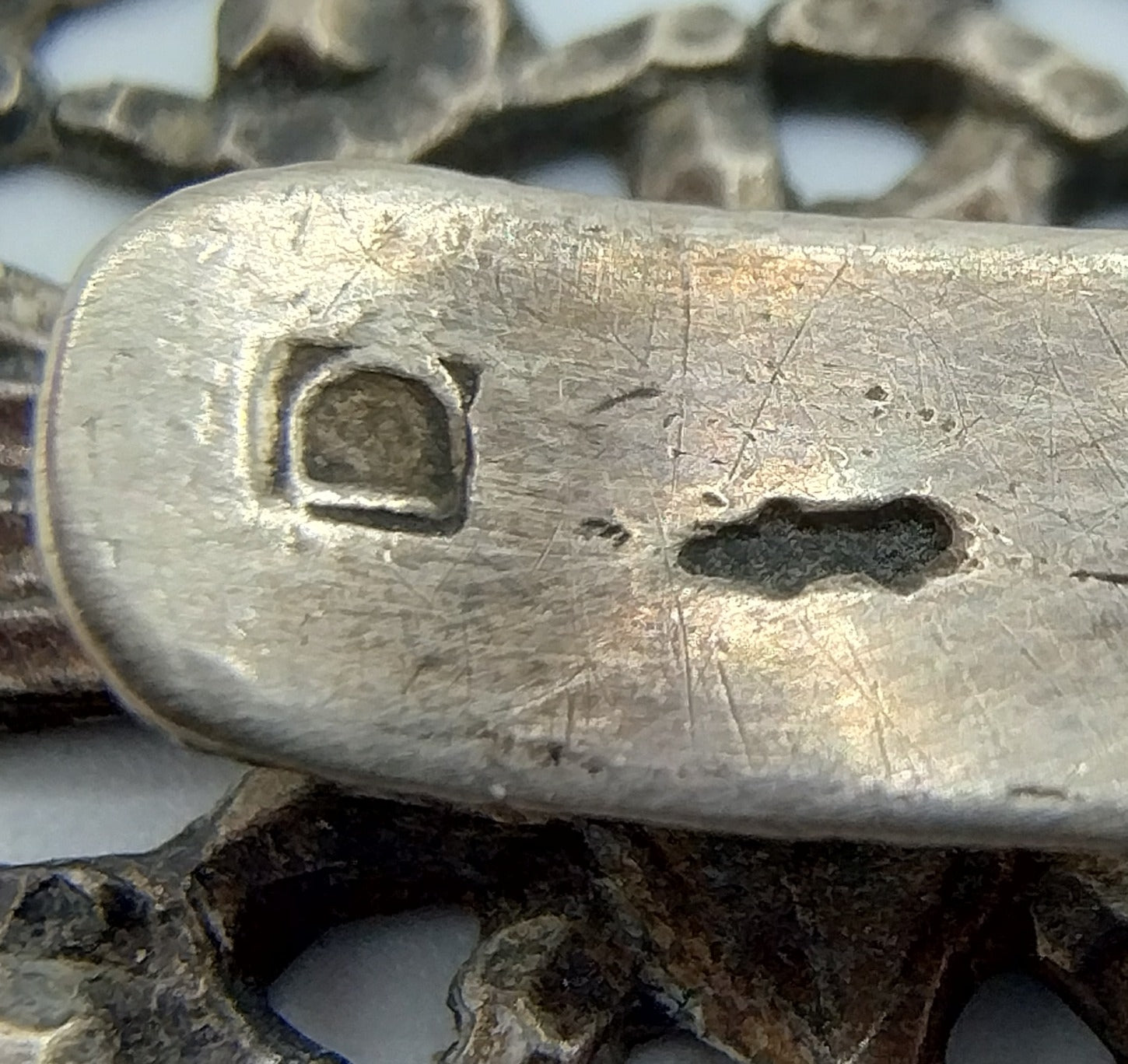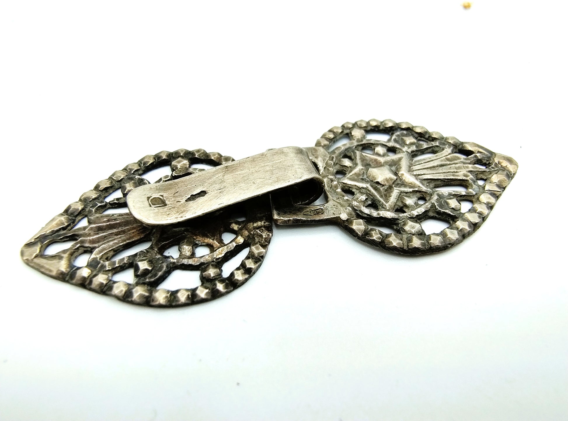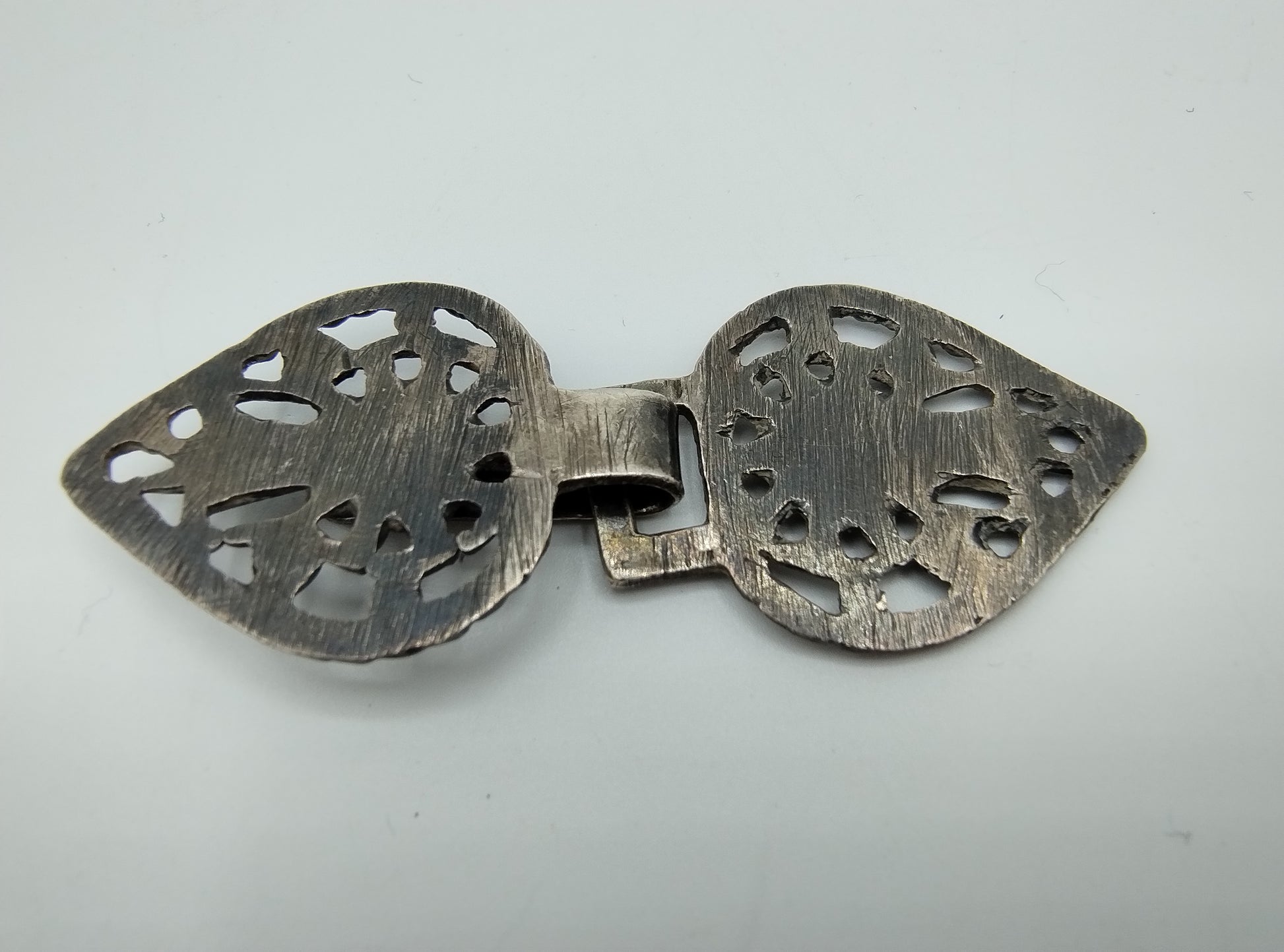 Opengewerkt zilveren schorteslot of kraalhaak.