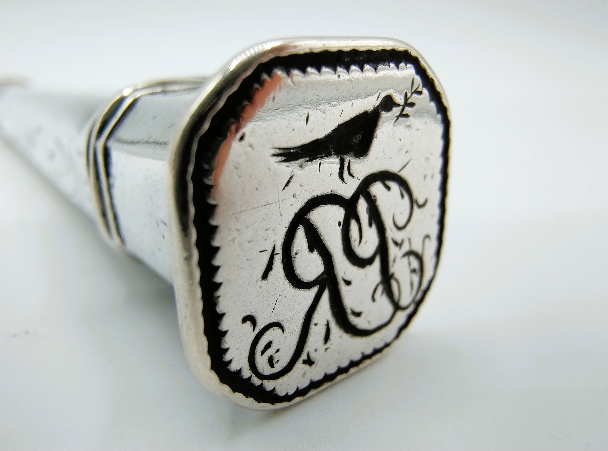 Zilveren lakkoker met zegelstempel, 18e eeuws