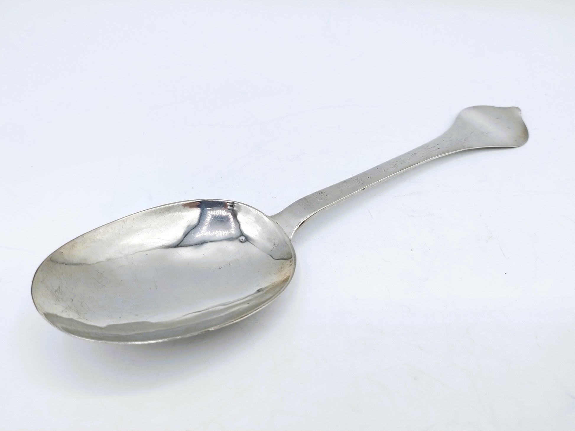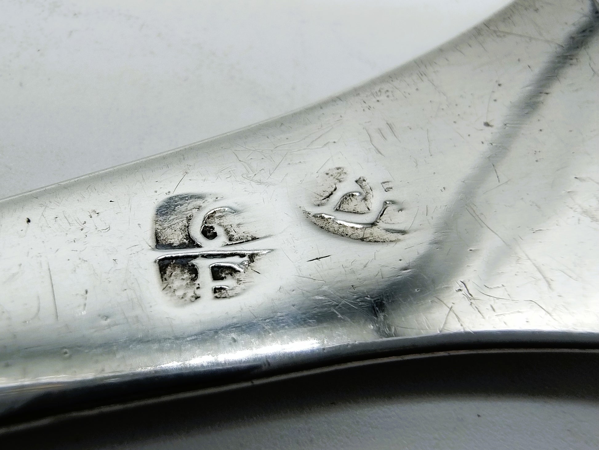 18e Eeuwse zilveren lepel van de zilversmid Frederik de Booser uit Groningen. Hij was werkzaam van 1722 tot ca. 1753.