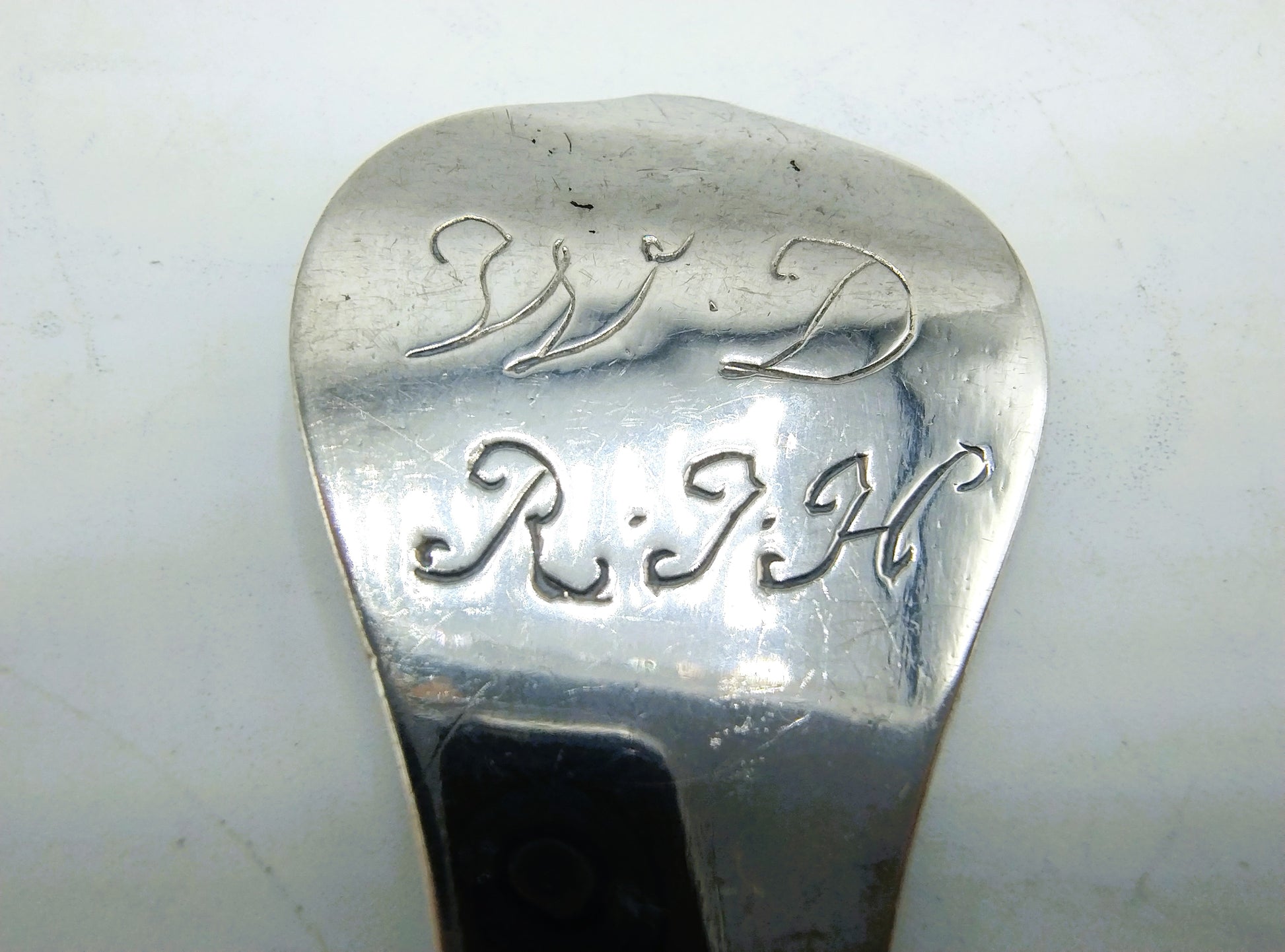 De lepel is voorzien van de initialen WD en RJH en is waarschijnlijk als huwelijkslepel gegeven.