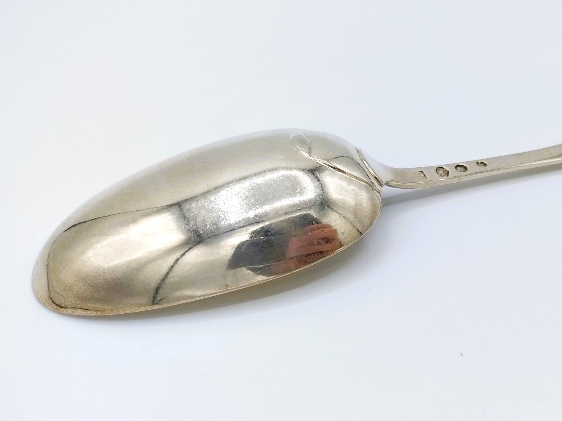 De lepel is gekeurd met het tweede gehalte keur, meesterteken, jaarletter J voor 1818, Minervakopje en meesterteken.