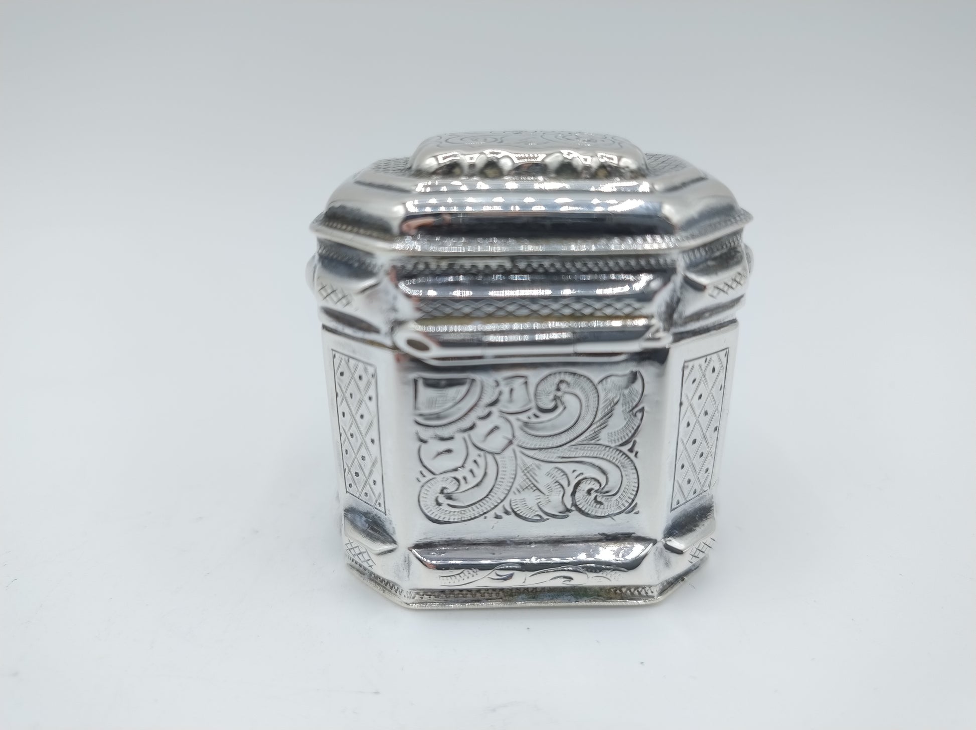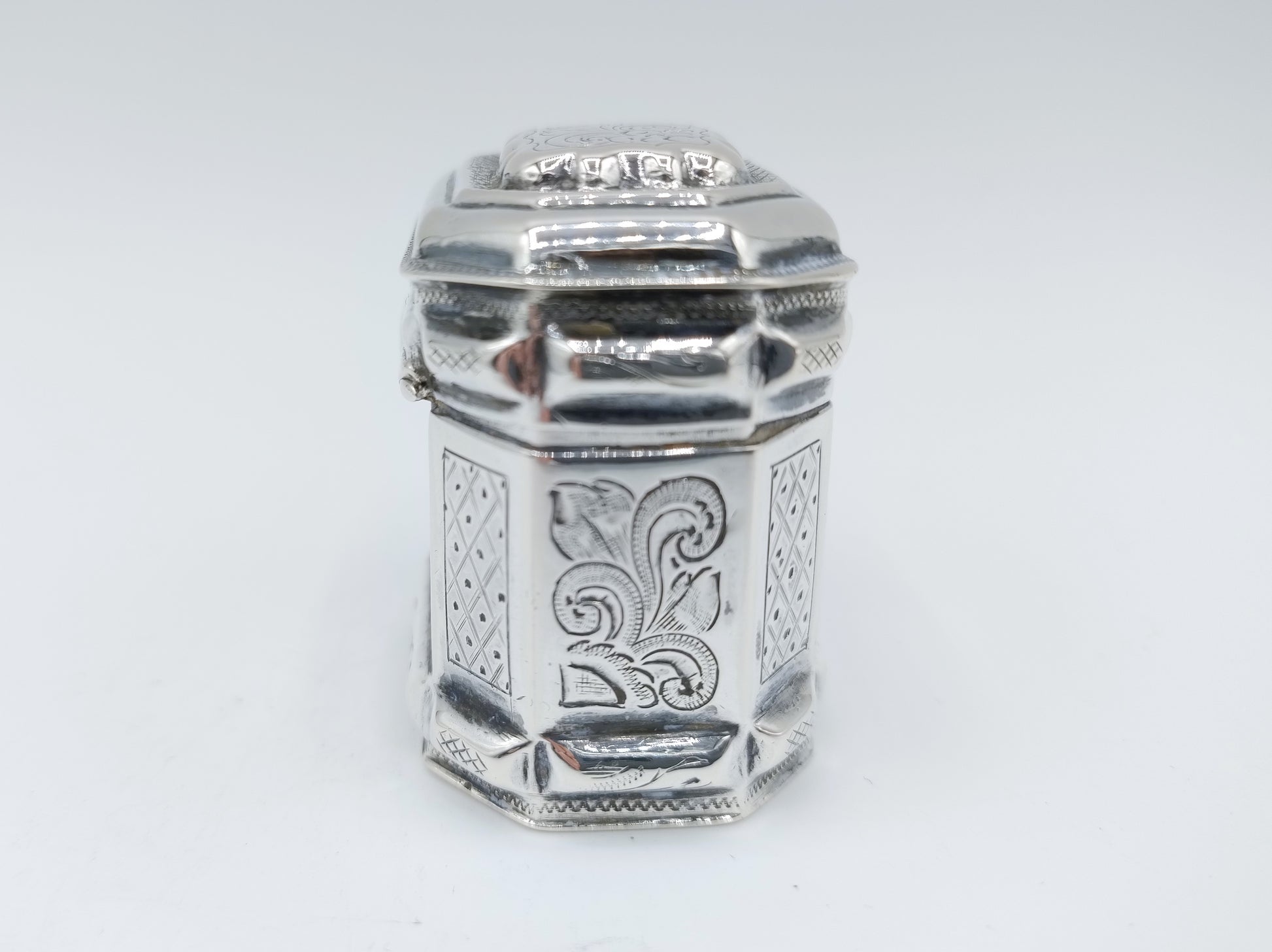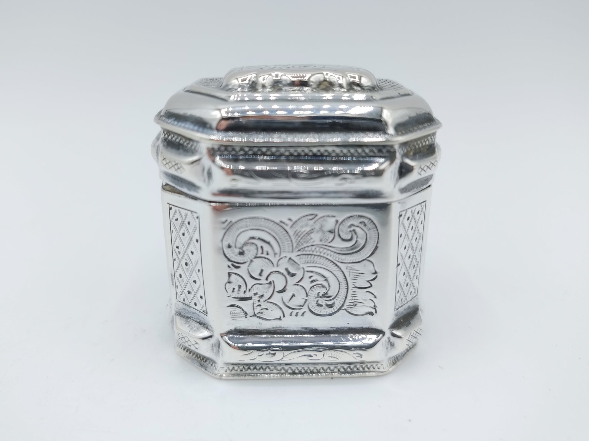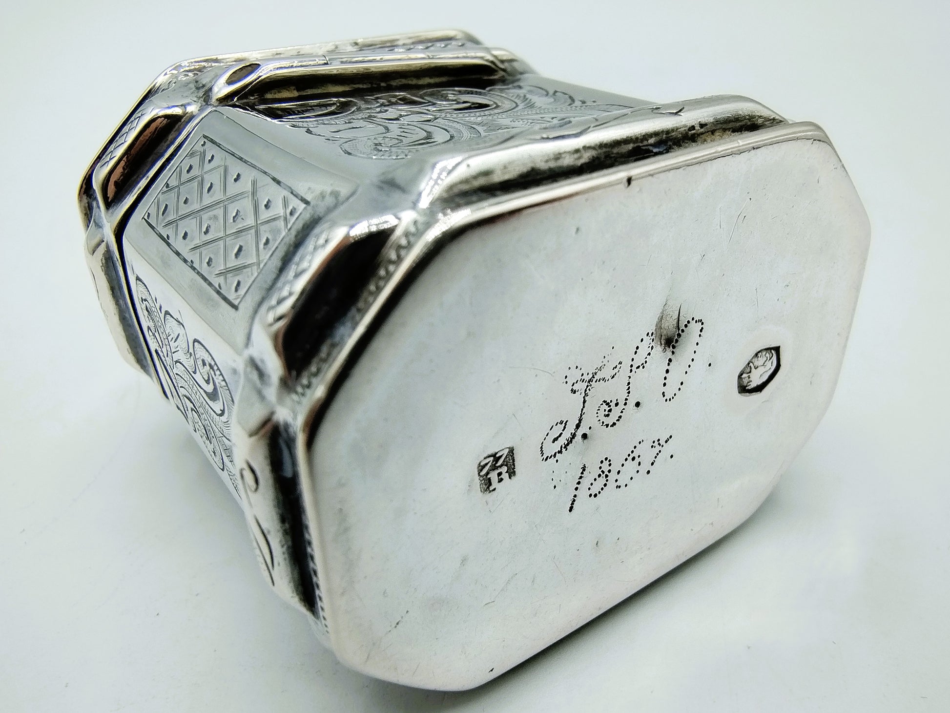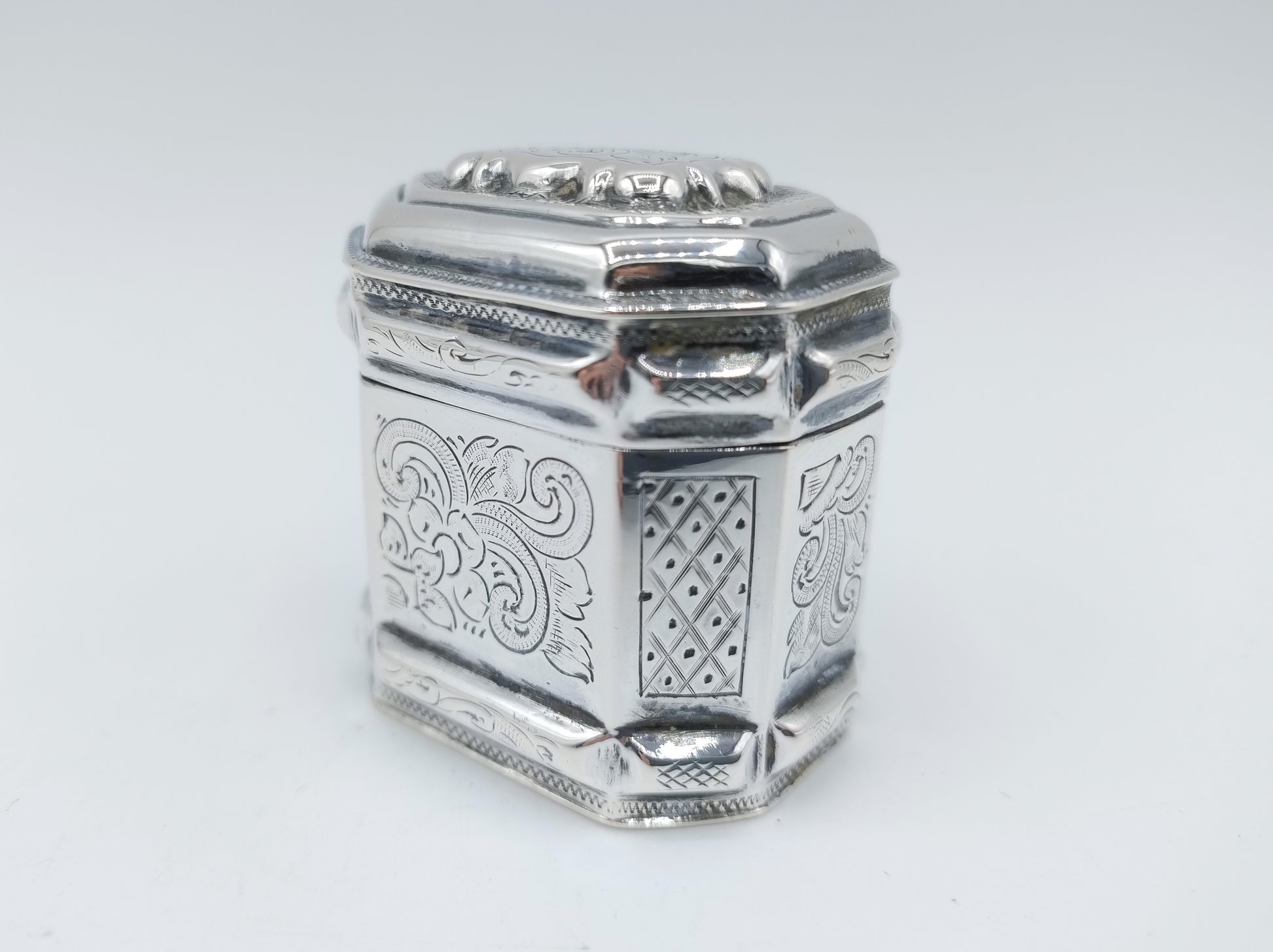 Antiek zilveren lodereindoosje gemaakt door Chr. J. Brunings uit Joure. Werkzaam vanaf 1849.