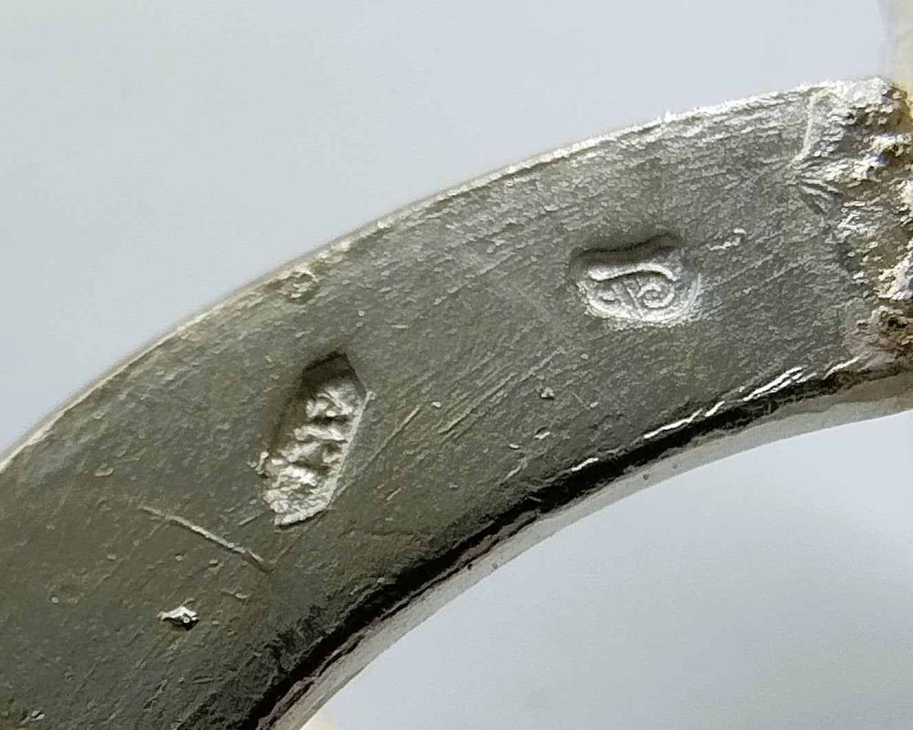 Gekeurd met 835 voor 2e gehalte zilver en meesterkeur AH.