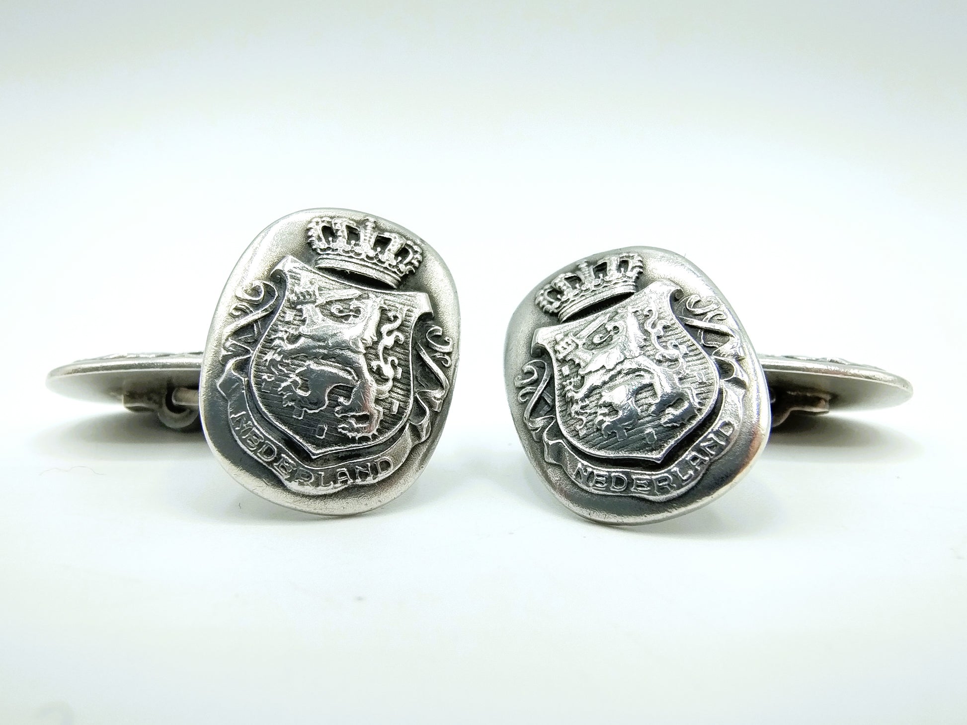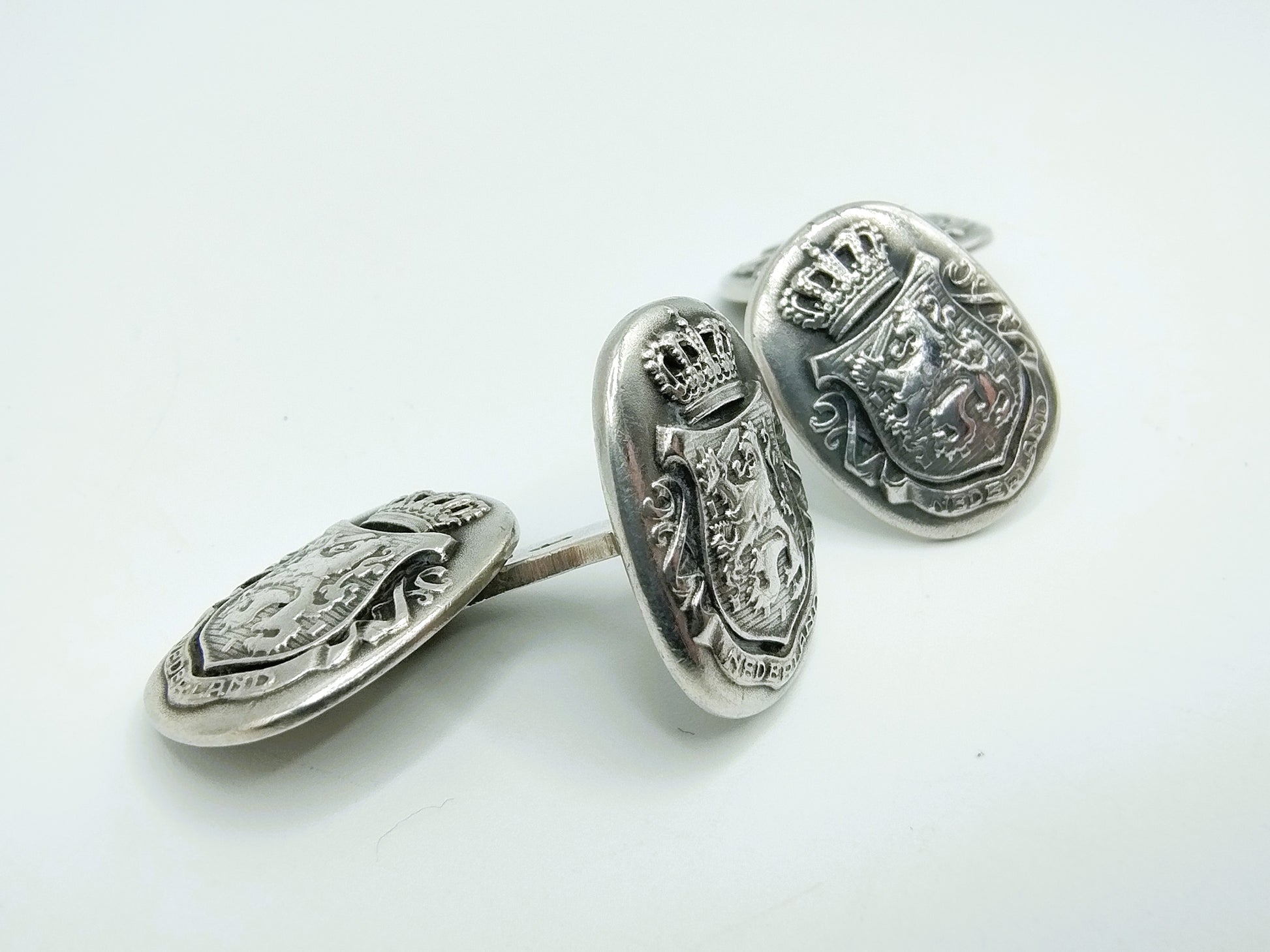 Zilveren manchetknopen met wapen Nederland, Begeer, Voorschoten