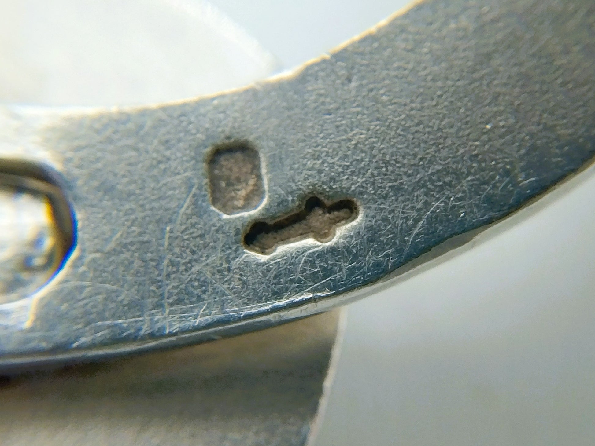 Gekeurd met het zwaardje voor tweede gehalte zilver. Tevens gekeurd met de tekst Kon. Begeer Voorschoten voor de maker van de knopen.