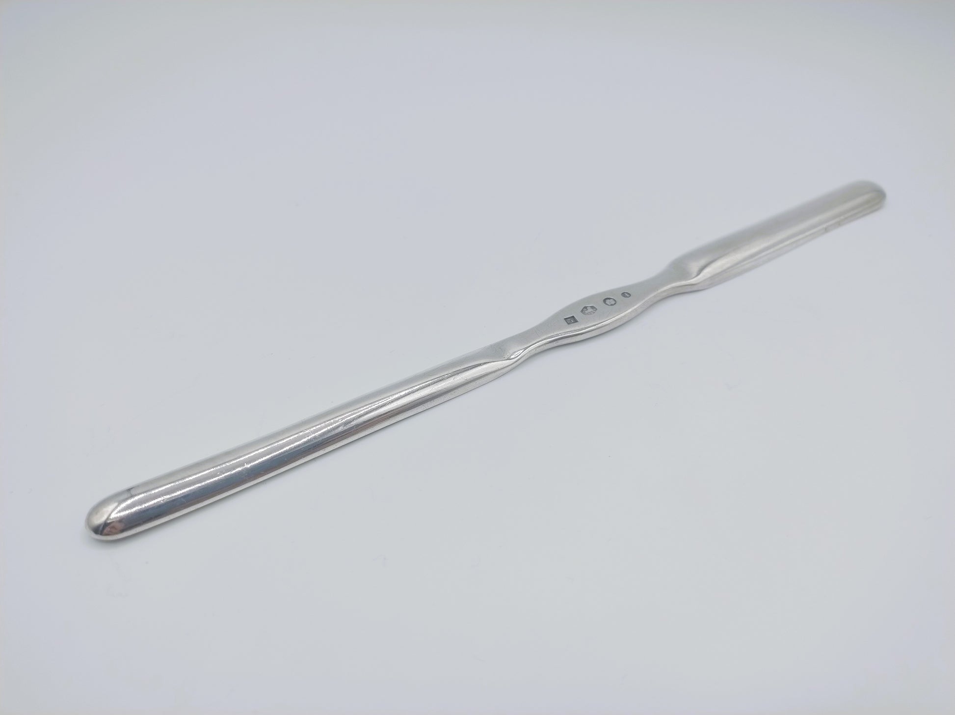 Zilveren mergboor gemaakt door de zilversmid Jacob Dirk Ludwig uit Utrecht. Hij heeft het meesterteken gebruikt tussen 1817 en 1859.
