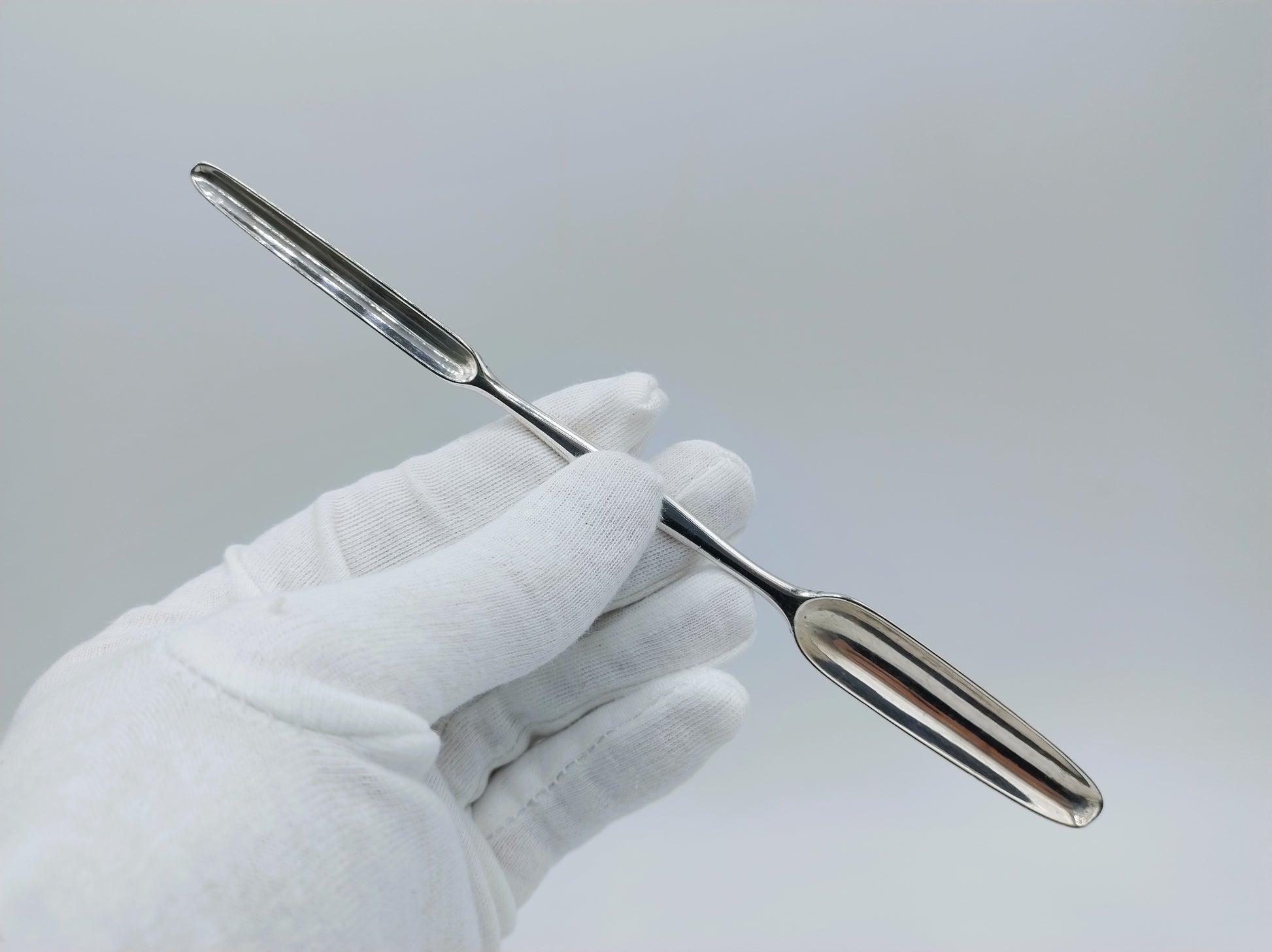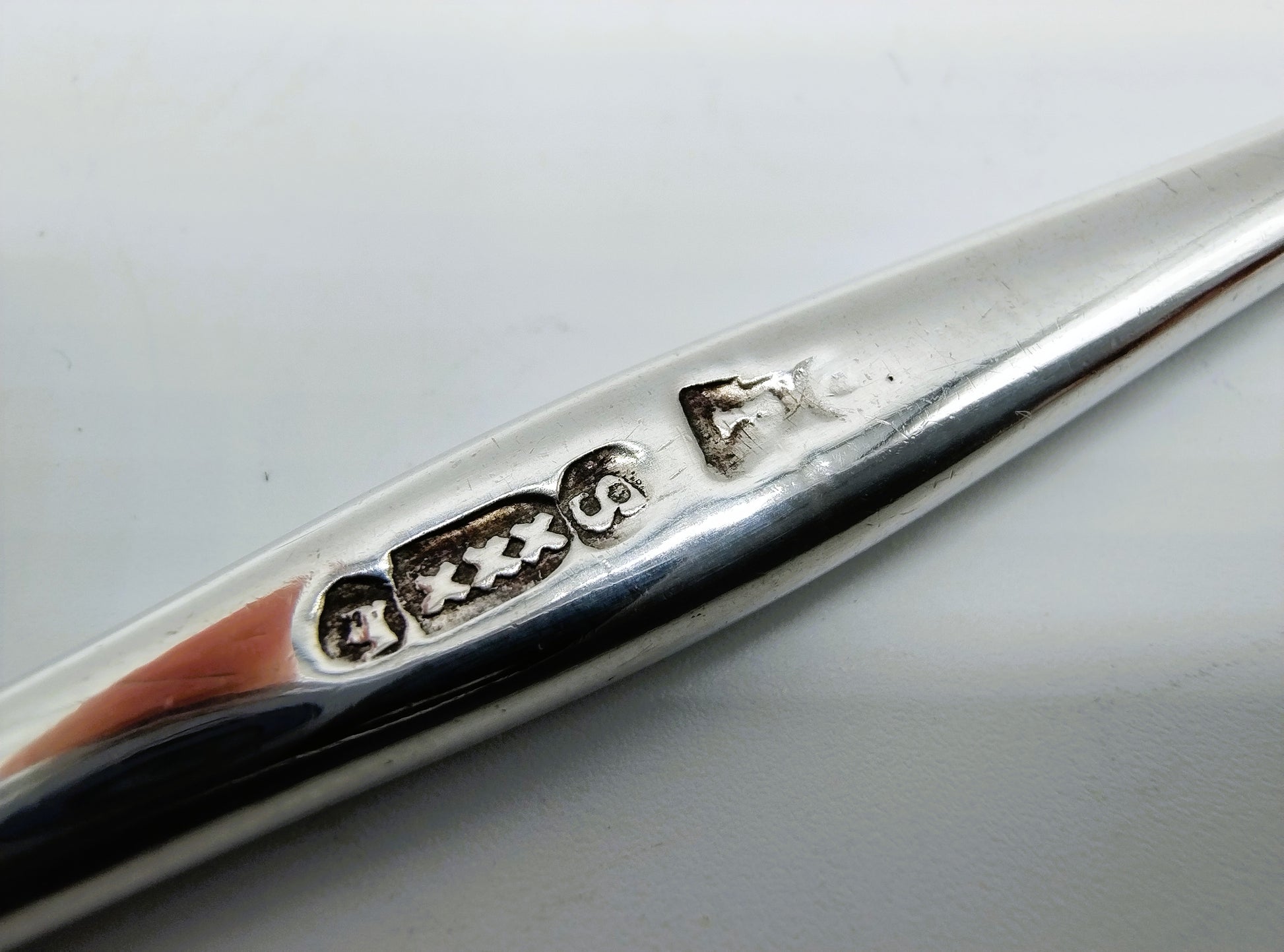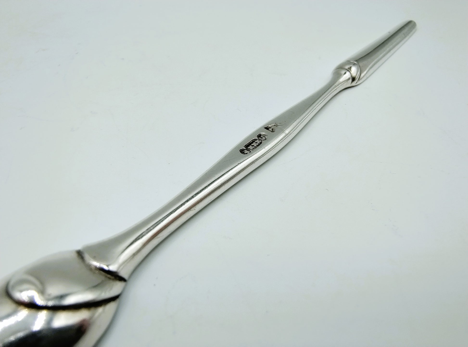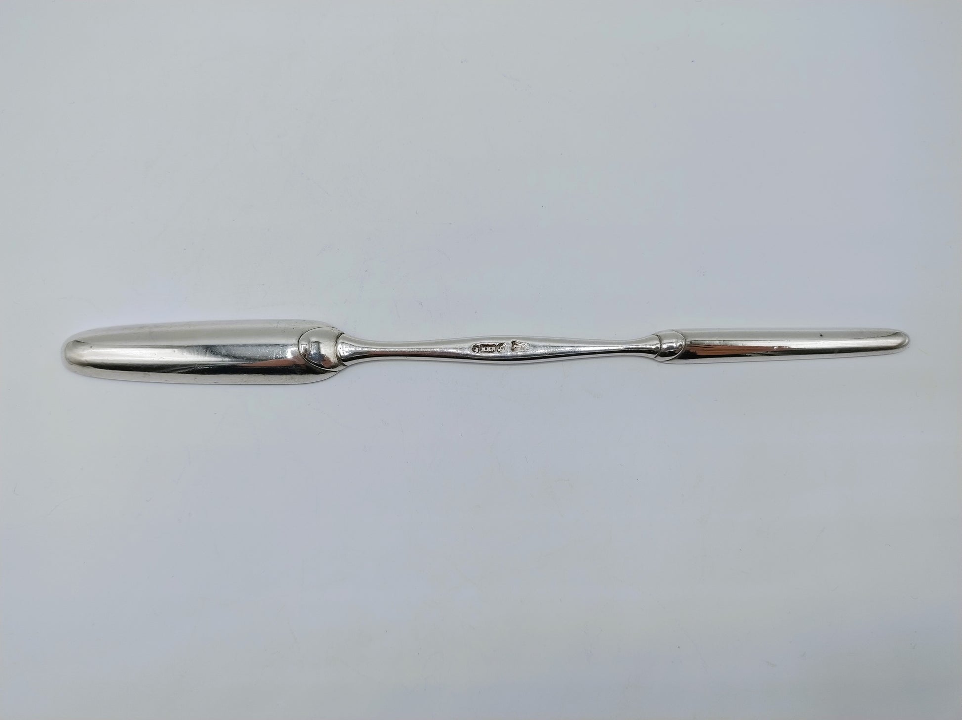 Zilveren mergboor of merglepel. Gemaakt door de zilversmid Jan Diederik Pont uit Amsterdam. Hij was werkzaam van 1729 tot 1767.